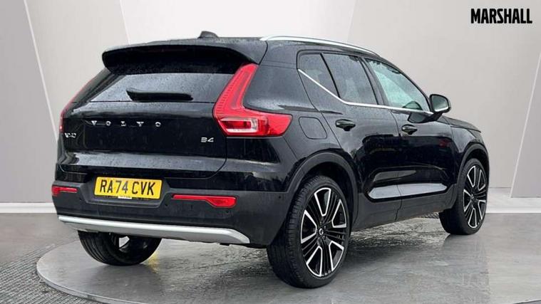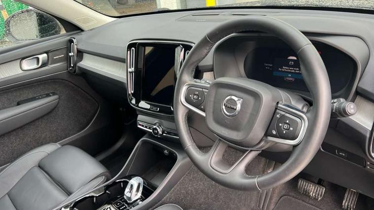 12.3" Progressive Driver Display, 360 degree surround view parking camera with side proximity sensors, 9" centre console portrait touch screen, Adjustable steering wheel force, Android auto (Wired), Apple carplay (wired), Bluetooth handsfree system, Driver alert control, Driver assistance (pilot assist and adaptive cruise control), Driver awareness - Blind spot information system with steer assist, cross traffic alert with autobrake and rear collision warning and mitigation, E-call, Front park assist, Google automotive services - Enabled entertainment apps, navigation with google maps, voice recognition with google assistant, Hands free power tailgate, Intelligent speed assistance, Lane keeping aid, Oncoming Lane Mitigation, Rear park assist, Speed sensitive steering, Volvo cars services with app - Driving journal, emergency and breakdown call, engine remote start, remote door locking/unlocking and vehicle dashboard, Wireless/Inductive Mobile Phone Charging, Automatic transmission with start/stop and manual change functions, Dynamic chassis, DAB Digital radio, Premium Sound by Harman Kardon, Dolby Pro Logic II Surround Sound, Dirac Unison, 12 speakers/600W and subwoofer, Steering wheel mounted remote controls, Active bending pixel LED headlights with adaptive shadow technology, Active high beam incorporating daytime running lights, Adaptive brake lights with high level LED brake lights, Auto dimming feature for exterior door mirrors, Auto dimming interior mirror, Automatic headlamp levelling, Dark tinted windows - rear side windows and rear screen, Front aluminium tread plates, Front and rear electric windows, Headlight cleaning system, High gloss black front and rear skid plate, High gloss black front bumper deco, High gloss black mesh front grille with high gloss black surround, High gloss black window trim, Home safe and approach lighting, Integrated roof rails in high gloss black, LED front fog lights with cornering function, Power glass tilt and slide panoramic sunroof with sun curtain, Puddle lights, Rain sensor with automatic windscreen wiper activation, Rear side wing doors, Rear wiper, Roof antenna, Roof spoiler, Visible VIN plate, 12V socket in front tunnel console and luggage compartment, 2-Zone electronic climate control with CleanZone air quality system and pollen filter, 3 seat bench in 2nd row, 3 Spoke tailored steering wheel with chrome trim, 60/40 versatile split folding rear seat, Centre console cupholders and storage, Flexible load floor and grocery bag holder, Floor mats, Front cabin courtesy lights, Front door pocket, front cupholder, ambient front door, rear reading, rear courtesy, instrument panel and tailgate lighting, Front footwell illumination, Front headrests, Front reading lights, Front seat cushion extensions, Front side step illumination (under door), Glovebox bag hook, Heated front seats, Height/reach adjustable steering column, High gloss centre tunnel deco, Illuminated glovebox, Illuminated luggage compartment, Illuminated vanity mirrors + ticket holder, Integrated waste bin, Isofix attachments on outer rear seats, Load cover, Load protection net, Multi directional lumbar support for driver and passenger seat, Power driver seat with memory + exterior mirrors memory, Power folding rear headrests, Power passenger seat, Rear armrest with cupholders, Single front passenger seat, Underfloor cargo storage, Climate pack without heated front seats - XC40, 3x3 point rear seatbelts, City safety with steering support with Pedestrian + cyclist + front collision warning with full auto brake and rear auto brake, Driver and passenger airbags, Drivers knee airbag, Electronic parking brake with auto hold, First aid kit, Front and outer rear seatbelt reminder and pretensioners, Front seats SIPS airbags, Hill descent control, Hill start assist, Inflatable curtain, Passenger airbag cut-off device, Power child locks on rear doors, Road sign information display, Run off Road Protection, SIPS (Side Impact Protection System), Slippery road and hazard light alert, Stability and Traction Control with Spin control, Engine Drag Control and Corner Traction Control, Tyre pressure monitoring system, Vehicle deceleration control with Anti-lock Brake System, Electronic Brake Distribution and Emergency Brake Assist, Warning triangle, WHIPS whiplash protection system - front, 2 x Key integrated remote control central locking including with deadlocking system and auto open/close windows and sunroof, Anti-theft alarm including immobiliser/volume sensor + level sensor, Keyless drive includes keyless entry and keyless start, Locking wheel nuts,
