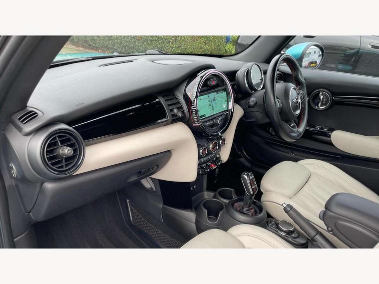 Acoustic seat-belt warning, Basic bluetooth function with USB audio, Brake fluid level warning light, Brake pad wear indicator warning light, DTC - Dynamic traction control, Exterior temperature gauge, Intelligent emergency call, MINI Driving Modes - centre toggle switch to control driving setting (sport, mid and green), MINI TeleServices, Oil level indicator, On board computer, Service interval indicator, Servotronic PAS, Stop/start button, Electronic differential lock, Performance Control, 6.5" touchscreen, Auxiliary input socket, DAB digital radio module, Aerodynamic body kit, Anti dazzle mirror, Anti trapping/one touch open close front windows, Body colour scoop integrated into engine- compartment lid, Body coloured bumpers, Chrome bezels around rear lights and headlights, Chrome door handles, Chrome plated fuel cap, Chrome plated radiator grille, Electric front windows, Electrically adjustable door mirrors, Follow me home headlights, Heated door mirrors, Heated rear window with auto timer, Heated windscreen washer jets, High gloss black tailgate handle, Honeycomb radiator grille, Metal look door sill finishers, Twin chromed exhaust pipes, White indicator lights, 2 rear head restraints, 4 boot load lashing points, 50/50 split folding rear seats, 6-way manually adjustable driver's seat, Active carbon filter, Auxiliary socket in centre console storage compartment, Centre console storage, Driver/passenger sunvisors and vanity mirrors, Easy entry seats, Front and rear cupholders, Front head restraints, Gear/selector and handbrake in artificial leather, Glovebox, Internal chrome door handles, Isofix child seat preparation, Luggage compartment lighting, Multifunction steering wheel, Passenger seat height adjuster, Reach + rake adjustable steering column, Stainless steel pedals with rubber inserts, Storage compartments in doors, Toolkit in luggage compartment, 3 point seatbelts, ABS/EBD, ASC+T, Cornering brake control (CBC), Crash Sensor - activates hazard/interior lighting + unlocks doors, Driver and passenger airbags, Driver/front passenger side airbags, DSC - Dynamic Stability Control, Fuel cut off safety device, Head airbags, Hill start assist, Manual passenger airbag deactivation function, Seatbelt pretensioners, Two tone horn, Tyre pressure warning, Drive away door locking, Keyless start, Locking wheel bolts, Remote central locking/doors+fuel cap+tailgate, Second remote key, Thatcham category 1 alarm + immobiliser,