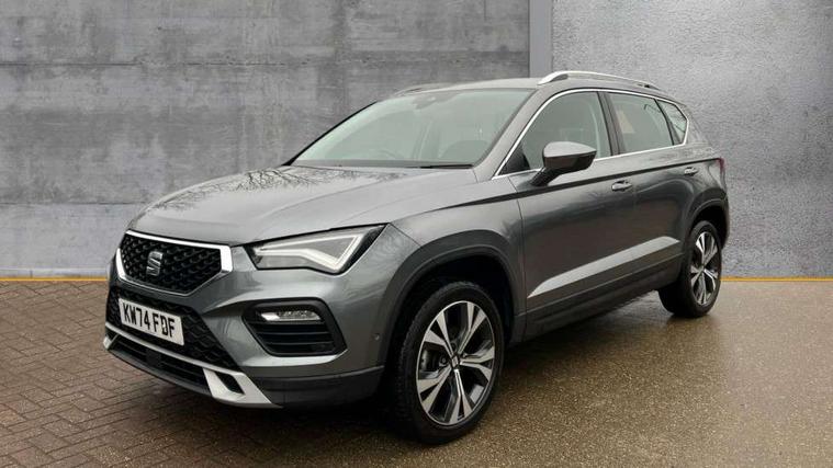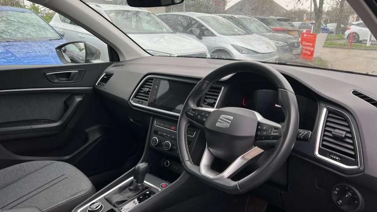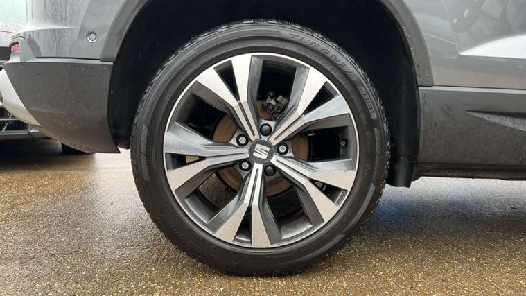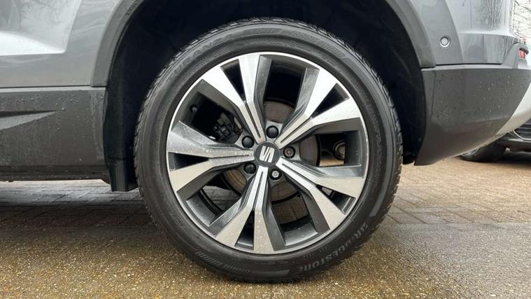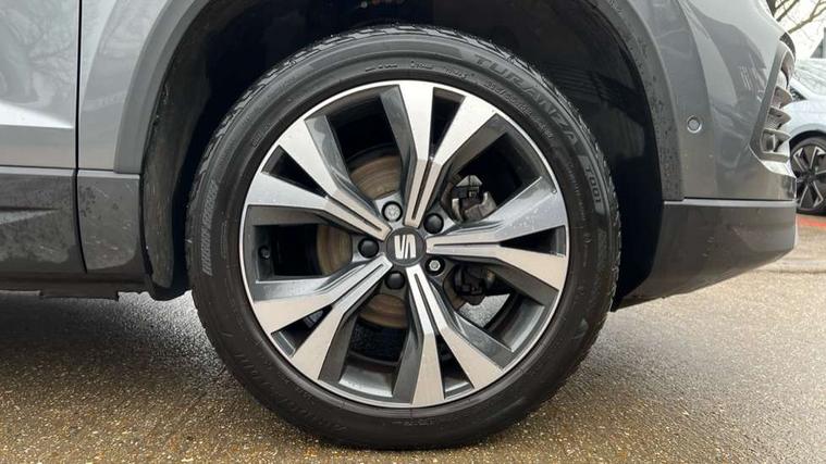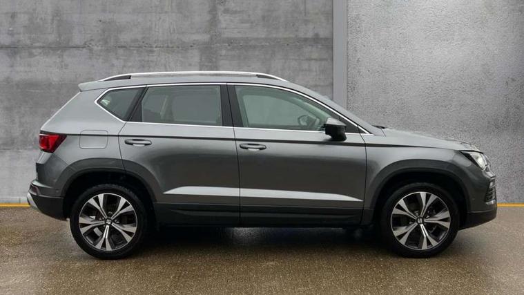 8" Digital cockpit, Colour multi-function on board computer display, Cruise control system with speed limiter, E-call, Outside temperature gauge, PAS, SEAT drive profile with driving experience button - Normal, Sport, Eco and Individual mode, gearshift, steering and throttle response, Self parking functionality (includes front and rear parking sensors), Start/stop system, Tailgate, Trip computer, wired and wireless full link smartphone integration, Wireless phone charger, Steering wheel mounted audio/phone controls, Black wheel arch surrounds, Body colour bumpers, Chrome front grille frame, Chrome roof rails, Chrome side window trim, Daytime running lights, Door mirrors with welcome light silhouette, Dynamic headlight range control with self adjusting whilst driving, Electric adjustable/heated/folding door mirrors, Front and rear electric windows, Full LED headlamps with lens and LED front fog lamps with cornering function, LED 3rd brake light, LED rear tail lights, Rear exhaust tailpipe, Rear fog lights, Rear side wing doors, Rear wash/wipe, Variable front intermittent wipers, 12V socket in front, 3 seat bench in 2nd row, 60/40 split folding rear seat, Cloth upholstery with front comfort seats, Drawer under right front seat, Dual zone climate control, Front and rear head restraints, Front centre armrest, Front seat back storage pockets, Height adjustable driver and passenger seat with lumbar adjustment, ISOFIX points in outer rear seats with top tether anchorage points, Leather sports steering wheel and gear knob, Rear armrest and easy back seat release mechanism from boot, Single front passenger seat, Steering wheel mounted gearshift paddles, Convenience pack - Ateca, Interior lighting pack - Ateca, Navigation system pack with DAB - Ateca, Safety and driving pack with attention and drowsiness assist - Ateca, 3x3 point rear seatbelts, ABS, Traction control system (TCS), Electronic stability control (ESC) and Electronic differential lock system (XDS), Airbags - Driver and front passenger airbag with deactivation, front side, two curtain and driver's knee airbags, Electric parking brake with auto hold function, Front and rear seatbelt reminder, Front assist with autonomous emergency braking, Hill hold control, Manual rear child locks, Single tone horn, Tiredness recognition system, Tyre pressure monitoring system, Alarm, Keyless entry, Locking wheel bolts, Remote central locking, Chrome interior detailing, 18" Performance machined alloy wheels 36/2 in nuclear grey,