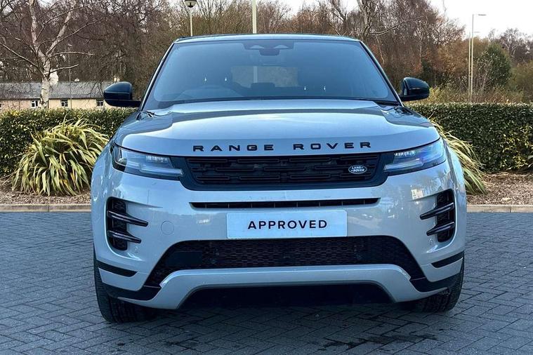 11.4" touch screen, Adaptive cruise control, Android Auto, Apple car play, Blind spot assist, Bluetooth connectivity, Brake pad wear indicator warning light, Driver condition monitor, eCall emergency system, Eco mode, Electronic power assisted steering (EPAS), Front and rear parking aid, InControl remote, Interactive driver display, Land Rover InControl apps, Lane keep assist, Pivi pro connected includes diamond pivi variant, smart settings, connected navigation pro, nuance speech licence, Powered tailgate/boot lid, Rear collision monitor, Rear traffic monitor, Traffic sign recognition with adaptive speed limiter, Voice control system, Wireless device charging, All terrain progress control, Electric rear axle drive, Home charging cable, Large fuel tank, Passive suspension, Public charging cable, Terrain Response 2, Digital Audio Broadcast radio-DAB, Steering wheel mounted controls, Acoustic laminated windscreen, Auto headlights, Auto high beam assist, Automatic headlight levelling, Electric windows with one touch open/close and anti trap, Flush deployable exterior door handles, Front and rear recovery eyes, Heated rear window with timer, Heated washer jets, Heated windscreen, LED headlights with signature DRL and LED tail Lights, Power fold, auto-dimming, heated door mirrors with approach lights and auto dimming driver side, Rain sensing windscreen wipers, Rear animated directional indicators, Rear fog lights, Rear side wing doors, Rear wiper, Side repeater indicators in mirror, Tailgate spoiler, Third brake light, Winter wiper park position, 12 way driver memory and 10 way passenger electric front seats with 2 way manual headrest + 4 way lumbar support, 40:20:40 split folding rear seats with centre headrest and armrest, Ambient interior lighting, Bright metal pedals, Carpet mats, Chrome tread plates with range rover branding Includes stainless steel loadspace scuff plate with etched graphic, Customer configurable single point entry, Front and rear cupholders, Heated front seats, Heated steering wheel, Isofix system on outer rear seats, Manually adjustable steering column, Overhead lighting console, Overhead stowage for sunglasses, Passive front head restraints, Rear air vents, Rear head restraints, Satin chrome gearshift paddles, SE Grained leather upholstery, Single passenger seat, Standard steering wheel with Moonlight Bezel, Sunvisors with illuminated vanity mirrors, Twin sliding front centre armrest, Online pack with data plan - Evoque, Power socket pack 2 - Evoque, 3 rear 3 point seatbelts, Anti-lock braking system (ABS), Brake hold function, Customer configurable autolock, DSC - Dynamic Stability Control, Electronic brake force distribution, Electronic parking brake, Electronic traction control, Emergency braking, Front and rear seatbelt reminder, Hill descent control, Hill launch assist, Low traction launch, Occupant protection assist, Passenger seat occupant detector, Power operated child locks, Roll stability control, Six airbags - Driver and passenger airbags/driver knee airbag/front side airbag and curtain airbags, Torque vectoring brake, Tyre pressure monitoring system, Alarm, Immobiliser, Intrusion sensor, Keyless entry, Locking wheel nuts,
