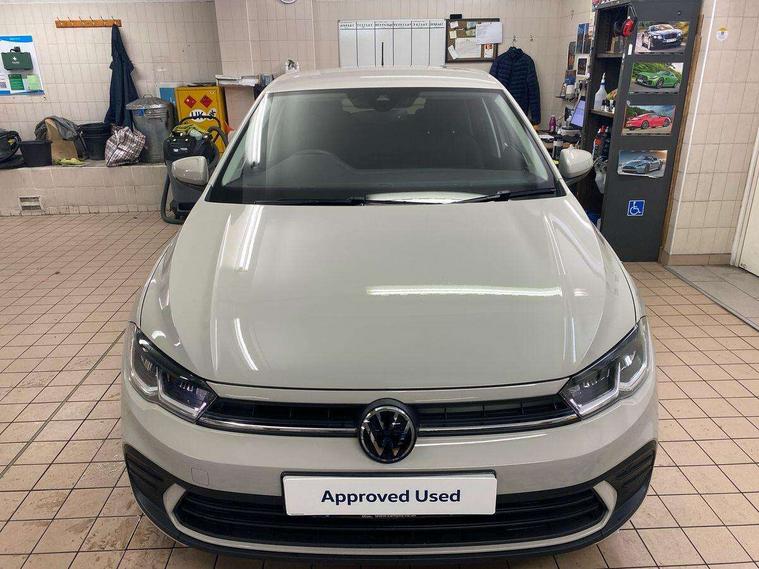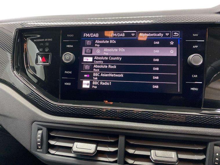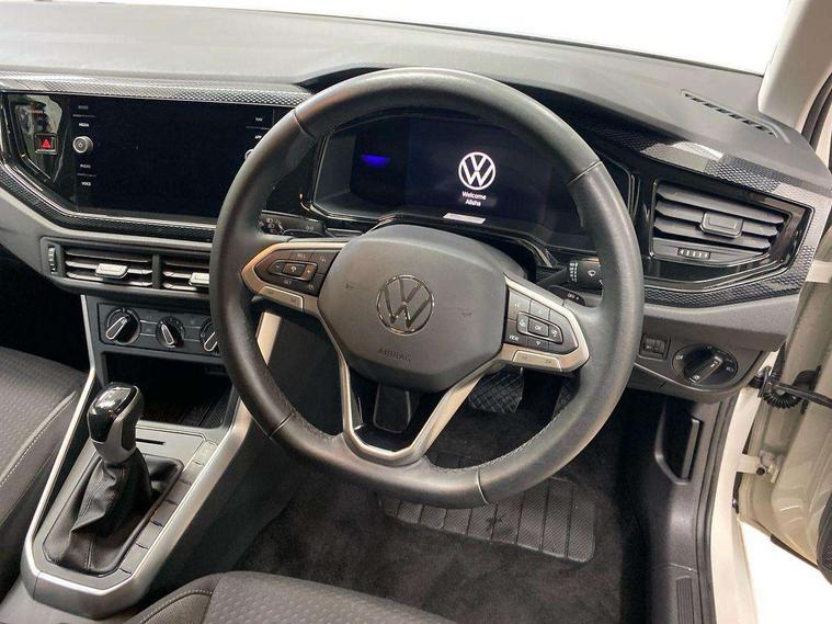 Advanced driver attention and drowsiness monitor, Bluetooth mobile phone interface, Dynamic road sign display, Emergency call service, Multifunction front facing camera for distance control, Park distance control, Power assisted speed sensitive steering, Predictive adaptive cruise control without follow-to-stop and speed limiter, Preparation for navigation system with media and internet package, Preparation for We connect and We connect plus, Rear view camera, Speedo and rev counter, electronic odometer, trip, service interval display and exterior temperature gauge, Standard rear axle, Travel Assist - Lane keeping system and traffic jam assist, Travel assist including emergency assist, Trip computer, Warning signal and warning light for front and rear seatbelts not fastened, Washer fluid level indicator, Wireless app connect, Front wheel drive, Rear shock absorpion, Start-stop system with battery regeneration (recuperation - energy recovery during braking), DAB Digital radio, Diversity antenna for FM reception, Front and rear 6 speakers, Automatic dimming interior rear view mirror, Automatic headlight control with LED separate daytime running lights with coming/leaving home function, Body colour bumpers with chrome inserts, Body colour door handles, Body colour door mirrors, Electric front windows, Engine badge deletion, Headlight range adjustment, Heat insulating and laminated safety glass windshield, LED Headlights, LED rear combination lamps, Power folding adjustable/heated exterior mirrors and front passenger exterior mirror lowering function, Rain sensor, Rear electric windows, Rear fog light, Rear side wing doors, Rear tinted glass from B-pillar backwards approx 65% tinted, Rear windscreen washer and wiper with interval delay, Third brake light, 12V power socket in centre console, 2 front and 2 rear reading lights with switch off delay and dimmer, 2 USB-C ports in the front, 2 USB-C charging sockets on the center console in the rear, 3 rear head restraints, 60/40 split folding rear seat and rear seat bench not split, Ceramique roof lining, Chrome plated radiator grille inserts, air vent surrounds and light switch surrounds, Door and side trim panel, Driver and front passenger seat height adjustment, Driver/passenger sunvisors with illuminated vanity mirrors, Front centre armrest, Front seat backrest storage pockets, Front standard seats, Handbrake lever handle in leather, Hartley/Thomas cloth upholstery, Headliner in recycled material, Isofix child seat preparation easy-fit (for two outer rear seats, and front passenger seat) compatible with I-size, Leather trimmed gear knob, Luggage compartment cover, Luggage compartment lighting, Removable luggage compartment floor, Single front passenger seat, Standard climatic zones, Standard pedal cluster, Three spoke leather wrapped multifunction steering wheel with shifting paddles, Light and vision pack - Polo, 3 point height adj front seatbelts + pretensioners, 3 point seat belt for centre rear seat, 3 point seatbelts, outer rear with ECE lable, ABS, Driver and front passenger airbag with front passenger airbag deactivation, Drivers and front passengers safety optimised head restraints, ESC (Electronic stability control) + EDL (Electronic Differntial lock) and ASR (Traction control), Extended and predictive pedestrian/ cyclist protection, Front assist with autonomous emergency braking (for Adaptive Cruise Control ACC up to 130 mph), Front curtain and side airbags with center airbag, Front disc brakes, Hill hold control, Manual child lock in rear doors, Rear drum brakes, Single tone horn, Tyre pressure loss indicator, Alarm with interior protection, Anti-theft alarm system with interior monitoring, backup horn, and towing protection, Anti-theft wheel bolts, Electronic engine immobiliser, Lava stone black gloss/matt decorative inserts in dash and front door panels, 16" Torsby alloy wheels, Low rolling resistance tyres,