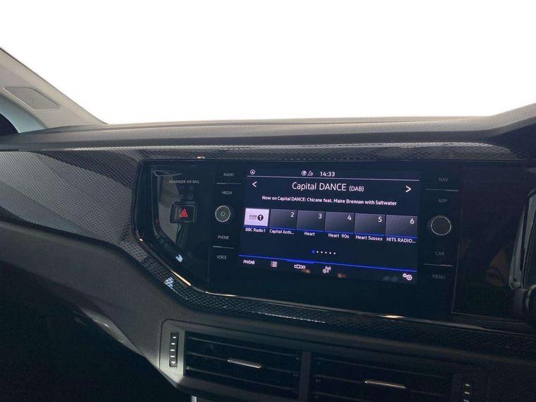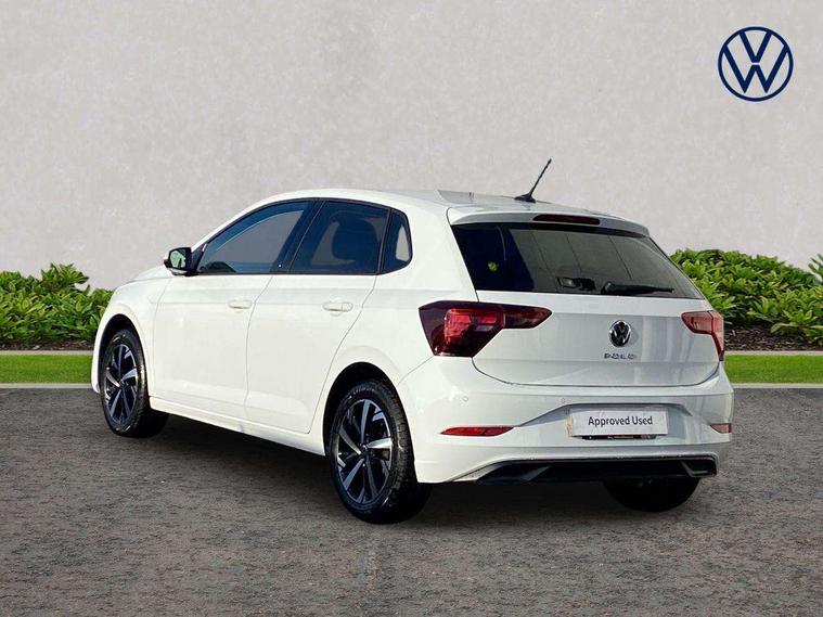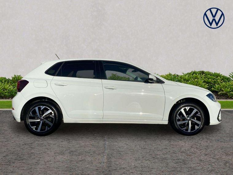 Advanced driver attention and drowsiness monitor, Bluetooth mobile phone interface, Dynamic road sign display, Emergency call service, Multifunction front facing camera for distance control, Park distance control, Power assisted speed sensitive steering, Predictive adaptive cruise control without follow-to-stop and speed limiter, Preparation for navigation system with media and internet package, Preparation for We connect and We connect plus, Rear view camera, Speedo and rev counter, electronic odometer, trip, service interval display and exterior temperature gauge, Standard rear axle, Travel Assist - Lane keeping system and traffic jam assist, Travel assist including emergency assist, Trip computer, Warning signal and warning light for front and rear seatbelts not fastened, Washer fluid level indicator, Wireless app connect, Front wheel drive, Rear shock absorpion, Start-stop system with battery regeneration (recuperation - energy recovery during braking), DAB Digital radio, Diversity antenna for FM reception, Front and rear 6 speakers, Automatic dimming interior rear view mirror, Automatic headlight control with LED separate daytime running lights with coming/leaving home function, Body colour bumpers with chrome inserts, Body colour door handles, Body colour door mirrors, Electric front windows, Engine badge deletion, Headlight range adjustment, Heat insulating and laminated safety glass windshield, LED Headlights, LED rear combination lamps, Power folding adjustable/heated exterior mirrors and front passenger exterior mirror lowering function, Rain sensor, Rear electric windows, Rear fog light, Rear side wing doors, Rear tinted glass from B-pillar backwards approx 65% tinted, Rear windscreen washer and wiper with interval delay, Third brake light, 12V power socket in centre console, 2 front and 2 rear reading lights with switch off delay and dimmer, 2 USB-C ports in the front, 2 USB-C charging sockets on the center console in the rear, 3 rear head restraints, 60/40 split folding rear seat and rear seat bench not split, Ceramique roof lining, Chrome plated radiator grille inserts, air vent surrounds and light switch surrounds, Door and side trim panel, Driver and front passenger seat height adjustment, Driver/passenger sunvisors with illuminated vanity mirrors, Front centre armrest, Front seat backrest storage pockets, Front standard seats, Handbrake lever handle in leather, Hartley/Thomas cloth upholstery, Headliner in recycled material, Isofix child seat preparation easy-fit (for two outer rear seats, and front passenger seat) compatible with I-size, Leather trimmed gear knob, Luggage compartment cover, Luggage compartment lighting, Removable luggage compartment floor, Single front passenger seat, Standard climatic zones, Standard pedal cluster, Three spoke leather wrapped multifunction steering wheel with shifting paddles, Light and vision pack - Polo, 3 point height adj front seatbelts + pretensioners, 3 point seat belt for centre rear seat, 3 point seatbelts, outer rear with ECE lable, ABS, Driver and front passenger airbag with front passenger airbag deactivation, Drivers and front passengers safety optimised head restraints, ESC (Electronic stability control) + EDL (Electronic Differntial lock) and ASR (Traction control), Extended and predictive pedestrian/ cyclist protection, Front assist with autonomous emergency braking (for Adaptive Cruise Control ACC up to 130 mph), Front curtain and side airbags with center airbag, Front disc brakes, Hill hold control, Manual child lock in rear doors, Rear drum brakes, Single tone horn, Tyre pressure loss indicator, Alarm with interior protection, Anti-theft alarm system with interior monitoring, backup horn, and towing protection, Anti-theft wheel bolts, Electronic engine immobiliser, Lava stone black gloss/matt decorative inserts in dash and front door panels, 16" Torsby alloy wheels, Low rolling resistance tyres,