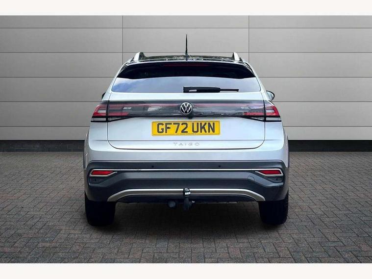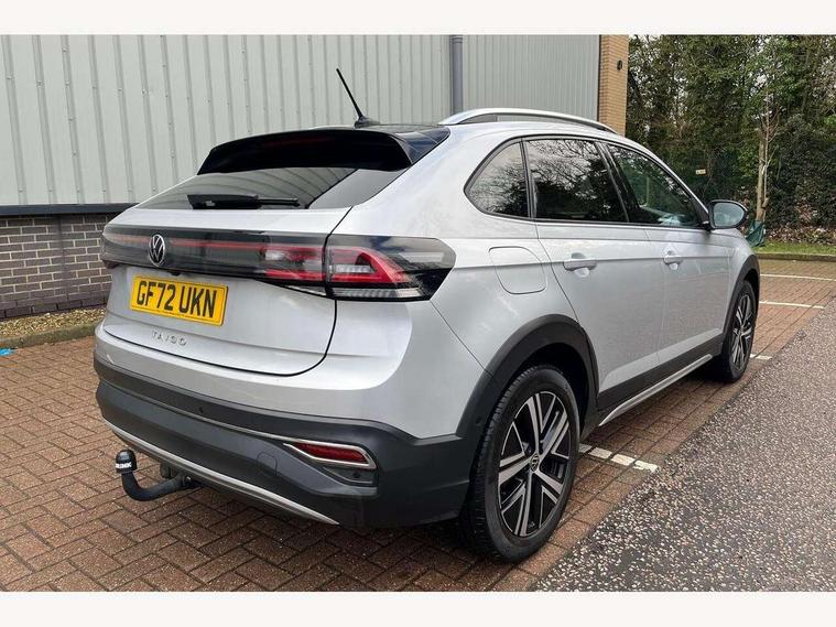 App-Connect including App-Connect Wireless, Digital cockpit pro - 10.25" high resolution TFT dash display screen with customizable menus and information, Driver alert system, e-Call (emergency call), Power Steering, Travel assist including emergency assist, Washer fluid level indicator, Wireless Charging including Bluetooth, Rear shock absorption, Start-stop system with battery regeneration (recuperation - energy recovery during braking), Digital radio reception (DAB+), Diversity antenna for FM reception, WeConnect plus, Advanced high beam control dynamic light assist for LED matrix headlamps, Aspherical driver's exterior mirror, Body coloured bumpers and radiator grille with chrome trim and front fog lamps with chrome bezel, Body coloured exterior mirror housings and door handles, Dual chrome twin tailpipes on left and right, Dynamic headlight range control, Electric windows, Exterior ambient lighting in illuminated front grille, External USB type C socket and charging sockets, Front fog lamps with cornering function, LED matrix headlamps, LED rear combination lamp, LED third brake light, Left convex exterior mirror, Power folding adjustable/heated exterior mirrors and front passenger exterior mirror lowering function, Rear fog light on one side, reversing light on both sides, Rear side wing doors, Rear wash/wipe with intermittent wipe setting, 12V socket in centre console, 2 front reading lights, 3 rear head restraints, 3 seat bench in 2nd row, Air care climatronic air conditoning system with active combination filter and 2-zone temperature control, Ambient lighting with logo projection, Black carpets, Child seat anchor for child seat system i-Size, 2x top tether and child seat anchor in front on front passenger side, Chrome bezel for instrument cluster, vents, door handles + gear shift, Driver and front passenger seat height adjustment, Front + rear carpet mats, Front centre armrest, Front footwell illumination, Front sports comfort seats, Height and reach adjustable steering wheel, Interior ambient lighting and surround lighting, Leather trimmed gear knob, Leather wrapped multifunction steering wheel, Luggage compartment floor, Luggage compartment light, Lumbar support for driver's and front passengers seat, Single front passenger seat, Split folding backrest with centre armrest and unsplit rear seat bench, Storage compartment under front seats, Sun visors with illuminated vanity mirrors, Chrome Package - Taigo, Drivers assistance pack - Taigo, Light and sight pack - Taigo, 2 x 3-point seatbelts/outer rear seats with ECE label, 3-point seat belts in front with pretensioner and height adjustment, 3-point seatbelt for centre rear seat, Driver and front passenger airbags with front passenger airbag de-activation, front side and curtain airbags, Driver and front passenger safety-optimised head restraints, Electronic stability control, Extended and predictive pedestrian/ cyclist protection, Front and rear disc brakes, Front curtain and side airbags with center airbag, Hill start assist, Manual rear child locks, Single tone horn, Tyre pressure loss indicator, Anti-theft alarm system with interior monitoring, backup horn, and towing protection, Anti-theft wheel bolts, Low rolling resistance tyres,