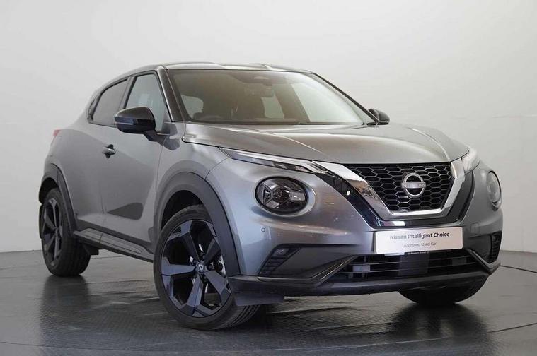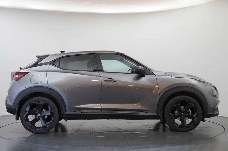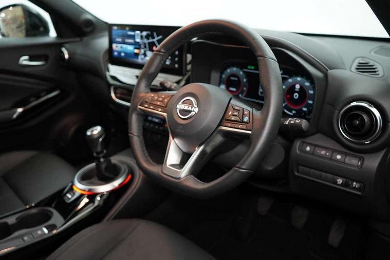 12.3" full colour TFT screen combimeter, Drive modes select (Eco, normal and sport), Emergency and breakdown call, Front parking sensor, Idle start/stop system, Intelligent driver alert system, Intelligent lane intervention, Lane departure warning system, Nissan connect 12.3" touch screen entertainment system, Nissan connect nav with TomTom traffic, Nissan connect services, Outside temperature sensor, Power Steering, Rear parking sensor, Stop/start button, Traffic sign recognition, Trip computer, Voice recognition, WiFi connectivity, Wireless Apple CarPlay and Google Android auto, Wireless Smartphone charger, 10 Bose speakers 8 speakers and 2 headrest speakers for driver/passenger seats, 2 X Rear console USB port, Bluetooth system, USB, Aux-in and 12V socket, Bose personal plus audio system, DAB Digital radio, Auto dimming frameless rear view mirror, Automatic hazard signal with emergency stop signal, Body colour door handles, Electrically adjustable door mirrors with integrated indicators, Follow me home headlights, Front and rear electric window with one touch driver window, High beam assist, LED 3rd brake light, LED daytime running lights, LED front fog lights, LED headlamps, LED rear fog lamp, LED rear lamps, One touch passenger window, Rear privacy glass, Rear side wing doors, Rear wiper, Roof spoiler, Shark fin roof antenna in solid Black, Solid black door mirrors, Three blink turn signal, 3 height adjustable rear headrests, 3 seat bench in 2nd row, 60/40 split folding rear seat, Card holder on driver sunvisor, Door ambient lighting, Driver seat back pocket, Driver side rear coat hanger, Driver/passenger sunvisors and vanity mirrors, Front and rear cabin lights, Front armrest, Front door pockets with bottle holders, Front head restraints, Front/rear passenger grab handles, Gear console ambient circle lighting, Height adjustable driver's seat, Internal chrome door handles, Luggage board, Luggage space lighting, Monoform sporty seats, Multifunction steering wheel, Passenger seat back pocket, Rear door bottle holders, Single front passenger seat, Smooth synthetic leather steering wheel, Synthetic leather kneepad, Synthetic leather shift knob, Synthetic leather upholstery, Telescopic steering wheel adjustment, Two cupholders in front centre console, Two rear isofix child seat anchorage points with top tether, Welcome light and console tray ambient lighting, Advanced safety shield pack - Juke Manual, Comfort pack - Juke, Heat pack with height adjustable passenger seats - Juke, ABS with EBD and brake assist, Active ride control, Active Trace Control, Driver and passenger airbags, Driver and passenger side airbags, Electric handbrake with auto hold function, Electronic Stability Programme (ESP), Front and rear curtain airbags, Height adjustable seatbelts, Hill start assist, Intelligent emergency braking with pedestrian and cyclist recognition, Rear door child safety locks, Seatbelt reminder for driver/front passenger and rear seats, Three 3 point rear seatbelts, Traction control, Tyre pressure monitoring system, VDC Dynamic Vehicle Control, Alarm, Immobiliser, Intelligent key and start push button with walk away lock and approach unlock functions, Remote central locking, 19" Alloy wheels, Tyre puncture repair kit,