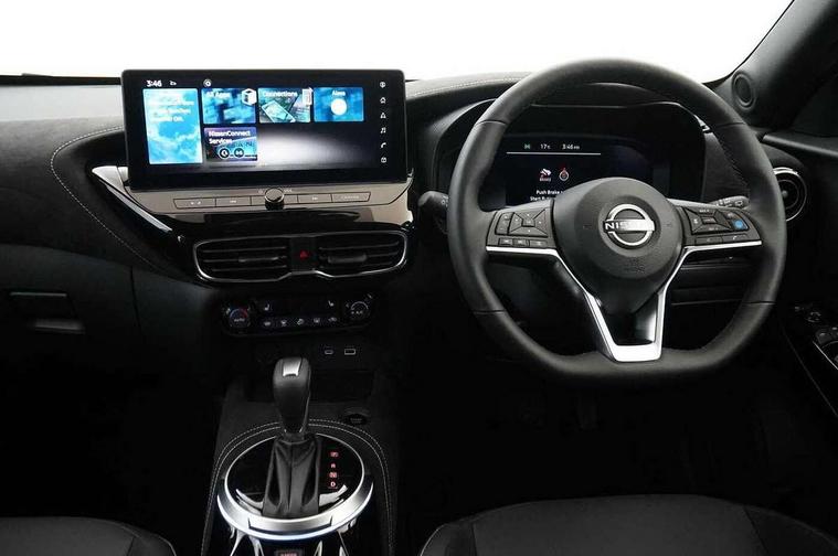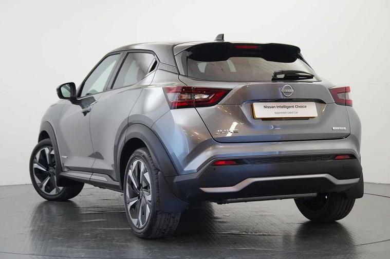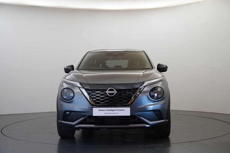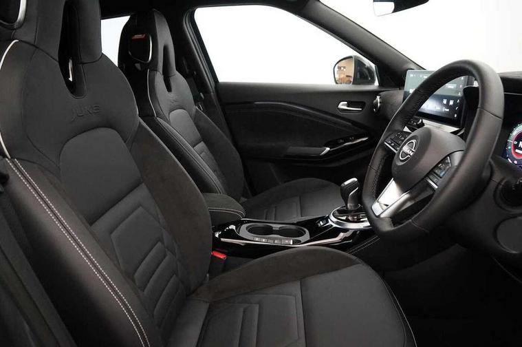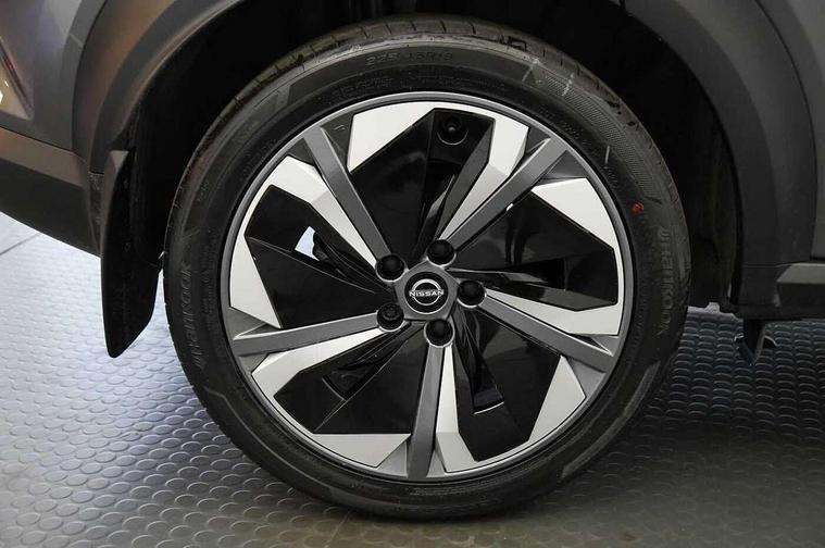 12.3" full colour TFT screen combimeter, Drive modes select (Eco, normal and sport), e-Pedal step, Emergency and breakdown call, EV mode switch, Front parking sensor, Intelligent driver alert system, Intelligent lane intervention, Lane departure warning system, Nissan connect 12.3" touch screen entertainment system, Nissan connect nav with TomTom traffic, Nissan connect services, Outside temperature sensor, Power Steering, Rear parking sensor, Stop/start button, Traffic sign recognition, Trip computer, Voice recognition, WiFi connectivity, Wireless Apple CarPlay and Google Android auto, Wireless Smartphone charger, 10 Bose speakers 8 speakers and 2 headrest speakers for driver/passenger seats, 2 X Rear console USB port, Bluetooth system, USB, Aux-in and 12V socket, Bose personal plus audio system, DAB Digital radio, Auto dimming frameless rear view mirror, Automatic hazard signal with emergency stop signal, Body colour door handles, Electrically adjustable door mirrors with integrated indicators, Follow me home headlights, Front and rear electric window with one touch driver window, High beam assist, LED 3rd brake light, LED daytime running lights, LED front fog lights, LED headlamps, LED rear fog lamp, LED rear lamps, One touch passenger window, Rear privacy glass, Rear side wing doors, Rear wiper, Roof spoiler, Shark fin roof antenna in solid Black, Solid black door mirrors, Solid black front bumper/rear bumper and side skirts inserts, Three blink turn signal, 3 height adjustable rear headrests, 3 seat bench in 2nd row, 60/40 split folding rear seat, Card holder on driver sunvisor, Door ambient lighting, Driver seat back pocket, Driver side rear coat hanger, Driver/passenger sunvisors and vanity mirrors, Front and rear cabin lights, Front armrest, Front door pockets with bottle holders, Front head restraints, Front/rear passenger grab handles, Gear console ambient circle lighting, Height adjustable driver's seat, Internal chrome door handles, Luggage board, Luggage space lighting, Monoform sporty seats, Multifunction steering wheel, Passenger seat back pocket, Rear door bottle holders, Single front passenger seat, Smooth synthetic leather steering wheel, Synthetic leather kneepad, Synthetic leather shift knob, Telescopic steering wheel adjustment, Two cupholders in front centre console, Two rear isofix child seat anchorage points with top tether, Welcome light and console tray ambient lighting, Comfort pack - Juke, Heat pack with height adjustable passenger seats - Juke, Interior personalisation pack - Juke, ProPilot pack - Juke Auto, Satin grey exterior personalisation pack - Juke, ABS with EBD and brake assist, Active ride control, Active Trace Control, Driver and passenger airbags, Driver and passenger side airbags, Electric handbrake with auto hold function, Electronic Stability Programme (ESP), Front and rear curtain airbags, Height adjustable seatbelts, Hill start assist, Intelligent emergency braking with pedestrian and cyclist recognition, Rear door child safety locks, Seatbelt reminder for driver/front passenger and rear seats, Three 3 point rear seatbelts, Traction control, Tyre pressure monitoring system, VDC Dynamic Vehicle Control, Alarm, Immobiliser, Intelligent key and start push button with walk away lock and approach unlock functions, Remote central locking, 19" Aero alloy wheels, Tyre puncture repair kit,