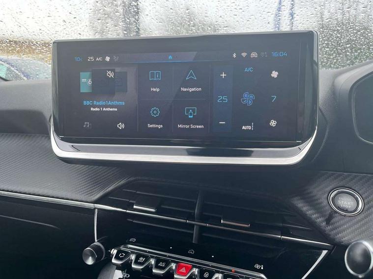 Bluetooth telephone facility, Driver attention warning, E-call, Exterior temperature indicator with ice warning, Front and rear parking sensors, Multi function trip computer, PEUGEOT i-Cockpit with 10" high definition capacitive touchscreen, PEUGEOT i-Cockpit with compact steering wheel, PEUGEOT i-Cockpit with configurable headup instrument panel, Speed limit recognition and recommendation, Wireless mirror screen with apple carplay and android auto, Petrol Particulate Filter, 1x USB-C socket in rear and 1x USB-A socket in rear, 2 USB-C ports in the front, 6 speakers radio with mp3 compatible, DAB Radio (Digital Audio Broadcasting), 2 X Rear number plate lights, Automatic hazard light activation upon heavy brake application, Black front wing trim with gloss black detail, Body coloured exterior door handles, Colour coded rear roof spoiler, Colour coded roof, Dark tinted rear side and tailgate windows, Diamond black mirror shells, Eco LED headlights, Electric, heated, and power folding door mirrors, Electrochrome rear view mirror, Front bumper - Meteor grey lower trim, Gloss black finish on B pillar, Gloss black rear cluster connecting strip, Gloss black roof bars, Headlights left on audible warning, LED daytime running lights with distinctive 3 claw signature, LED side indicator lights integrated into door mirrors, LED third brake light, Model designation badges front and rear, One touch electric front/rear windows with pinch protection, Radiator grille - Body coloured top edge trim, Radiator grille - body coloured vertical chequered grille, Rear full LED 3D peugeot signature claw effect lights with daylight function, Rear reversing lights, Rear side wing doors, Rear windscreen wiper triggered automatically in reverse gear, Tailgate with heated rear windscreen and wiper blade, Twin chromed exhaust pipes, Wheel arch extensions, 1/3 to 2/3 split folding rear seats, 12V socket, 3 seat bench in 2nd row, Automatic air conditioning with pollen and active carbon filter, Central front armrest with storage compartment, Driver and front passenger comfort seats, Driver seat manual adjustment - height, longitudinal and back rest angle, Electric power steering with reach and rake adjustable steering column, Front LED interior light with 2 reading spotlights and rear interior light with timer, Front passenger seat manual adjustment - height, longitudinal and back rest angle, High centre console, Leather steering wheel, Multifunction steering wheel, Piano keys: Gloss black and chrome toggle switches to access main functions of the vehicle and touchscreen functions, Roof lining - Mistral black, Seatbelt unfastened on the move audible and visual alert for front and rear seats, Single front passenger seat, Tri material cloth/leather effect upholstery, Two position modular boot floor, Visibility pack - 2008, 2x 2nd row ISOFIX child seat mountings, ABS (Anti-lock Braking System) with EBD (Electronic Brakeforce Distribution) and EBA (Emergency Braking Assistance), Active safety brake with night function/cyclists/pedestrians, Adaptive driver and front passenger airbags with passenger airbag deactivation function, Child locking functionality on rear doors, Driver/front passenger side airbags, Electric parking brake, ESP (Electronic Stability Program) + Hill Start Assist, Front and rear curtain airbags, Front and rear disc brakes, Front and rear three-point retractable seatbelts, with force limiters, Front optimised safety headrests and rear retractable headrests (x3), height adjustable, Tyre pressure sensor, Automatic door locking when moving off, Deadlocks, Electronic code immobiliser, Thatcham category 1 alarm, Carbon effect Dashboard, front and rear door panel finish, 17" Karakoy diamond cut alloy wheels,