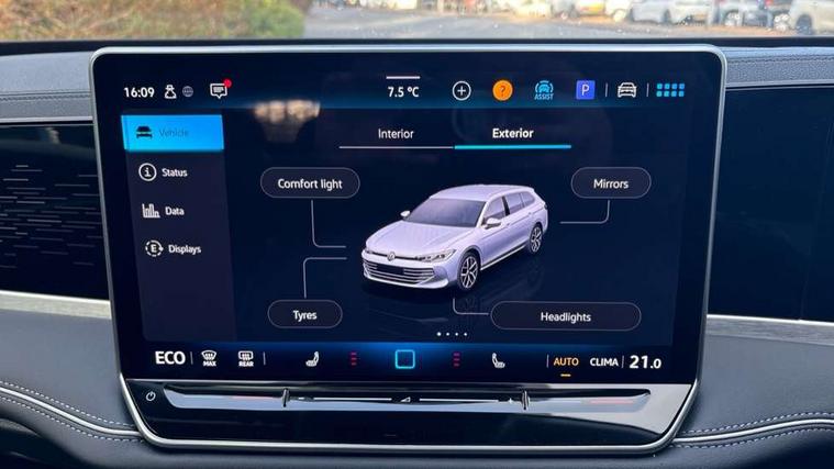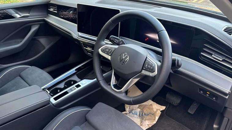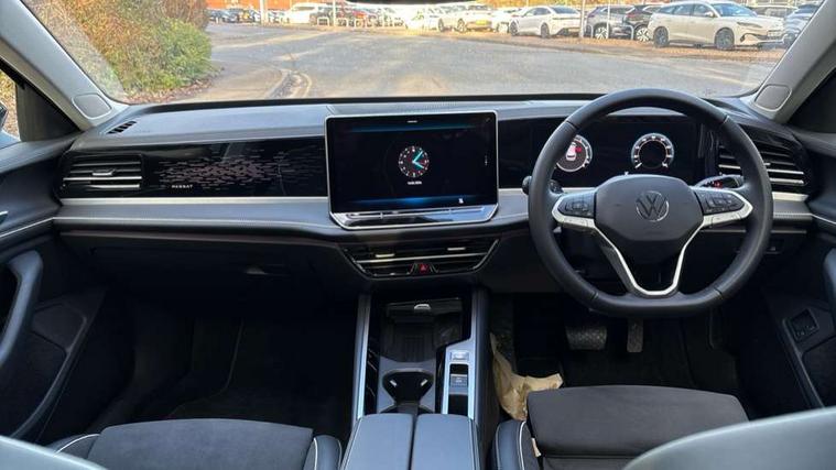 2 x Front USB-C ports, 2 x USB-C charging sockets on the centre console in the rear, charging capacity up to 45W, Adaptive cruise control, Advanced driver attention and drowsiness monitor, Chat GPT function for IDA voice assistant, Digital cockpit pro 10.25" high resolution, Discover media navigation system includes streaming and internet, Dynamic road sign display, E-Sim card for online connectivity, eCall emergency call service, Electronic engine sound, Full electric tailgate operation, Inductive smartphone charging without external antenna connection, Memory feature for park assist, Oncoming vehicle braking when turning including swerve support, Park assist pro with park distance control (Remote park assist), Predictive speed limiter, Preparation for We connect and We connect plus, Wireless app connect, Battery 340 A (58 Ah), Front wheel drive, Petrol Particulate Filter, 8 Speakers, Auto dimming interior rear view mirror, Automatic headlights, Body colour bumpers, Body colour door handles, Electric panoramic sunroof, tilting and sliding panoramic sunroof with rear panoramic sunroof, Heated windscreen washer jets, Laminated safety glass windshield, heat and sound insulating, LED third brake light, Rain sensor, Rear side wing doors, Rear wiper, Welcome light with surround lighting, 3 seat bench in 2nd row, 3 zone air care climatronic with rear air conditioning control panel, 30 colours options interior ambient lighting, Front + rear carpet mats, Front head restraints, Front sports comfort seats, Isofix child seat preparation, easy-fit (for two outer rear seats, and front passenger seat), compatible with I-size, Leather-wrapped, heated and multi-function steering wheel with shift paddles, Luggage compartment cover, power operated, Rear centre armrest, Single front passenger seat, Standard pedal cluster, Sun visors with illuminated vanity mirrors for driver and front passenger, Sunblind for rear side windows, Three rear head restraints, Unsplit rear seat bench, split folding backrest, Acoustics pack - Passat Estate, LED High matrix headlamps pack - Passat, 3x3 point rear seat belts, ABS (Anti locking brake system) includes BAS (Brake assist) and EBD (Electronic brake pressure distribution), Autonomous emergency braking front assist with pedestrian and cyclist monitoring, Disc brakes in front, Driver/Front Passenger airbags, Drivers knee airbag, Electronic parking brake with auto hold, ESC (Electronic stability control) + EDL (Electronic Differential lock) and ASR (Traction control), EDTC (Engine drag torque control), Extended safety system with proactive passenger protection system, Front passenger airbag deactivation switch, Hill hold function, Tyre pressure loss indicator, Warning triangle and first aid kit, Alarm with interior protection, Electronic engine immobiliser, Keyless locking and starting system keyless access with safelock, Aluminium decorative inserts, Tool kit for tyre mobility set, Trims for alloy wheels, Tyre mobility kit including compressor and sealing foam,