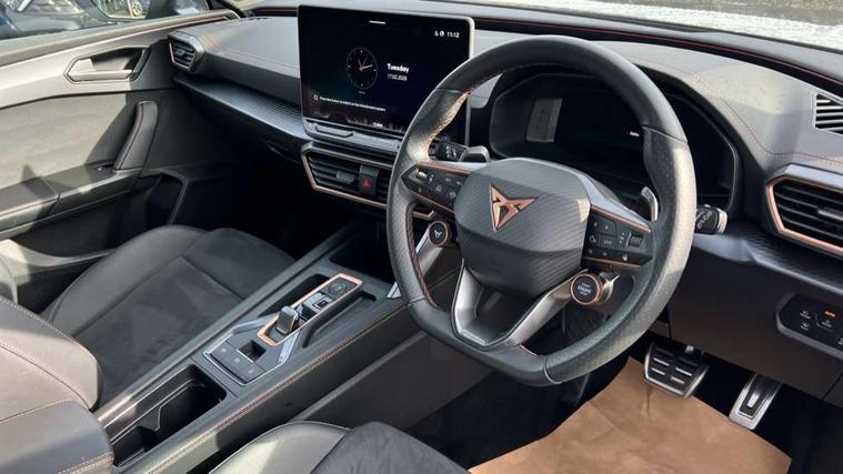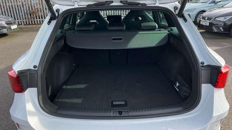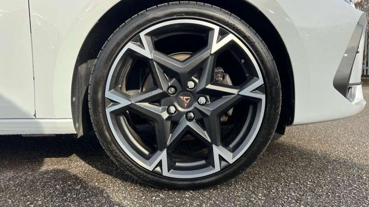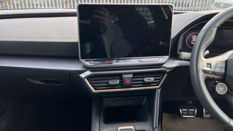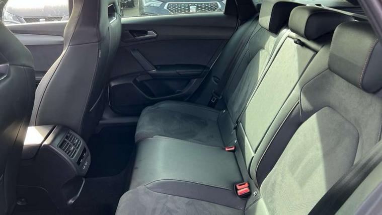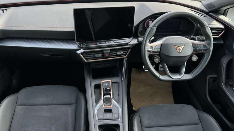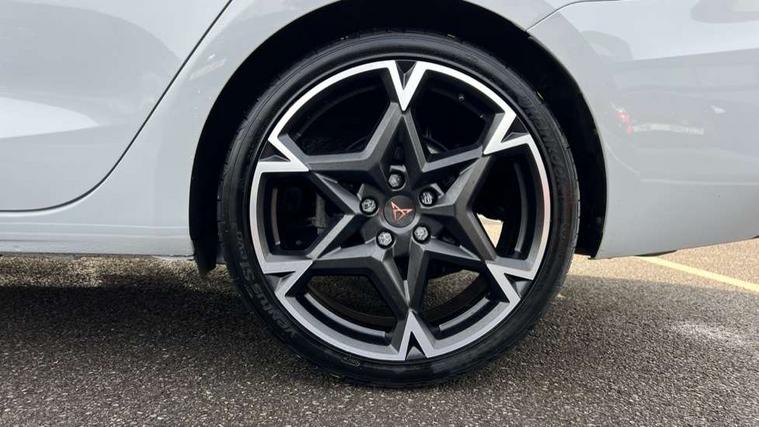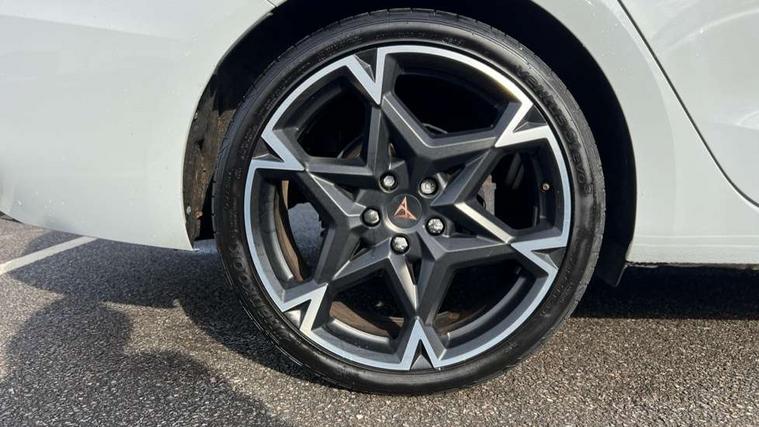 Adaptive cruise control with follow-to-stop and speed limiter, CUPRA drive profile selection with (Comfort/Sport/Individual), throttle response and gearshift mode, Digital cockpit, Dynamic road sign display, E-call, Front and rear parking sensors, Front assist with forward collision warning braking reaction to vehicles, pedestrians and cyclists, Full link smartphone integration with Mirror Link, wireless Apple CarPlay and wired Google Android Auto, Lane assist, Lockable tailgate, Rear view camera, RPM, trip computer, outside temp gauge, instrument light brightness, low fuel warning light, lights on reminder, gearshift indicator, Service interval indicator, Start/stop system with regenerative braking, Virtual pedal with electric tailgate, Wireless phone charger, Auxiliary input socket, Auto dimming rear view mirror, Body colour door handles, Body coloured bumpers, Cupra sports bumpers, Dark tinted rear windows, Electric front/rear windows, Electrically adjustable, heated and folding door mirrors, Gloss black roof rails, High beam assist, LED front fog lamps with cornering function, LED headlights with dynamic turn signals, tail lights, rear fog lights with rear coast to coast lighting, LED rear fog lamp, Rain sensing wipers, Rear side wing doors, Rear wash/wipe, Separate daytime running light with automatic headlight control and coming home feature, Third brake light, Welcome light with logo projector in door mirrors, 12v power supply in centre console, 3 seat bench in 2nd row, 5 headrests, 60/40 split rear bench seat with armrest, Ambient lighting (glovebox, footwell, ambient lighting multicoloured), Black headlining, Cupra sports pedals, CUPRA Supersports, heated steering wheel with satellite buttons, Dinamica cloth upholstery, Electrically adjustable driver seat and lumbar support with memory function + manually adjustable passenger seat, Four x USB Type C ports (2 in front and 2 in rear), Front and rear reading lights X 4, Front centre armrest, Heated front seats, Height/reach adjust steering wheel, Illuminated interior front door sills, Interior wraparound lighting, ISOFIX points in outer rear seats with top tether anchorage points, Single front passenger seat, Sliding boot cover, Storage pockets on rear of front seats, Sunvisors with illuminated mirror, Three zone climate control, Dynamic and comfort pack - Leon Cupra, Media system plus with 12.9" display + navigation pack - Leon Cupra, 3 point seatbelts on all rear seats, ABS, Brake control system - ESC and brake booster, Child proof door locks, Cupra black brake calipers, Driver and front passenger airbags with front passenger airbag de-activation, front side and curtain airbags, Electronic parking brake, Hill hold control, Rear disc brakes, Seat belt reminder for front and rear seats, Tiredness recognition system, Tyre pressure monitoring system, Anti theft alarm system with interior monitoring in cab, backup horn and towing protection, KESSY Advanced - Keyless start, keyless entry, Locking wheel bolts, Chrome and copper interior detailing, 19" Polar machined sport black and silver alloy wheel with 91Y tyres, Tool kit,