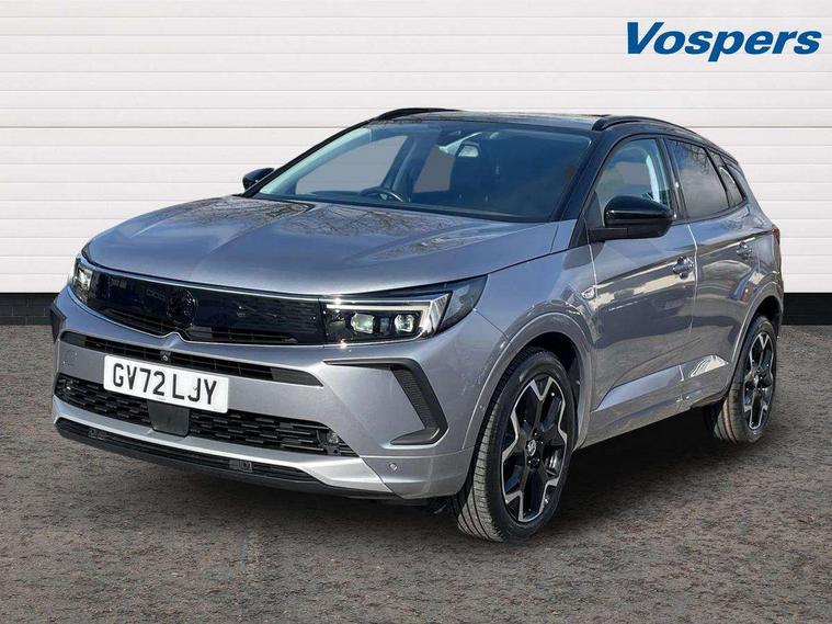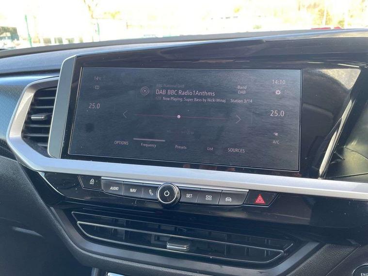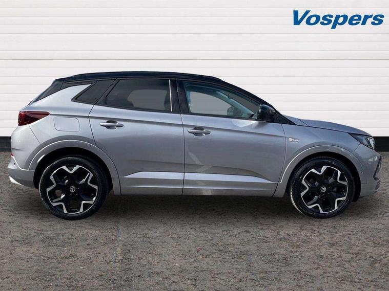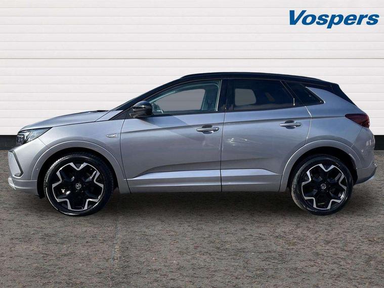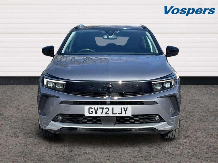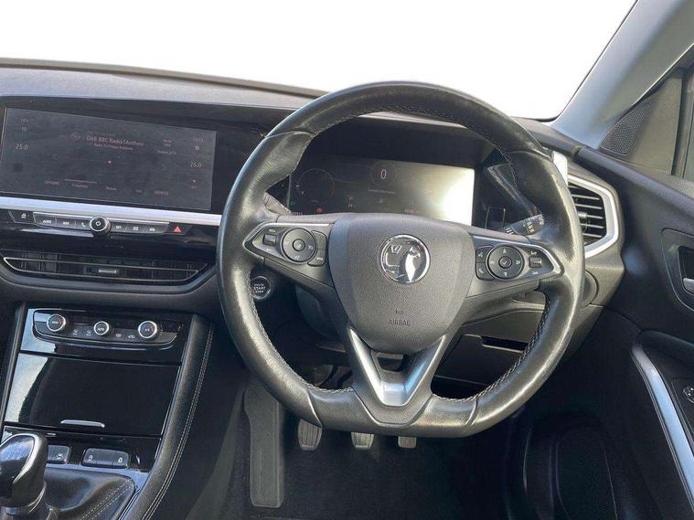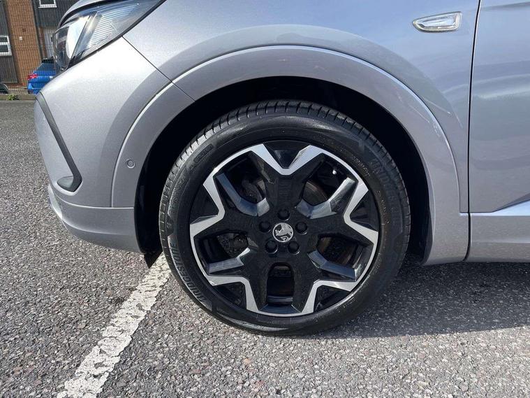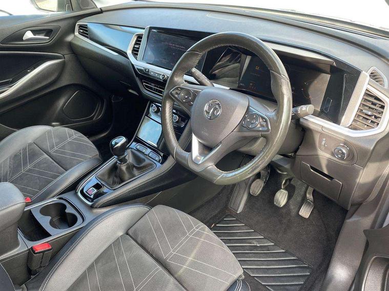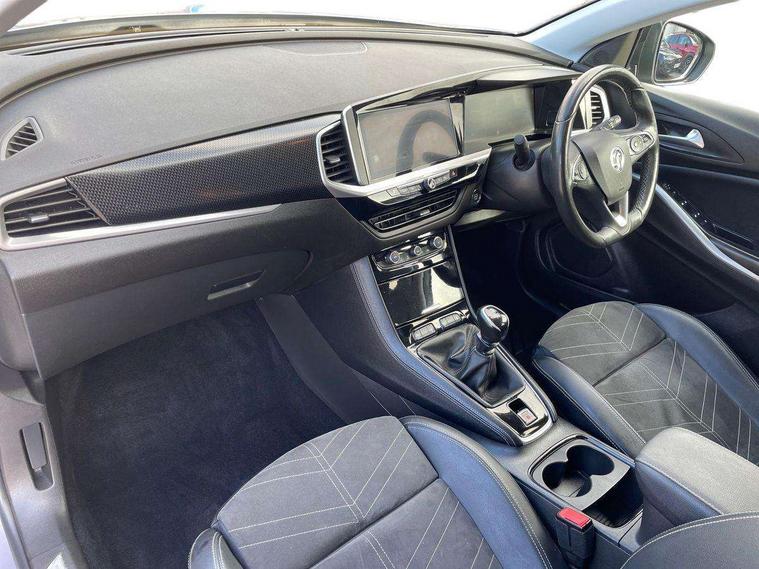 12" colour digital cluster, Central facia display with digital clock, outside air temperature and audio information, Cruise control with speed limiter, Digital fuel gauge with low fuel level warning light, Digital rev counter, Digital speedometer, Digital water temperature gauge with warning light, Driver drowsiness alert system, Driver information - Total mileage, service indicator, oil life, Front and rear parking distance sensors with 360 degree rear view camera and advanced park assist, Gearshift up/down indication light, Lane departure warning system, Lane keep assist, Lights on audible warning, Multi function trip computer - Trip odometer, vehicle range, average speed and fuel economy, instantaneous fuel economy and driving time, Multimedia navi pro with 10" colour touch+ sat nav+AM/FM/DAB radio, bluetooth audio streaming/mobile phone portal, Apple carplay/Android auto, USB, Power operated tailgate with foot sensor, Side blind spot alert, Speed sensitive electric power assisted steering, Speed sign recognition, Vauxhall connect including Emergency call (SOS e-call) and Breakdown call (b-call), Wireless charger for mobile devices, Anti-roll bars, Compound crank rear suspension with coil springs and gas pressure dampers, Independent decoupled MacPherson strut front suspension with gas pressure dampers and coil springs, anti-roll bar, Six speaker - four front + two rear, Steering wheel mounted audio/phone/cruise controls, Alloy effect front and rear skid plates, Automatic lighting control, Automatically dimming anti dazzle rear view mirror, Black door mirrors, Black roof, Black side window trim, Body colour door handles, Body colour lower front and rear bumpers, protective wheel arches and lower door cladding, Body colour upper front bumper, Collapsible windscreen wipers, Dark tinted rear side and tailgate windows, Door to door illumination, Electrically operated front and rear windows with safety auto reverse and one touch up/down facility, Front wiper system spraying directly from wipers, Hazard warning lights, Heated rear screen with timed cut off, Heated windscreen, High beam assist, High gloss black Griffin for Vizor and tailgate with high gloss black Grandland tailgate lettering, High gloss black roof rails, High level centre rear brake light, IntelliLux adaptive LED pixel headlights and LED tail lights, Intermittent rear window wash/wipe, LED daytime running lights, LED front fog lights, Magic wash, Manual headlight beam levelling, Rain sensor windscreen wipers, Rear side wing doors, Rear spoiler, Reversing light, Shark fin aerial, Silver effect protective front and rear skid plate, Soundproof insulated windscreen, Tinted windows, Twin electrically adjustable and heated power door mirrors (wide-angle on drivers side) with automatic timed cut-off, Two speed windscreen wipers with variable intermittent wipe, Upper and lower bumper design, Vizor front grille, Welcome lighting, 12v plug in front console and 12v plug in boot, 3 bench rear seats in 2nd row, 3 spoke flat bottom leather steering wheel with satin chrome effect bezel, 4 way electric driver lumbar support, 4 way passenger electric lumbar support, 60/40 split folding rear seat with centre rear seat armrest and load though facility, Advanced predictive logic control system using a sun sensor, Alcantara upholstery, Ambient centre console downlighter, Automatic air direction and fan speed with manual override, Charcoal filter, Chrome effect interior door handles, Covered storage compartment in centre console and in driver armrest, Driver's centre armrest, Drivers and front passengers seat with height, reach, tilt, backrest adjustment and seat cushion extension, Dual zone electronic climate control, Ergonomic active drivers sports style seat, Ergonomic active front passenger sports style seat, Front door pockets with 2.6 litre capacity, Front seat back storage pockets, Fully carpeted luggage area, Height adjustable headrests, Illuminated driver/passenger sunvisors with vanity mirror, Illuminated luggage area, ISOFIX on front passenger and rear outer seats, Luggage compartment cover, Reach + rake adjustable steering column, Rear centre seat head restraint, Rear door pockets with 1.8 litre capacity, Rear passenger compartment heating ducts, Rear reading lights, Two drinks holders in centre console, Winter pack - Grandland, Anti-lock braking system (ABS), Automatic emergency braking with pedestrian detection, Child proof locks on rear doors, CSC - Cornering stability control, Deactivation switch for front passenger front and side impact airbags, Deflation detection system, Driver airbag, Dual seatbelt pretensioners on front seats, EBD - Electronic brakeforce distribution, Electronic parking brake, Electronic stability program (ESP) including traction control, Front brake ventilated disc 304mm diameter, Front passenger airbag, Front seat side impact airbags, Full size curtain airbags for driver, front seat passenger and outer rear seat passengers, Hill start assist, Hydraulic Brake Assist (HBA), Inertia reel lap and diagonal seatbelts for all seats, Load limiters on outer rear seatbelt retractors, Pretensioners on outer rear seatbelt retractors, Rear brake ventilated disc 268mm diameter, Smart seatbelt reminder for front and rear seats, Tyre pressure monitoring system, Deadlocking system, Electronically protected audio equipment, Engine deadlock immobiliser, Keyless entry and start, Locking wheel nuts, Remote control central locking activation switch on driver door, Remote security alarm system, Black door panels with black premium leather effect inserts, Dax decor facia panel with palladium medium finish, 19" diamond cut bi-colour alloy wheel, Tyre inflation kit,