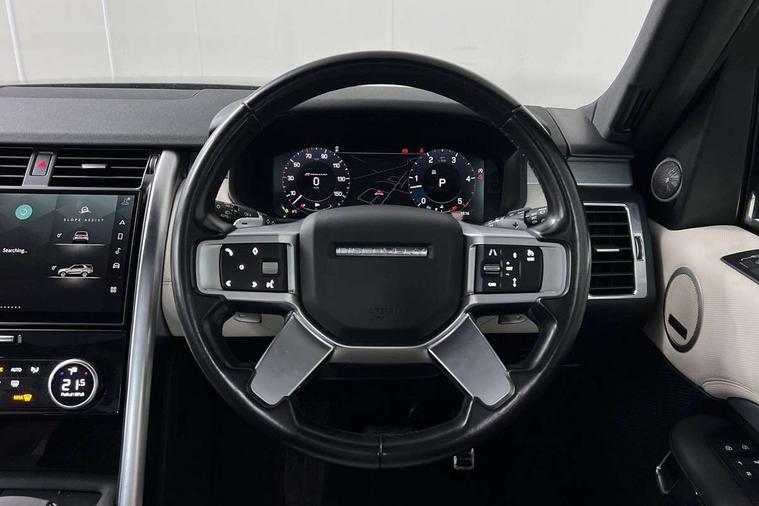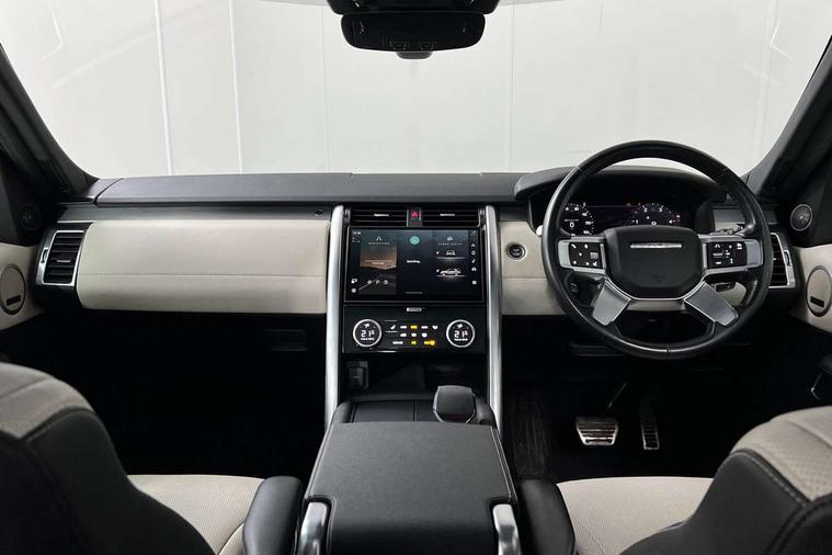 11.4" touchscreen, 3D surround camera, Adaptive cruise control, Android Auto, Apple car play, Blind spot assist, Driver condition monitor, Electric power assisted steering (EPAS), Emergency services call system, Front and rear parking aid, Lane keep assist, Power inner tailgate, Push button start, Rear collision monitor, Rear traffic monitor, Remote, Remote boot release, Service interval indicator, Speed proportional steering, Sportshift selector, Stop/start system, Traffic sign recognition with adaptive speed limiter, Trip computer, Wade Sensing, Adaptive dynamics, Dynamic stability control, Electronic air suspension, Front axle open differential, Digital Audio Broadcast radio-DAB, Dynamic volume control, Pivi pro connected, USB/aux input socket, Acoustic laminated windscreen, Animated directional indicators, Auto dimming interior rear view mirror, Automatic headlight levelling, Automatic headlights, Body colour bumpers, Body colour door handles, Centre high mounted stop light, D300 badge, Electric heated/power fold memory door mirrors with approach lights and auto dimming driver side, Electric windows with one touch open/close and anti-trap, Heated rear window, Heated windscreen, LED darkend tail lights, Metal treadplates with R-Dynamic branding, Narvik black Discovery script, Privacy glass, Puddle lights, Rain sensing windscreen wipers, Rear fog lights, Rear side wing doors, Rear wash/wipe, Trailer stability assist, Variable intermittent wiper, 12V power sockets, 12V USB charging socket in loadspace, 2 seat bench in 3rd row, 3 seat bench in 2nd row, Central hinged twin lidded storage, Ebony morzine headlining, First and second row door bins, Footwell lights, Front and rear 12V with front USB, Front passenger seat isofix location point, In-facia storage, Isofix child seat preparation for front passenger seat, Loadspace cover, Loadspace Hook, Loadspace light, Lockable glovebox, Lower centre console storage, Luggage tie downs in loadspace, Multi function steering wheel, Overhead lighting console, Premium carpet mats, Rear ISOFIX, Shopping bag hook, Single front passenger seat, Storage glovebox, Sunvisors with illuminated vanity mirrors, Third row storage, Twin front cupholders with cover, USB with 12V socket in centre console, Online pack with data plan - Discovery, R-Dynamic black exterior pack - Discovery, 3x3 point rear seatbelts, Anti-lock braking system (ABS), Brake pre-fill technology, Cornering brake control, Curtain airbags, Customer configurable autolock, Driver and passenger airbags, EBD - Electronic brakeforce distribution, Electronic traction control, Emergency brake assist, Emergency braking, ESP, Front side airbags, Gradient acceleration control, Hill descent control, Hill launch assist, Power operated child locks, Rear airbags, Roll stability control, Seat belt reminder, Torque vectoring brake, Tyre pressure monitoring system, Immobiliser, Intrusion sensor, Keyless entry, Locking wheel nuts, Remote central locking, All terrain tyres,