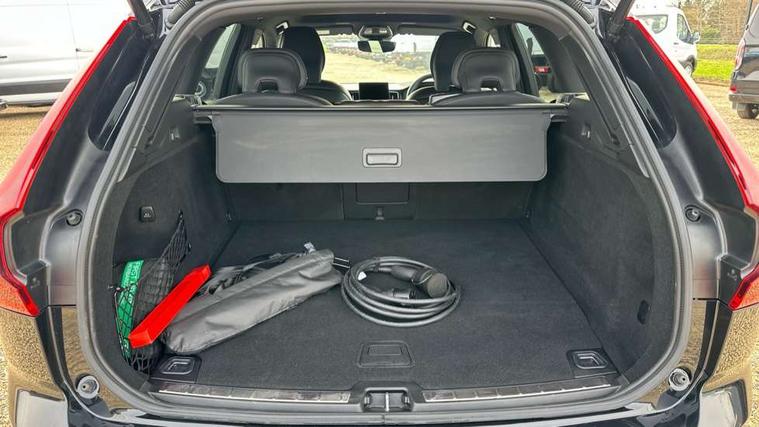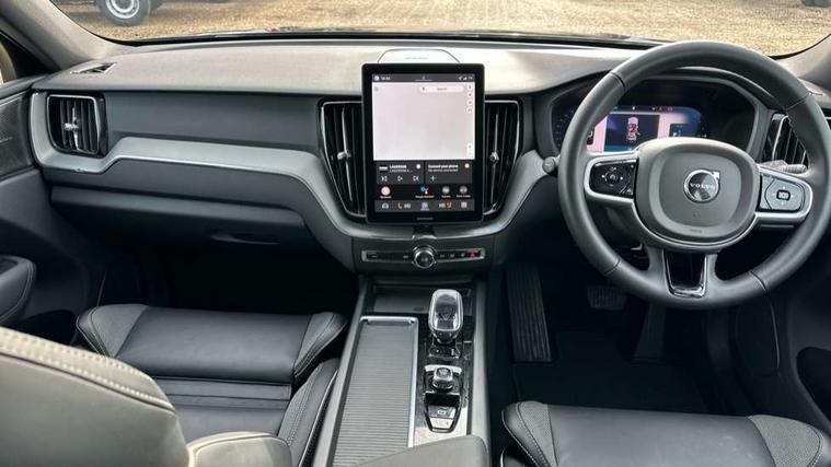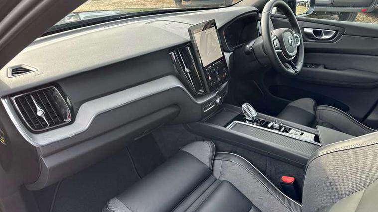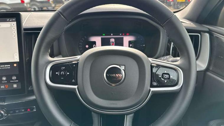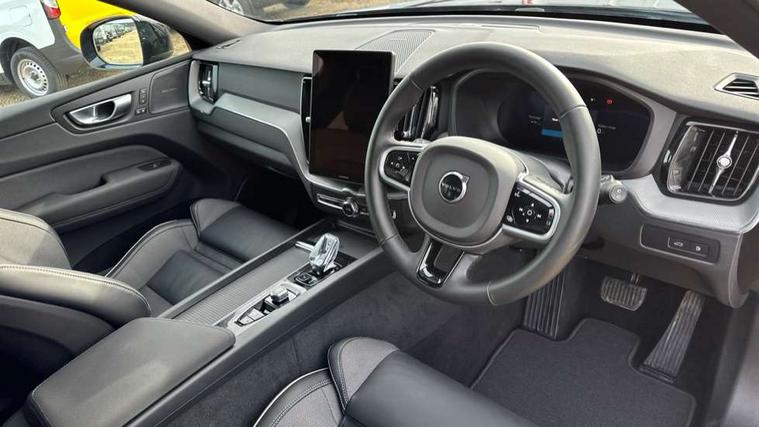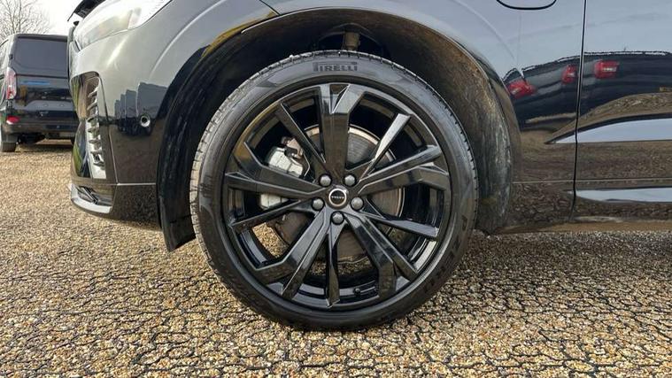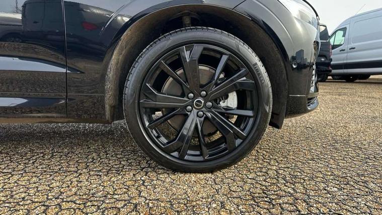 11.2" centre console touch screen, 12.3" Progressive Driver Display, 360 degree surround view parking camera with side proximity sensors, Adaptive cruise control, Adjustable steering wheel force, Android auto (Wired), Apple carplay (wired), Bluetooth handsfree system, Drive mode settings, Driver alert control with lane keeping aid, Emergency services call system, Front and rear park assist, Google Automotive Services, Intelligent speed assistance, Oncoming Lane Mitigation, PAS, Power operated tailgate with handsfree opening and closing, Service interval indicator, Speed limiter, Speed sensitive steering, Trip computer, Volvo cars services with app, Volvo on call with App, Wireless/Inductive Mobile Phone Charging, 2 phase on board charger 6.4kW (home charging limited to 3.7kW), 6m 3 phase 16amp Type 2 / mode 3 charge cable, 8 speed automatic transmission with start/stop + manual change functions, Electric rear axle drive, Recharging port located in nearside front wing, DAB Digital radio, Low speed exterior sound speaker, Premium Sound by Harman Kardon, dirac unison, dolby pro logic II surround sound, 13 speakers/600W output and fresh air subwoofer, Steering wheel remote infotainment controls, Adaptive brake lights with high level LED brake lights, Auto dimming interior + exterior mirrors, Automatic headlight levelling system, Automatic LED Headlights + Active high beam incorporating daytime running lights, Dark tinted windows for rear side windows and cargo area, Electric adjustable/heated/auto power folding door mirrors, Electric front+rear windows, Front aluminium tread plates, Heated front windscreen, High gloss black door mirrors and window surround, High gloss black front and rear bumper decoratives, High gloss black front grille, Surround, Strikethrough and Ironmark, High gloss black rear model, engine and volvo logo badges, Home safe and approach lighting, Integrated roof rails in high gloss black, Puddle lights, Rain sensor with automatic windscreen wiper activation, Rear side wing doors, Rear wiper, Roof antenna, Roof spoiler, Tinted windscreen, Visible VIN plate, 12V socket in front tunnel console and luggage compartment, 2 zone electronic climate control with Clean zone air quality system and pollen filter, 3 seat bench in 2nd row, 3 Spoke tailored steering wheel with chrome trim, A-pillar parking ticket holder, Air purifier particulate matter (PM) 2.5 filter, B Pillar ventilation, Bright metal luggage scuff plate, Centre console cupholders and storage, Charcoal floor mats, Contour sports seats with nappa soft leather/textile upholstery, Front and rear courtesy lights, Front and rear door pocket illumination, Front cupholder illumination, Front footwell illumination, Front reading lights, Front seat cushion extensions, Glovebox compartment with illumination, Head restraints for all seats, Heated front seats, Heated steering wheel, Height/reach adjustable steering column, Illuminated luggage compartment, Illuminated vanity mirrors + ticket holder, Inner door release handle illumination, ISOFIX attachment on outer rear seats, Load cover, Load protection net, Multi directional lumbar support, Power driver seat with memory + exterior mirrors memory, Power height adjustable passenger seat, Power passenger seat with memory, Rear armrest with cupholder, Rear footwell and front and rear side step illumination, Rear reading lights, Rear seat concealed storage, Single front passenger seat, Tailgate illumination and ambient door lighting, Underfloor stowage compartment, Versatile split folding rear seat - 60/40, Driver assist pack without Adaptive cruise control - XC60, 5 three point seatbelts, City safety with steering support with Pedestrian + cyclist + front collision warning with full auto brake and rear auto brake, Drivers knee airbag, Dual stage driver/passenger airbags, Electronic parking brake with auto hold, First aid kit, Front seats SIPS airbags, Hill descent control - Off-road drive mode, Hill start assist, IC (Inflatable Curtains) - Full Length, Passenger airbag cut-off device, Power child locks on rear doors, Road sign information display, Run off Road Mitigation, Run off Road Protection, Seatbelt reminder and pretensioners, SIPS (Side Impact Protection System), Slippery road and hazard light alert, Stability and Traction Control with Spin control, Engine Drag Control and Corner Traction Control, Tyre pressure monitoring system, Vehicle deceleration control with Anti-lock Brake System, Electronic Brake Distribution and Emergency Brake Assist, Warning triangle, WHIPS whiplash protection system - front, Anti-theft alarm including immobiliser/volume sensor + level sensor, Key integrated remote control central locking + fuel flap with deadlocking system and auto open/close power windows, Keyless Drive (includes Keyless Entry and Keyless Start), Locking wheel nuts, Private locking for tailgate, 21" 5 Double spoke high gloss black alloy wheels, Summer tyres, Tyre sealant kit + 12v compressor,