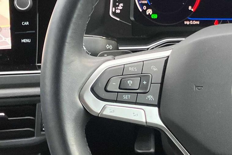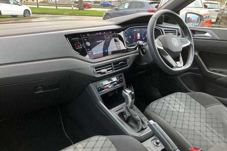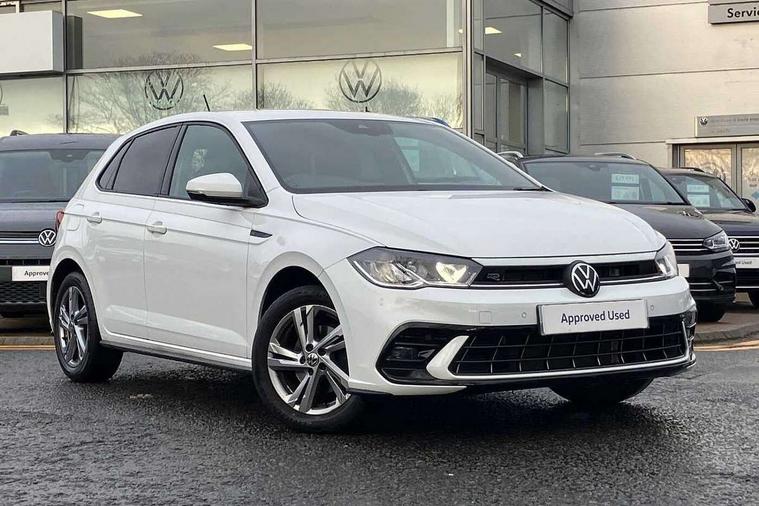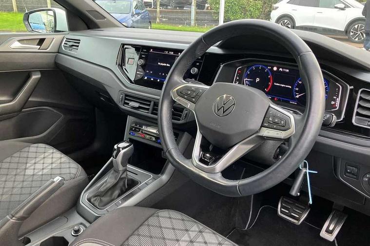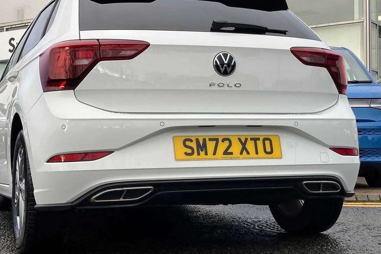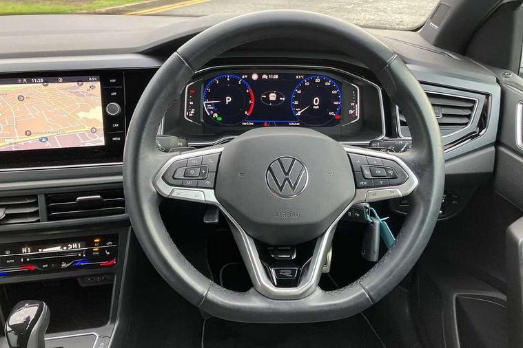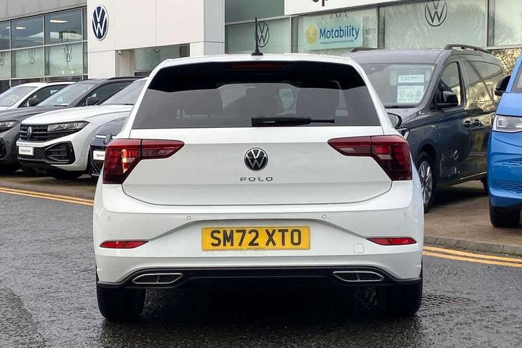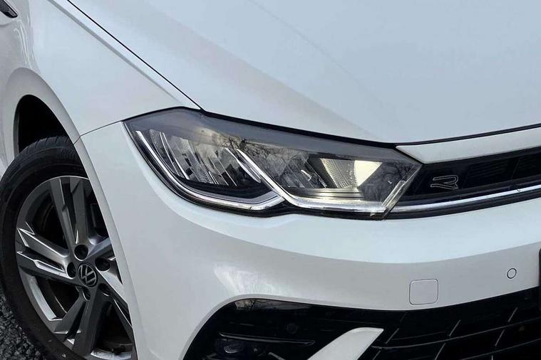 Adaptive cruise control with follow-to-stop and speed limiter, Bluetooth mobile phone interface, Digital Cockpit Pro with 10.25" Display, Driver alert system, Dynamic road sign display, Emergency call service, Power assisted speed sensitive steering, Preparation for We connect and We connect plus, Speedo and rev counter, electronic odometer, trip, service interval display and fuel gauge, Standard rear axle, Travel Assist - Lane keeping system and traffic jam assist, Travel assist including emergency assist, Trip computer, Warning signal and warning light for front and rear seatbelts not fastened, Washer fluid level indicator, Wireless app connect, Front wheel drive, Rear shock absorpion, Start-stop system with battery regeneration (recuperation - energy recovery during braking), DAB Digital radio, Diversity antenna for FM reception, Front and rear 6 speakers, Body colour bumpers, Body colour door handles, Electric front windows, Front scuff plates with R-Line logo, Heat insulating darkened glass in side and rear windows, Heat insulating glass windscreen, Power folding adjustable/heated exterior mirrors and front passenger exterior mirror lowering function, Rear electric windows, Rear fog light, Rear side wing doors, Rear windscreen washer and wiper with interval delay, Third brake light, 12V power socket in centre console, 2 USB-C ports in the front, 2 USB-C charging sockets on the center console in the rear, 3 rear head restraints, 60/40 split folding rear seat and rear seat bench not split, Air care climatronic air conditoning system with active combination filter and 2-zone temperature control, Black roof lining, Chrome plated radiator grille inserts, air vent surrounds and light switch surrounds, Door and side trim panel, Driver and front passenger seat height adjustment, Driver/passenger sunvisors with illuminated vanity mirrors, Front + rear carpet mats in recycled material, Front centre armrest, Front footwell illumination, Front seat backrest storage pockets, Front sports comfort seats, Handbrake lever handle in leather, Headliner in recycled material, Isofix child seat preparation easy-fit (for two outer rear seats, and front passenger seat) compatible with I-size, Karoso artvelours cloth upholstery, Leather trimmed gear knob, LED interior light with switch off delay and dimmer, 2 reading lights front and rear, Luggage compartment cover, Luggage compartment floor, Luggage compartment lighting, Lumbar adjustment for front seats, Single front passenger seat, Stainless steel pedals, Standard pedal cluster, Three spoke leather wrapped multifunction steering wheel with shifting paddles, Light and sight pack - Polo R-Line/Black Edition, 3 point height adj front seatbelts + pretensioners, 3x3 point rear seatbelts, ABS, Driver and front passenger airbag with front passenger airbag deactivation, Drivers and front passengers safety optimised head restraints, ESC (Electronic stability control) + EDL (Electronic Differntial lock) and ASR (Traction control), Extended and predictive pedestrian/ cyclist protection, Front curtain and side airbags with center airbag, Front/rear disc brakes, Hill hold control, Manual child lock in rear doors, Single tone horn, Tyre pressure loss indicator, Alarm with interior protection, Anti-theft alarm system with interior monitoring, backup horn, and towing protection, Anti-theft wheel bolts, Electronic engine immobiliser, Chrome applications on rotary light, mirror adjustment, window regulator switches, outlet with frame in black, Dark grey anodised matt decorative inserts in dash and front door panels, Low rolling resistance tyres,