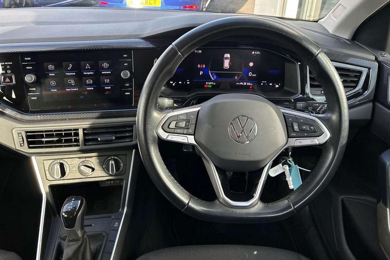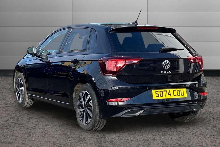 Advanced driver attention and drowsiness monitor, Bluetooth mobile phone interface, Dynamic road sign display, Emergency call service, Multifunction front facing camera for distance control, Park distance control, Power assisted speed sensitive steering, Predictive adaptive cruise control without follow-to-stop and speed limiter, Preparation for navigation system with media and internet package, Preparation for We connect and We connect plus, Rear view camera, Speedo and rev counter, electronic odometer, trip, service interval display and exterior temperature gauge, Standard rear axle, Travel Assist - Lane keeping system and traffic jam assist, Travel assist including emergency assist, Trip computer, Warning signal and warning light for front and rear seatbelts not fastened, Washer fluid level indicator, Wireless app connect, Front wheel drive, Rear shock absorpion, Start-stop system with battery regeneration (recuperation - energy recovery during braking), DAB Digital radio, Diversity antenna for FM reception, Front and rear 6 speakers, Automatic dimming interior rear view mirror, Automatic headlight control with LED separate daytime running lights with coming/leaving home function, Body colour bumpers with chrome inserts, Body colour door handles, Body colour door mirrors, Electric front windows, Engine badge deletion, Headlight range adjustment, Heat insulating and laminated safety glass windshield, LED Headlights, LED rear combination lamps, Power folding adjustable/heated exterior mirrors and front passenger exterior mirror lowering function, Rain sensor, Rear electric windows, Rear fog light, Rear side wing doors, Rear tinted glass from B-pillar backwards approx 65% tinted, Rear windscreen washer and wiper with interval delay, Third brake light, 12V power socket in centre console, 2 front and 2 rear reading lights with switch off delay and dimmer, 2 USB-C ports in the front, 2 USB-C charging sockets on the center console in the rear, 3 rear head restraints, 60/40 split folding rear seat and rear seat bench not split, Ceramique roof lining, Chrome plated radiator grille inserts, air vent surrounds and light switch surrounds, Door and side trim panel, Driver and front passenger seat height adjustment, Driver/passenger sunvisors with illuminated vanity mirrors, Front centre armrest, Front seat backrest storage pockets, Front standard seats, Handbrake lever handle in leather, Hartley/Thomas cloth upholstery, Headliner in recycled material, Isofix child seat preparation easy-fit (for two outer rear seats, and front passenger seat) compatible with I-size, Leather trimmed gear knob, Luggage compartment cover, Luggage compartment lighting, Removable luggage compartment floor, Single front passenger seat, Standard climatic zones, Standard pedal cluster, Three spoke leather wrapped multifunction steering wheel with shifting paddles, Light and vision pack - Polo, 3 point height adj front seatbelts + pretensioners, 3 point seat belt for centre rear seat, 3 point seatbelts, outer rear with ECE lable, ABS, Driver and front passenger airbag with front passenger airbag deactivation, Drivers and front passengers safety optimised head restraints, ESC (Electronic stability control) + EDL (Electronic Differntial lock) and ASR (Traction control), Extended and predictive pedestrian/ cyclist protection, Front assist with autonomous emergency braking (for Adaptive Cruise Control ACC up to 130 mph), Front curtain and side airbags with center airbag, Front disc brakes, Hill hold control, Manual child lock in rear doors, Rear drum brakes, Single tone horn, Tyre pressure loss indicator, Alarm with interior protection, Anti-theft alarm system with interior monitoring, backup horn, and towing protection, Anti-theft wheel bolts, Electronic engine immobiliser, Lava stone black gloss/matt decorative inserts in dash and front door panels, 16" Torsby alloy wheels, Low rolling resistance tyres,
