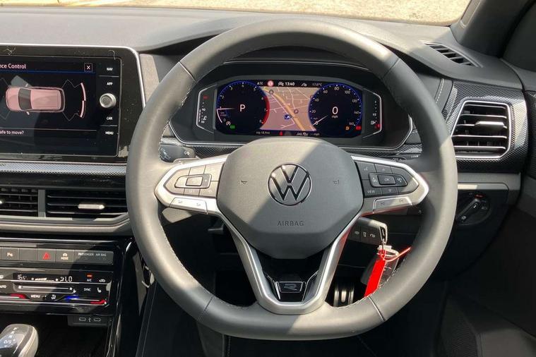 'Lights On' Reminder warning buzzer, 10.25" Digital cockpit pro, Advanced driver attention and drowsiness monitor, Car information display, Driver profile selection including ECO function, Dynamic road sign display, E-Sim card for online connectivity, eCall emergency call system, Front and rear parking sensors, Front assist, forward collision warning, autonomous emergency braking and speed limiter, Low washer fluid warning light, Mobile phone interface with inductive charging, Multifunction computer with visual gear change recommendation for fuel consumption, Multifunction front facing camera for distance control, Operating permit alteration, Power assisted steering, Predictive adaptive cruise control, Preparation for navigation system with media and internet package, Preparation for We connect and We connect plus, Semi-automated driving assistance, travel assist including lane keeping system Lane Assist and emergency assisst, Side assist, Speedo, rev counter, electronic odometer, trip, service interval display, exterior temperature and fuel gauge, Warning sound and light for doors and tailgate open, Warning sound and light for front seatbelts unfastened, Wireless Car net app connect with Apple CarPlay, combined functionality of Apple CarPlay/Android Auto and MirrorLink, Wireless charging, Misfuel prevention device, Start-stop system with battery regeneration (recuperation - energy recovery during braking), 2 USB C ports in front, 2 USB charging sockets on the centre console in the rear charging capacity upto 45W, Diversity antenna for FM reception, Music playback - MP3, WMA and AAC files, Radio, Advanced high beam control dynamic light assist, Automatic dimming interior rear view mirror, Automatic hazard lights activation under emergency braking, Automatic headlight control and coming home and leaving home feature, Black roof rails, Body colour door handles, Body coloured bumpers, Cornering light and poor weather light, Dynamic headlight range control, Electric folding door mirror, adjustable, heated with front passenger exterior mirror lowering function, Exterior mirror housings in black, Exterior mirrors convex on the left and aspherical on the right, Front and rear electric windows, Front door sill protectors with R-Line logo, Galvanised body, Heat insulating and laminated safety glass windshield, Heat insulating darkened glass in side and rear windows, Illuminated molding between headlamps, IQ.Light LED matrix headlamps with LED separate daytime running light, LED rear tail lights with dynamic turn signal, LED third brake light, Lower door sills and door pillars in black, Privacy glass for rear side windows and rear window, Rain sensor, Rear fog light on one side, reversing light on both sides, Rear side wing doors, Rear window aerial, Rear window wiper with intermittent control, Reflectors in all doors, Scuff plates, Tailgate with integrated roof spoiler, 12V Accessory socket in centre console, 2 Front and rear reading lights incorporating LED technology, 3 rear head restraints, 3 seat bench in 2nd row, 60/40 split folding rear seat backrest, Air care climatronic 2 zone air conditioning system, Ambient lighting and logo projection, Brushed stainless steel pedals, Chrome plated radiator grille inserts, air vent surrounds and light switch surrounds, Cloth upholstery, Comfort front sport seats, Door and side trim panel, Driver and front passenger sunvisor with vanity mirror, Dust and pollen filter, Front + rear carpet mats, Front centre armrest, Front centre armrest with storage compartment, Front footwell illumination, Front seat back storage pockets, Glove compartment door with light, Heated front seats, Heating and fresh air system with 4 stage blower, Height/reach adjust steering wheel, Instrument lighting white adjustable panel illumination, Interior light with switch off delay and dimmer, Isofix anchors for child seats on outer rear seats and front passenger seats, Leather gearshift handle, Leather wrapped multifunction steering wheel with paddle shift, Luggage compartment floor, Luggage compartment lighting, Manual front seats with height adjustment, Padded dashboard, Removable luggage compartment cover, Single front passenger seat, Storage compartment in drivers and front passengers door, Titanium black roof lining, Unsplit sliding rear seat bench, Without drawers under front seats, 3 point outer rear seat belts with ECE label, 3 Point seatbelt for centre rear seat, Anti-lock Braking System (ABS) with Hydraulic Brake Assist (HBA), Automatic post collision braking system, Disc brakes in front, Disc brakes in rear, Driver and front passenger safety-optimised head restraints, Drivers and Front Passengers airbags with front passengers airbag deactivation switch, ESC with EDL and ASR (traction control), Extended and predictive pedestrian/cyclist protection, Front and rear passenger curtain airbag system including front side airbags, Height adjustable front 3 point seatbelts + pretensioners, Hill start assist, Pre crash preventive occupant protection, Proactive passenger protection system in combination with front assist, Rear door child safety locks, Rigid safety cell with front and rear crumple zones, Single tone horn, Tyre pressure loss indicator, Volkswagen roadside assistance, Alarm with interior protection, Anti theft alarm system, Anti theft wheel bolts, Electronic engine immobiliser, Remote tailgate unlocking using key fob, Black decorative trims, Titanium Black Decorative inserts - R Line, 18" York alloy wheels in black, Low rolling resistance tyres,