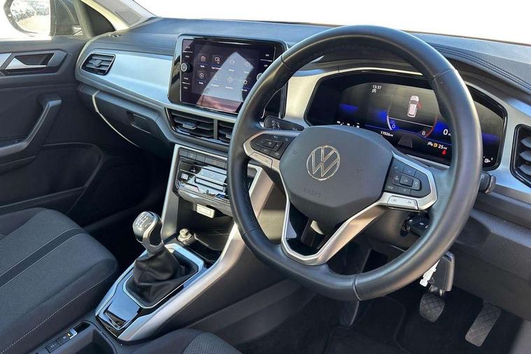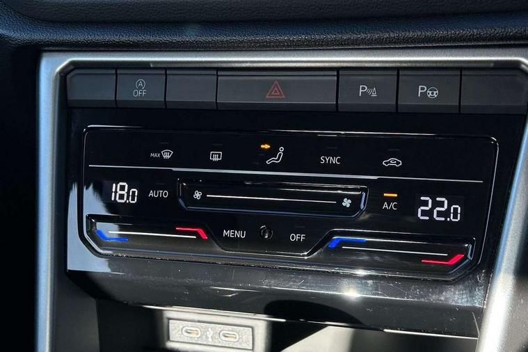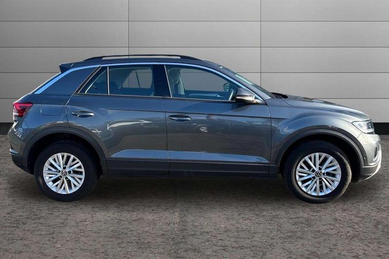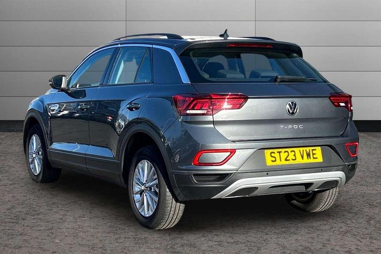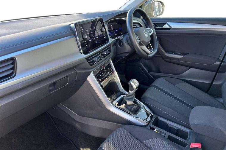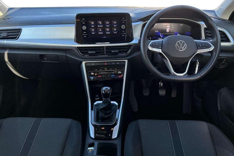 Bluetooth mobile phone interface, Driver alert system with fatigue detection, Driver tips and journey analysis, Emergency call service, Lane keeping system Lane Assist, Modified key software - reduce switch off time for key status change to Long no motion, Online services, Park assist including front and rear parking sensors, Power assisted speed sensitive steering, Service interval indicator, Tailgate/trunk lid release from outside, Think blue trainer driver tips and journey analysis, Warning sound and light for front seatbelts unfastened, Wireless app connect, Battery regeneration during braking, Front shock absorption, Rear shock absorption chassis with increased ride height, Start/stop function with battery regeneration, DAB Digital radio, Diversity antenna for FM reception, Music playback - MP3, WMA and AAC files, Premium USB cable in choice of either Apple or Android smartphone compatibility, SD card slot, Simultaneous pairing of 2 compatible mobile devices, Title and cover art display, We Connect and We Connect Plus functionality, 3rd brake light, Auto dimming interior rear view mirror, Automatic hazard lights activation under emergency braking, Automatic headlight control with LED separate daytime running lights with coming/leaving home function, Black roof rails, Body coloured bumpers and radiator grille with chrome trim and front fog lamps with chrome bezel, Body coloured exterior mirror housings and door handles, Extended roof spoiler, Exterior mirrors aspherical on driver side, convex on front passenger side, External USB type C socket and charging sockets, Front windscreen wiper with intermittent wipe and 4 position delay, Heated rear window, LED rear combination lamps, LED rear number plate lights, LED tail lamp rear comination lamps, Power windows with comfort operation and circuit breaker, Rain sensor, Rear exhaust tailpipe, Rear fog light on one side and reversing lights on both sides, Rear side wing doors, Rear wash/wipe with intermittent wipe setting, Remote electrically foldable door mirrors, puddle lights and reverse activated passenger's door mirror, 12V power socket in centre console, 3 rear head restraints, 3 seat bench in 2nd row, 4 load lashing points in luggage compartment, Air care climatronic air conditoning system with active combination filter and 2-zone temperature control, Ambient lighting with mirror logo projection, Cloth upholstery, Door and side trim panel in cloth, Drawer under drivers seat, Driver/front passenger seat height adjustment, Front centre armrest, Front comfort sports seats, Front cupholders x 2, Front reading light, Instrument lighting, white adjustable panel illumination, Interior light delay, Isofix child seat preparation, Leather gearshift handle, Load-through provision with cup holder when folded down ('Unsplit rear seat bench, split folding backrest, with centre armrest), Luggage compartment lighting, Lumbar support for driver's and front passengers seat, Non-folding front passenger seat backrest, Single front passenger seat, Storage compartment in left and right luggage area, Storage compartment in rear doors, Storage compartments in driver and front passenger doors, Sunvisors with illuminated vanity mirrors, Variable boot floor, height adjustable and removable, Driver assistance pack without proactive passenger protection - T-Roc, 3 point height adj front seatbelts + pretensioners, 3 point seatbelts in outer rear with ECE label, ABS, Child locks on rear doors, Driver and front passenger airbag with front passenger airbag deactivation, Driver and front passenger safety-optimised head restraints, Drivers seatbelt reminder, Electronic parking brake, Electronic Stability Control (ESC) inc EDL (Electronic Differential Lock) and ASR (Traction Control), Front and rear passengers curtain airbag system including front side airbags, Front assist with city emergency braking and pedestrian monitoring, Front disc brakes, Front seat side impact airbags, Hill start assist, Predictive pedestrian protection, Rear disc brakes, Single tone horn, Tyre pressure loss indicator, Volkswagen roadside assistance, Alarm with interior protection, Anti-theft alarm system with interior monitoring, backup horn, and towing protection, Remote central locking with SAFELOCK, radio remote control with 2 remote control folding keys, Pewter matt decorative inserts for intrument panel, centre console and door panels at the front, Trims for alloy wheels,