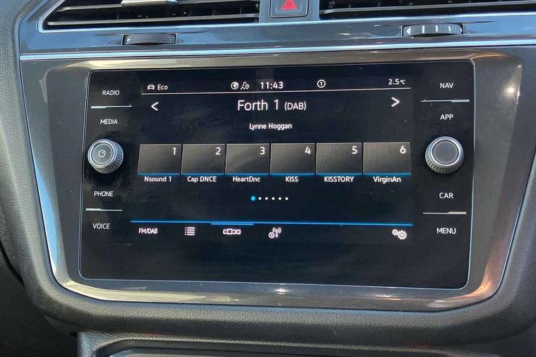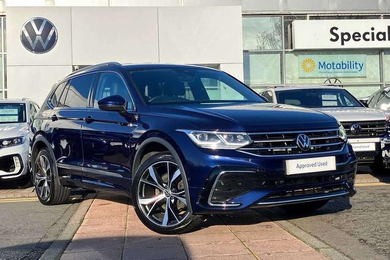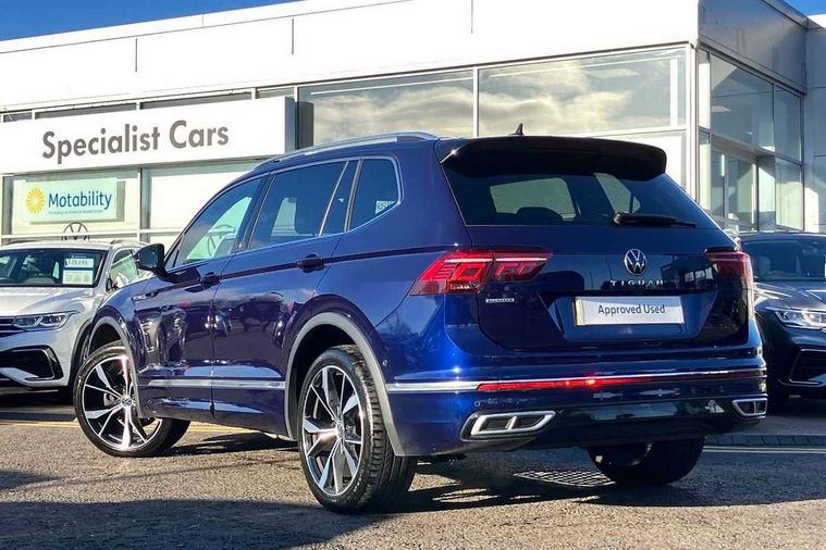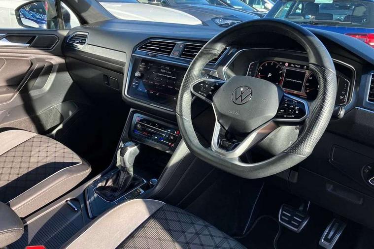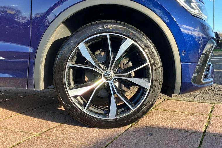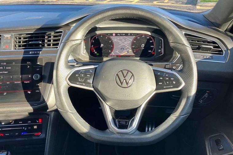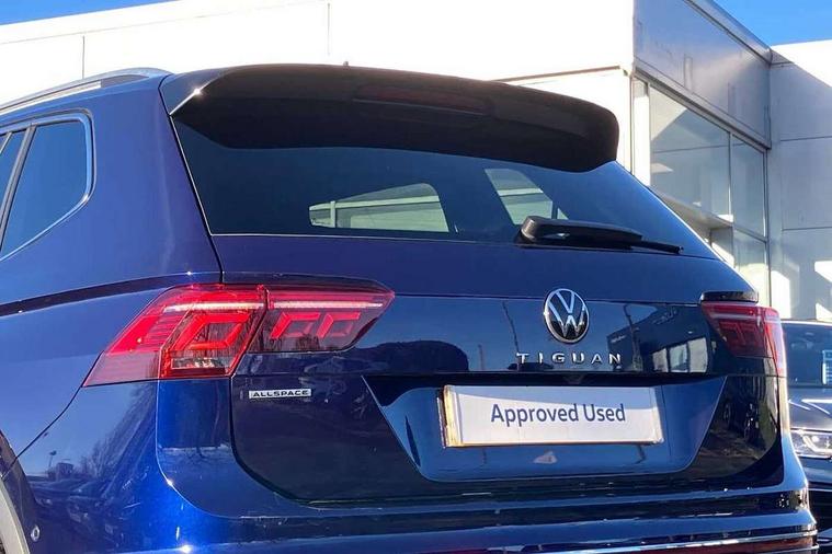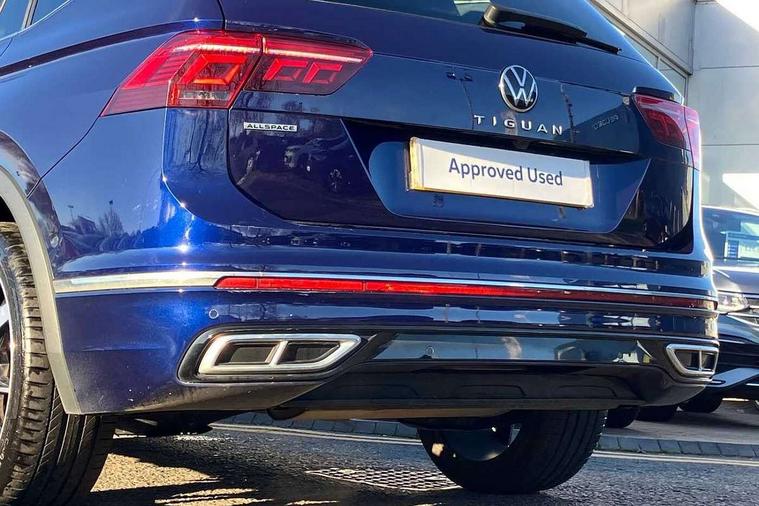 Adaptive cruise control, App-Connect, Digital cockpit pro, Driver alert system, Driver profile selection, Dynamic road sign display, eCall emergency call service, Electric boot lid, Lane change system side assist and rear traffic alert, Lane keeping system Lane Assist, Mobile phone interface comfort with inductive charging feature, Multifunction front facing camera, Progressive steering, Speedo and rev counter, electronic odometer, trip, service interval display and exterior temperature gauge, Front wheel drive, Start-stop system with battery regeneration (recuperation - energy recovery during braking), 2 USB-C ports in the front, 1 USB-C charging socket on the center console in the rear, 8 Speakers, DAB Digital radio, Diversity antenna for FM reception, Radio, Auto dimming interior rear view mirror, Automatic headlight control system, Chrome mouldings on side window, Coming/leaving home lighting function, Dark red rear combination lamps in LED technology, Exterior badge deletion, Exterior mirror housings painted in silver, Headlight range control, Heated windscreen washer jets, LED headlamps with LED separate signature running light and dynamic cornering light, Poor weather light and cornering light, Rain sensor, Rear fog light, Rear side wing doors, Rear spoiler in R style, Rear wiper, Silver roof rails, Third brake light, 12-volt outlet in centre console rear and luggage compartment, 12V socket in centre console, 3 head restraints in rear, 3 individual folding 2nd row seats, 3rd row 2 individual seats, Air Care Climatronic 3 zone automatic climate control with enhanced air filter and controls in the rear, Black roof lining, Door and side trim panel with leatherette insert, Drawers under front seats, Driver and front passenger seat height adjustment, Foldable front passenger seat backrest, Front + rear carpet mats, Front centre armrest, Front footwell illumination, Heated front seats, Heated leather wrapped multifunction sports steering wheel with touch control and shift paddles, Illuminated scuff plates, ISOFIX anchorage points for mounting 2 child seats on rear seats and i-Size child seats, Leather gearshift handle, LED interior light with switch off delay/dimmer and 2 front/rear LED reading lights, Stainless steel pedals, Sun visors with illuminated vanity mirrors, Ambience pack - Tiguan Allspace R Line, Driver assistance plus package - Tiguan Allspace, 3 point seat belt for centre rear seat, 3 rear three point seatbelts, ABS+EBD+Brake assist, Driver and front passenger safety-optimised head restraints, Driver's and front passenger's airbag with front passenger's airbag deactivation switch, Electronic parking brake, Electronic Stability Control (ESC) inc EDL (Electronic Differential Lock) and ASR (Traction Control), Height adjustable front 3 point seatbelts + pretensioners, Manual rear child locks, Pedestrian monitoring, PreCrash preventive occupant protection Front and rear, Rear disc brakes, Side airbag in front and rear with curtain airbag, Two tone horn, Warning buzzer for seatbelts if unfastened, Anti theft alarm system with interior monitoring, backup horn and towing protection, Anti-theft wheel bolts, Electronic steering lock, Remote central locking with 2 remote folding keys,
