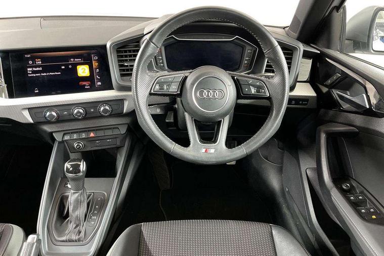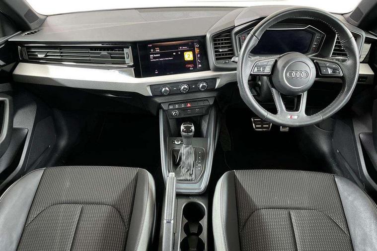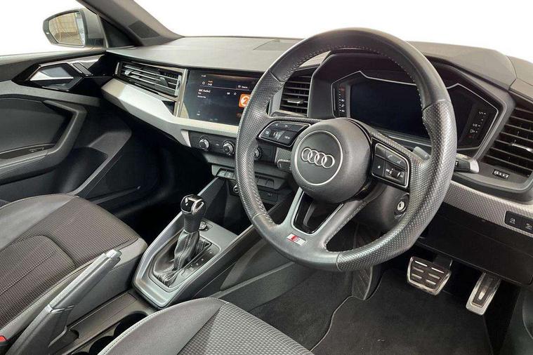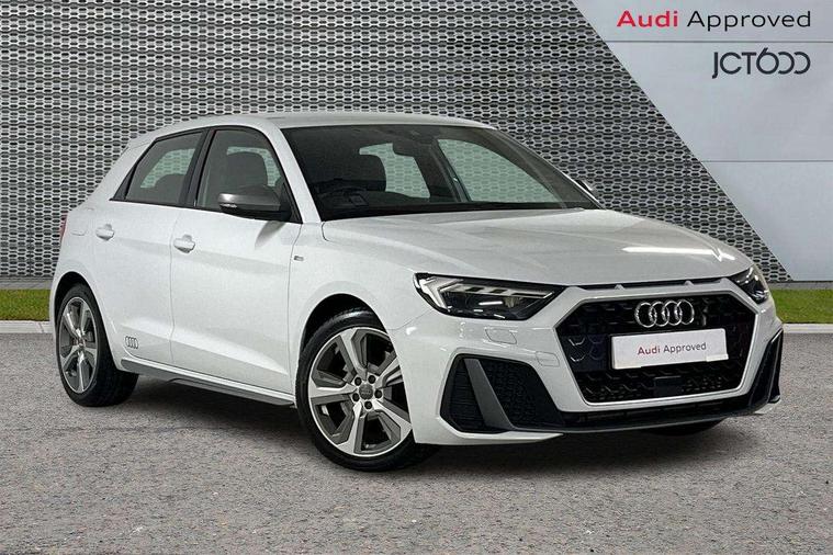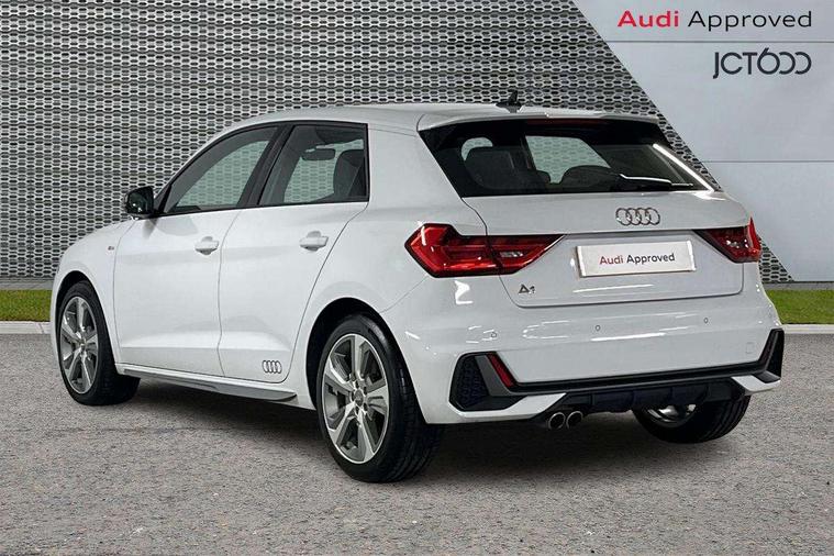 10.25" Digital instrument cluster display classis style instrument dials + speed, odometer, time, outside temperature, telephone menu + fuel level warning, Audi connect safety emergency and service including E-call, Audi drive select - power steering assistance + engine + gear shift 3 preset modes (auto, dynamic, efficiency and an Individual mode), Audi smartphone interface with connect compatible smartphone via USB directly MMI display + Nav, music, third party apps controlled via MMI controller, Automatic start/stop system, Bluetooth interface, Cruise control, Driver's information system, Electromechanical power steering, Lane departure warning system, Rear parking sensor, Service interval indicator, Speed limiter, Voice control system, Washer fluid level indicator, Sports suspension with adjustable dampers, 1 x SDXC card reader, 1 x USB type C and 1 USB type A charging points, DAB Digital radio, MMI radio plus with 8.8" colour MMI display screen and MMI touch, Audi rings logo foil in platinum grey, Auto dimming rear view mirror, Deletion of engine technology designation at rear, Door mirrors in platinum grey, Door sills with aluminium inlays and S Line logo, Electric front and rear windows, Electrically adjustable, heated, folding door mirrors with integrated LED side indicator, Front side air inlets in grained matt black and C frame in titanium black, Heat insulating glass windscreen and side windows, Heated rear windscreen, LED headlights with LED rear lights + dynamic rear indicators + headlight adjustment and high beam, turning light + LED daytime running lights, Radiator grille and rear diffuser in matt titanium black, Radiator protective grille frame in matt aluminium silver, Rain and light sensors, Rear fog lights, Rear wiper, S line badges on front wings, Side front spoiler lips in grained matt black, Visible tailpipes, 12V socket in centre console with two cup holders, 3 rear seats with headrests, 40:60 Split folding rear seat or folded fully, Black cloth headlining, Driver and passenger seat with manual height adjust with forward and backwards adjustment, Front and rear black floor mats with contrast stitching in fine silver, Front head restraints, Height and reach adjustable steering wheel, ISOFIX child seat mounting for front passenger and outer rear seats including top tether attachment point of outer rear seats, Leather gear knob with aluminium trim, Luggage compartment light with front and rear reading lights, Manually adjustable lumbar support in front seats, Stainless steel pedals, LED interior lighting pack - A1, Luggage compartment pack - A1, S line exterior styling pack - A1 Sportback, 3x3 point rear seatbelts, Audi pre-sense front with pedestrain and cyclist recognition, Brake assist function, Driver and front passenger airbag with front side and head airbags, Electronic Stability Control including ABS, EBD, ASR and EDL, Front and rear seatbelt reminder, Front passenger airbag deactivation switch, Hill hold assist, Red brake calipers, Seatbelt height adjustment for front seats, Seatbelt monitoring, Tyre pressure warning light, Warning triangle and first aid kit, Anti theft alarm, Anti theft wheel bolts and loose wheel warning, Immobiliser, Remote central locking with 2 foldaway keys, Aluminium trim for control switches, air vents and digital instrument cluster, Silver grey inlays polygon structure in diamond paint finish, Structured grey accent areas including air vents, door handle recesses and centre console in quartz paint finish,
