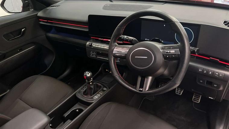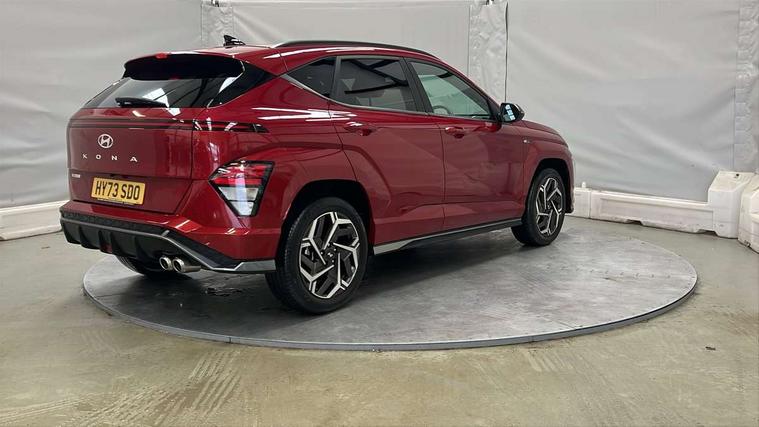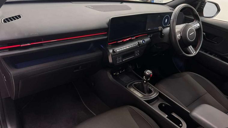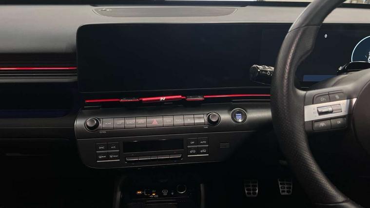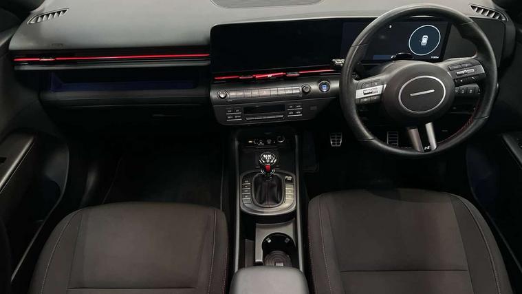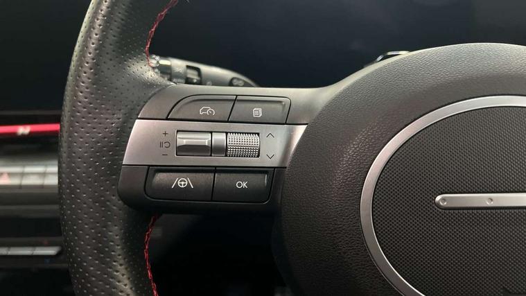 10.25" touchscreen centre console display satellite navigation with live services and mapcare, Bluetooth connectivity with voice recognition, Cruise control, Digital clock, Driver attention warning, Driver supervision instrument cluster with 12.3" LCD display, eCall emergency call system, Forward collision avoidance assist (FCA 1.5) - Car, pededstrian, cycle and junction turning, Front parking sensor, Head up Display, Intelligent speed limit assist, Lane follow assist, Lane keep assist, Leading vehicle departure alert (LVDA), Parking system with rear camera and guidance system, PAS, Rear parking sensor, Roadside assistance, Smartphone integration compatible with Apple CarPlay and Android Auto, Windscreen washer fluid sensor and warning indicator, Wireless phone charging pad, 2 front USB C and 2 rear USB C charging points, DAB Digital radio, Speakers - Front, rear and tweeters, Steering wheel audio, phone and cruise controls, Auto dimming rear view mirror, Automatic headlights with dusk sensor, Automatic windscreen wipers with rain sensor, Body colour bumpers, Body colour exterior door handles, Body coloured wheel arch inserts, Door mirror LED indicator lights, Electric front windows with anti-trap mechanism and one touch control, Electric rear windows, Electrically adjustable and heated door mirrors, Full LED MFR headlights, Gloss black door mirrors, LED daytime running lights, LED rear lights, Power folding door mirrors, Privacy glass - Rear windows and tailgate, Rear roof spoiler with integrated LED brake light, Rear side wing doors, Rear wiper, Roof rails, Solar glass with front door glass and windscreen, Tinted glass in front and rear doors, Windscreen auto defog function, 12V power outlet in front console, 2 zone climate control, 3 seat bench in 2nd row, 40/20/40 split folding rear seat, Adjustable head restraints, Aluminium pedals, Ambient lighting, Cloth upholstery, Driver and passenger front seat pockets, Driver's seat electric lumbar support, Driver's seat height adjustment, Driver/passenger sunvisors and illuminated vanity mirrors, Front passenger seat manual adjustments, Heated front seats, Heated rear seats, Heated steering wheel, Height/reach adjustable steering column, Isofix rear child seat fastenings, Leather wrapped steering wheel and gear knob, LED centre interior light, LED front interior light, Luggage compartment LED lighting, Metal paint effect interior door handles, Parcel shelf, Rear centre armrest, Rear centre console with air vents, Single front passenger seat, Vertical adjustment rear head restraints, N Line exterior design pack - Kona, Trailer wiring package - Kona, Airbag - front, front side, curtain and centre front airbag, Anti-lock brake system (ABS), Childproof rear door locks, Downhill brake control, EBD + Brake Assist, Electric parking brake, Electronic stability control, Fasten seatbelt reminder, Fixed 3 point for second row centre passenger seatbelt, Front seatbelt pretensioners, Height adjustable front seatbelts, Hill start assist control (HAC), Passenger airbag deactivate switch, Rear seat alert, Traction control, Tyre pressure monitoring system, Alarm/immobiliser, Deadlocks, Folding key, Locking wheel nuts, Remote central locking, Smart key with keyless entry and engine start/stop button, Temporary mobility kit (TMK),