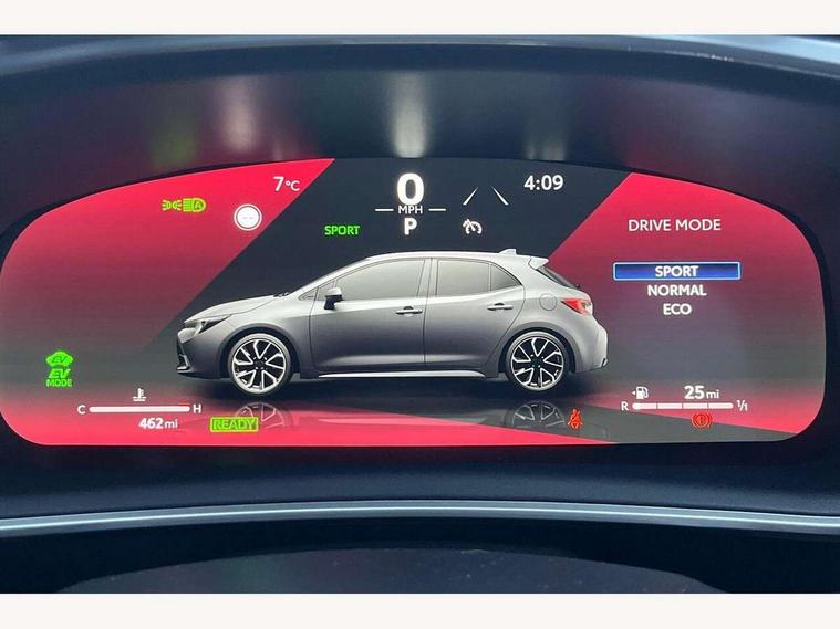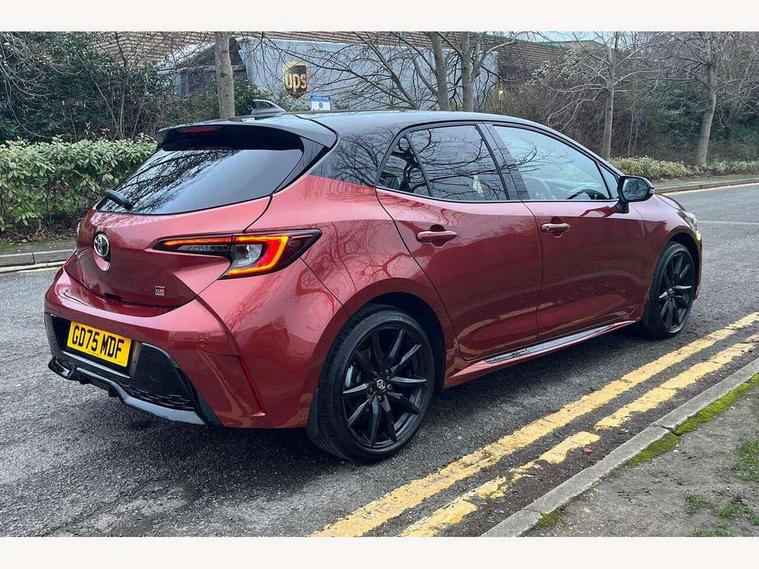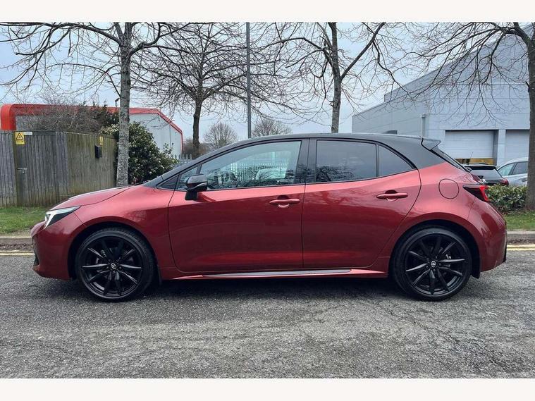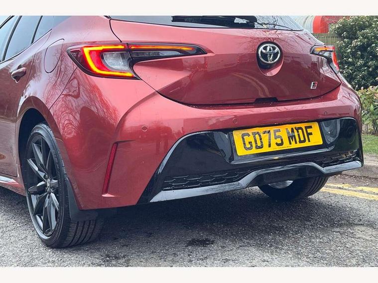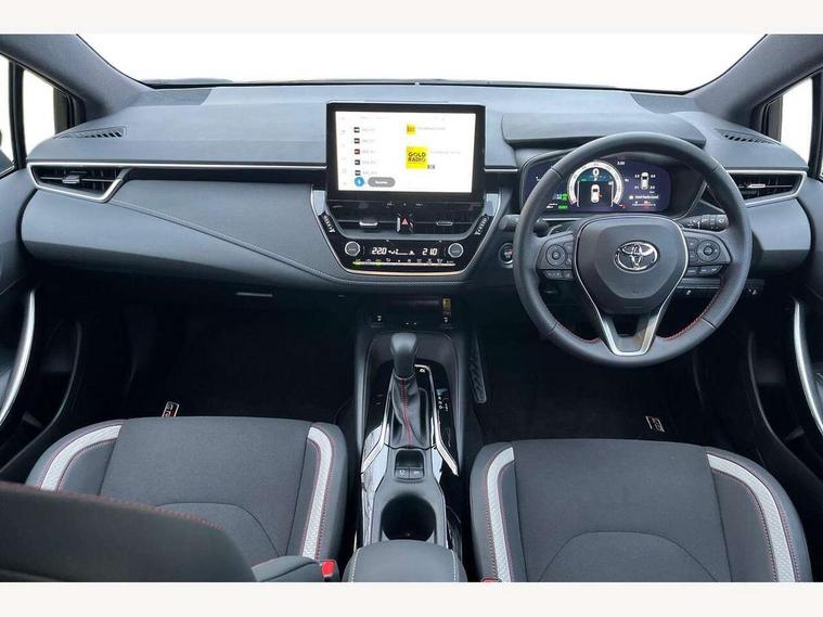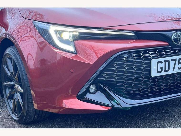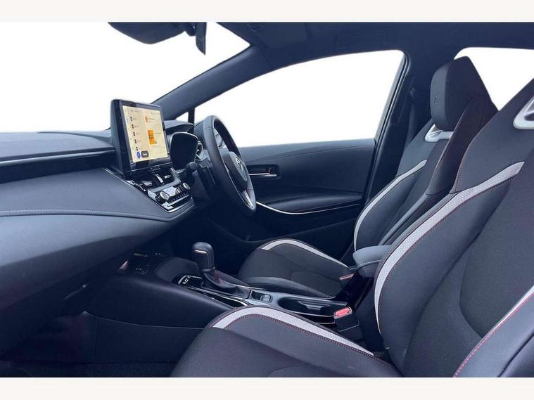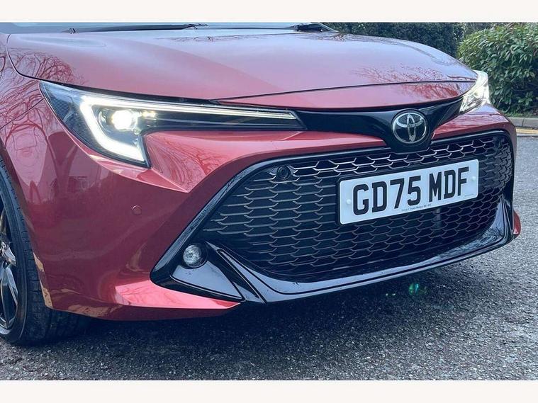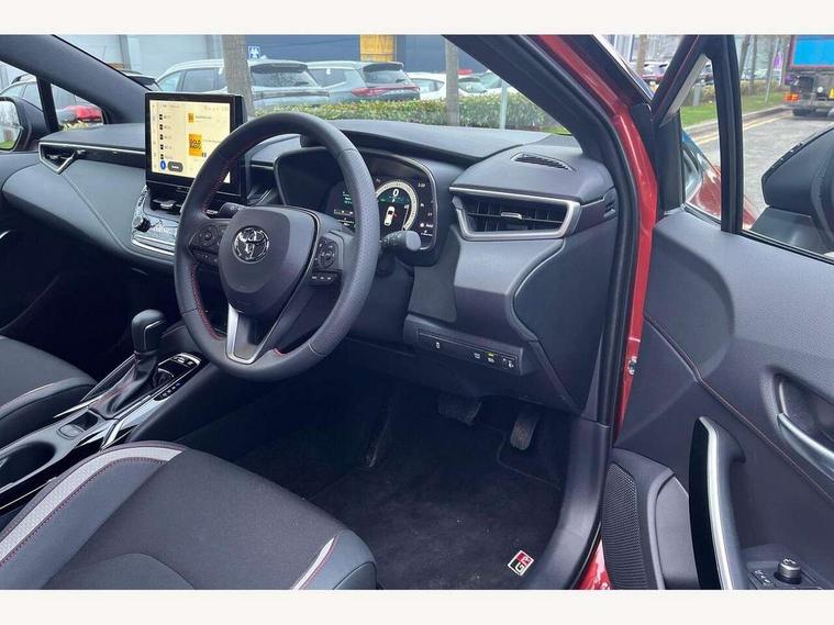 10.5" Multimedia display screen, Bluetooth telephone connectivity, Connected car functionality upgrade, tracker, remote status and e-care, Drive mode select (Eco, Normal), E-call, Electrically assisted power steering, EV drive indicator, Front and rear parking sensors, Full Digital 12.3" TFT Digital Combimeter, Intelligent clearance sonar, Key reminder warning, Lane Departure Alert (LDA) switch on steering wheel, Memory on adjustable speed limiter, MyT connected services, Proactive driving assist (PDA), Reversing camera, Smart entry and push button start with GR Logo, Smartphone integration with Apple CarPlay and wired android auto, Tailgate, Toyota remote services, Toyota smart connect navigation, Wireless charger, Gasoline particulate filter, Vehicle Stability Control (VSC), 6 speakers, AM/FM radio, DAB Digital radio, Front USB-C in centre console, Front USB-C in dashboard, Smart voice assist/ Voice recognition, USB and Aux in connectors + 12V front outlet, Anti-jam protection on power windows, Auto up and down function on all power windows, Automatic folding mirrors, Automatic headlights with high beam assist, Black centre and side air vents, Black toyota logo in front, Body coloured bumpers, Body coloured door mirrors, Body coloured outside door handles, Dark chrome lower grille, Electrochromatic mirror, Follow me home headlights, GR Sport dark chrome front mesh grille and black rear grille, GR Sport exclusive under guard, GR sport scuff plates, LED daytime running lights, LED dual beam projector headlights, LED front fog lights, LED High mounted stop light, LED rear combi lights with LED lightguide, Manual headlight levelling system, New grille pattern, Noise reduction layer on windscreen, Piano black diffuser, Power adjustable heated door mirrors, Power front windows, Power rear windows, Privacy glass with UV filter, Rain sensing wipers, Rear side wing doors, Rear window defogger, Rear window wiper, Reverse tilting door mirrors, Rocker and door lower moulding, Roof spoiler, Satin chrome insert on front air vents, Satin chrome insert on front door assist grips, Satin silver front spoiler, Shark fin antenna, Tailgate release with push button, Time adjustment on intermittent wiper, Turning signal integrated indicators in door mirrors, Unique lower skirt, Unique side rocker with black insert, UV-filter on driver and passenger windows, 2 Shopping bag hooks in luggage compartment, 3 rear headrests, 3 seat bench in 2nd row, 3 spoke steering wheel with satin insert and red stitching, 4 tie down hooks in luggage compartment, 60/40 split folding rear seat, Adaptive cruise control (ACC) switch on steering wheel, Adjustable speed limiter switch on steering wheel, Audio, multimedia and telephone switches on steering wheel, Black armrest on centre console box, Black gear shift console, Boot light, Boot underfloor storage, Centre room light, Driver and front passenger personal light, Driver and passenger assist grip, Driver and passenger seatback pockets, Driver and passenger sun visor with mirror and light, Dual zone automatic air conditioning with ECO mode switch, Electric lumbar support for passenger, Fabric/synthetic leather upholstery, Front and rear cup and bottle holders, Front door pockets, Front head restraints, Front passenger seat, Front sliding synthetic leather armrest, Gear knob, GR Sports seats with partial leather bolsters, Heated front seats, Illuminated entry system in room lamp, ISOFIX seat fixing (2 fixings on rear outer seats), Manual height adjustable for driver and front passenger seat, Manually tilt with sliding driver and front passenger seat, Nanoe-X air purifier, Paddle shifts, Parcel shelf, Pollen filter, Power adjustable lumbar support on driver seat, Power window switches with satin chrome inserts, Rear armrest with 2 cupholders, Rear passenger coat hooks (2), Red stitching on gear shift, Remote air conditioning, Satin chrome inside door handles, Satin chrome surround on speedometer, Sliding armrest on centre console box, Slow opening glovebox with lights, Textile floor mats, Tilt/telescopic steering column, Voice recognition switch on steering wheel, Whiplash Injury Lessening (WIL) feature (active headrest) for seats, White ambient lighting on open tray and front cup holder, Toyota safety sense 3 pack - Corolla, 3x3 point rear seatbelts, Adjustable driver and front passenger seat belt extender to top anchor point, Anti lock braking system + Electronic brake force distribution, Brake assist function, Child locks on rear doors, Downhill Assist Control (DAC), Electronic parking brake, Emergency brake light signal (EBS), Front passenger airbag on/off switch, Front seatbelt reminder, HAC - Hill start assist control, Rear seat belt reminder, Seatbelt pretensioners and force limiters, Supplemental restraint system (SRS) 7 airbags - dual driver, dual side curtain, side impact and driver knee airbags, Traction control, Tyre pressure warning system, Acoustic vehicle alert system (AVAS), Alarm with motion sensor and immobilizer, Power passenger window lock, Remote central locking + deadlocks, GR Sport interior and exterior styling, Satin chrome dash trim, Soft touch texture on upper dashboard, Stitching on lower dashboard, 18" 10 spoke black machined face alloy wheels, Tyre repair kit, Unique wheel finish with red wheel cap,