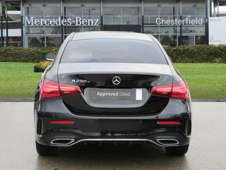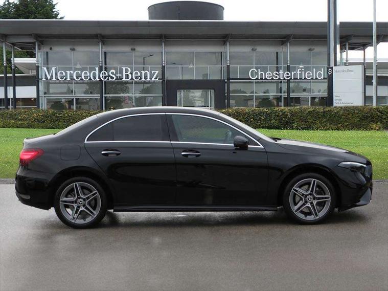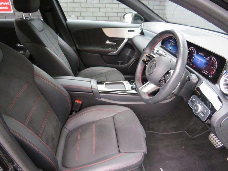 10.25 inch touchscreen central media display, 10.25" Digital instrument cluster display screen, Acoustic ambient protection, Attention assist, Brake pad wear indicator warning light, Car wash mode, Cruise control + speed limiter, Direct steering, Direction indicators with lane change function, Dual bluetooth interfaces, DYNAMIC SELECT with a choice of driving modes (ECO, Comfort, Sport and Individual), ECO start/stop function, Engine start/stop button, Fluid level warning indicator for fuel, oil, coolant and washer fluid, Fluorescent jacket for driver, Hard-disk navigation, Hey Mercedes Voice activation, Lamp failure indicator, Lane keeping system, Mercedes me connect including emergency call system, accident recovery, breakdown and maintenance management, Mercedes me remote services, Outside temperature gauge, Owners manual in English, Pre-installation of private car share, Preinstallation for Mercedes Benz link, Remote and charging services plus, Remote boot closing, Service indicator (ASSYST), Smartphone integration with Apple CarPlay and Android auto, Speed limit assist, Speed sensitive power steering, Trip computer in multifunction display with current consumption indicator, Wireless charging, Charging system - AC charging system rated at 11kW, Charging system - DC charging system rated at 22 kW, Comfort suspension, Mode 2 charging cable for domestic socket with 5m up to 1.8kW, Mode 3 charging cable for wallbox and public charging stations with 4m upto 22 kW, DAB Digital radio, MBUX multimedia system, Mercedes Benz sound system (100 W) with 6 speakers, 4 Electric Front and Rear windows, Adaptive brake lights, AMG body styling - AMG front apron with front splitter and AMG rear apron and visible exhaust tailpipe trim elements, Body colour bumpers, Body colour door handles with chrome inserts, Body colour side skirt, Body coloured door mirrors, Chrome beltline strips, Diamond radiator grille with pins in fine star pattern, Electric adjustable and heated door mirrors with integrated LED side indicators, Exhaust system with 2 visible tailpipe trim elements and rear apron, Headlamp assist automatic headlamp activation, Heat insulating dark tinted rear and rear side windows, Heated glass rear windscreen + timer control, LED High Performance headlamps including integral LED daytime running lamps and adaptive highbeam assist, LED tail lamp, Privacy glass, Radio aerial, Rain sensing windscreen wipers with two sensitivity settings, Rear boot, Rear fog lights, Rear side wing doors, Third brake light featuring LED technology, Window line trim strip in chrome, 3 seat bench in 2nd row, 3 Spoke flat bottom leather multi function steering wheel with perforated leather in grip area, 4 way lumbar support, 40:20:40 split folding rear seats, Air conditioning - One zone THERMATIC automatic climate control with automatically controlled air distribution, Automatic child seat recognition sensor, Black air vents with surround in silver chrome, Black roof lining, Brushed stainless steel sports pedals with rubber studs, Charging socket, Floor mats with AMG lettering, Front centre armrest with stowage, Front door sills with Mercedes Benz lettering, Front seat backs luggage nets, Front sports seats with adjustable head restraints, Galvanished gear shift paddles on steering wheel, Heated front seats, Height/reach adjustable steering column, Interior lighting - 64 colour Ambient lighting, Interior mirror with reading lamps in black and frameless, Pre-entry climate control, Rear armrest with 2 cupholders, Seat occupancy sensor for front passenger seat, Single front passenger seat, Stowage compartment in centre console with retractable cover, Sunvisors with illuminated vanity mirrors, Twin front cupholders, Keyless go comfort pack - A Class, Light and sight pack - A Class, Mirror package - A Class, Parking pack - A Class, Seat comfort pack - A Class, USB pack plus - A Class, 3 rear 3 point seatbelts, ABS with Brake Assist, Active bonnet, Active brake assist includes forward collision warning system with autonomous braking, Adaptive brake assist with hold function and hill start assist, Black seatbelts, Bonnet with power domes, Childproof locks manually operated for rear doors and electrically operated for rear power windows, Crash responsive emergency lighting, Driver and passenger head and side airbags, Drivers knee airbag, Dual stage driver/passenger airbags, Electronic parking brake, ESP curve dynamic assist, ESP with ASR, Front and rear seatbelt reminder, ISOFIX and top tether child seat fixing points in two outer rear seats, Perforated front brake discs, Radar based regeneration, Tyre pressure monitoring system, Warning triangle and first aid kit, Window airbags, Alarm system/interior protection/immobiliser, Guard 360 degree vehicle protection, Remote central locking and crash sensor with emergency opening function, Light longitudinal grain aluminium trim, 18" AMG 5 twin spoke light alloy wheels, aerodynamically optimised, painted in termolite grey with high sheen finish, Summer tyres, Tirefit sealant kit,