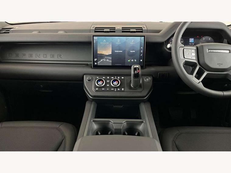 1 x USB-C (power only) & 1 x USB-C (power & data) in Row 1, 2 x USB-C in Row 2, 11.4" touchscreen, 360 degree parking aid, 3D Surround Camera with 360 View, 180 Rear View, Front Traffic Detection, Forward Vehicle Guidance, Tow Hitch Assist and clear sight Ground View, Adaptive cruise control, Android Auto, Apple CarPlay, Blind spot assist, Bluetooth system, Brake pad wear indicator, Clear exit monitor, Connected navigation pro, Driver condition monitor, Electric power assisted steering (EPAS), Interactive driver display, Lane keep assist, Push button start, Rear collision monitor, Rear traffic monitor, Traffic sign recognition with adaptive speed limiter, Trip computer, Wireless device charging, 8 speed automatic transmission, All wheel drive system, Twin speed transfer box, DAB Radio (Digital Audio Broadcasting), Meridian 400w sound audio system with 11 speakers and subwoofer, Pivi pro connected, Automatic headlight levelling, Automatic headlights, Black exposed rear recovery eyes, Body coloured bonnet, Centre high mounted stop light, Electric heated/power fold door mirrors with approach lights and auto dimming driver side, Electric windows with one touch open/close and anti-trap, Follow me home lighting, Heated rear window with timer, Heated windscreen, Illuminated metal treadplates with brand name script, LED tail lights, Privacy glass, Puddle lights, Rain sensing windscreen wipers, Rear fog lights, Rear side wing doors, Rear wiper, Side hinged tailgate, Standard tail door, Trailer stability assist, X-Dynamic badge, 12V power socket in loadspace, 3 seat bench in 2nd row, Alpine lights, Configurable cabin lighting, Durable rubber cabin flooring, Durable rubber loadspace flooring, Footwell lights, Front head restraints, Front passenger isofix child seat attachment, Loadspace cover, Loadspace Hook, Multifunction steering wheel, No flat load floor storage, Overhead stowage for sunglasses, Rear headrests, Rear ISOFIX, Rear reading lights, Single front passenger seat, Standard seat configuration, Storage glovebox, Sunvisors with illuminated vanity mirrors, Twin front cupholders, Non-smoker package, Online pack with data plan - Defender, 5 x 3 point seatbelts, ABS, Brake hold function, Cornering brake control (CBC), Customer configurable autolock, Driver and passenger airbags, DSC - Dynamic Stability Control, EBD - Electronic brakeforce distribution, Electric parking brake (EPB), Emergency brake assist, Emergency braking, ESP + traction control, Front airbags with passenger seat occupant detector, HDC - Hill descent control, Hill launch assist, Low traction launch, Power operated child locks, Remote for (e-Call, Optimised assistance call, InControl app, Climate, beep and flash and door), RSC - Roll stability control, Seat belt reminder, TPMS (Tyre pressure monitoring system), Alarm, Immobiliser, Intrusion sensor, Keyless entry, Locking wheel nuts, Secure tracker pro,