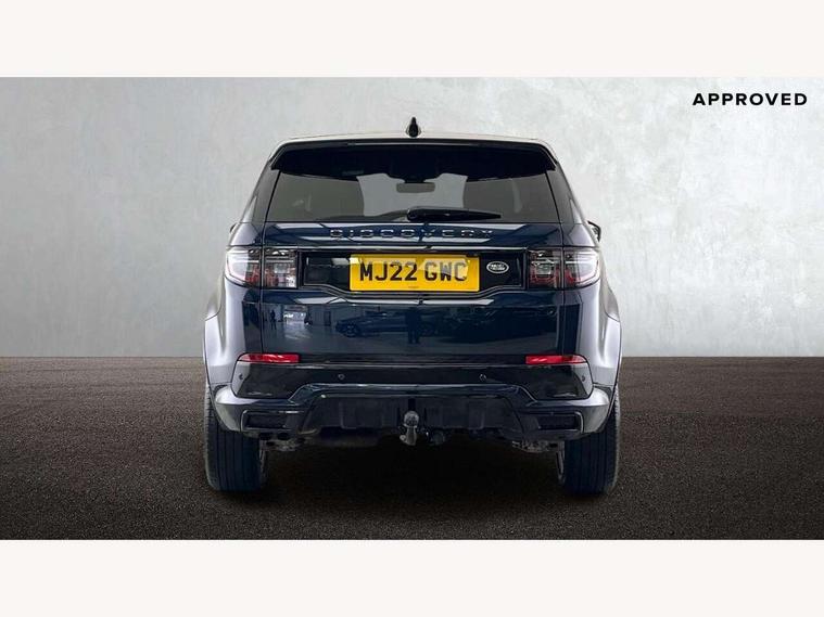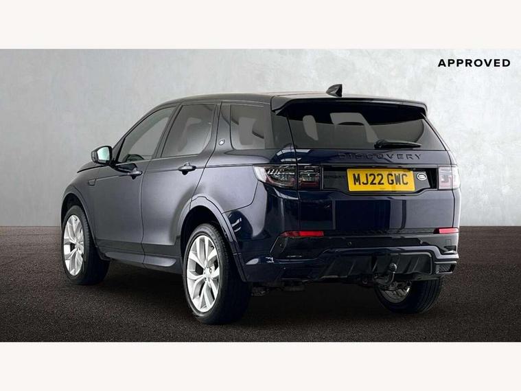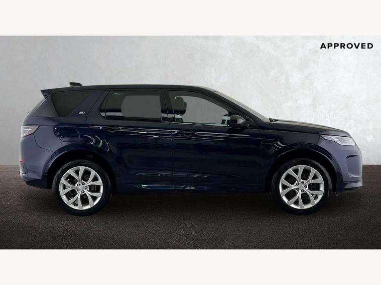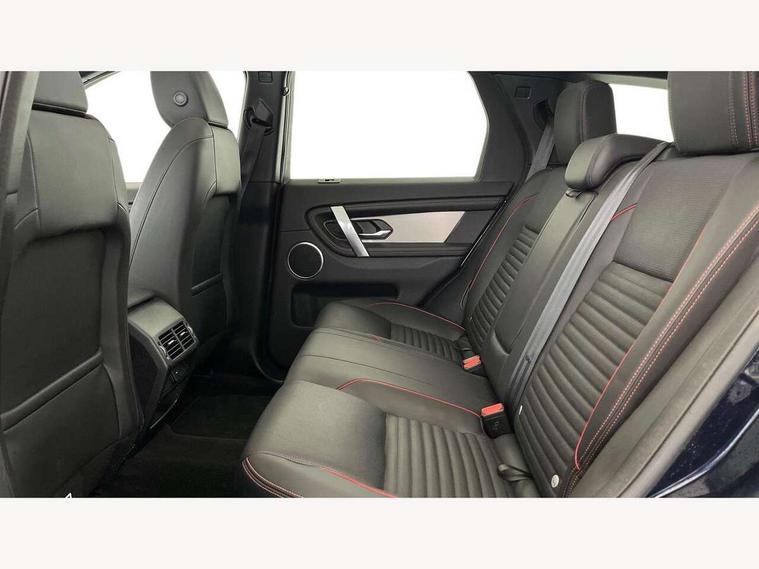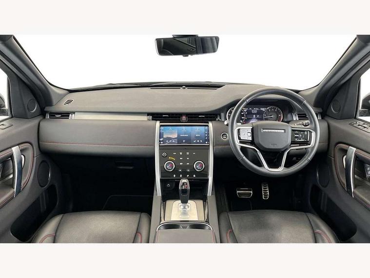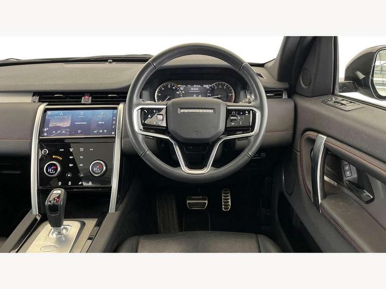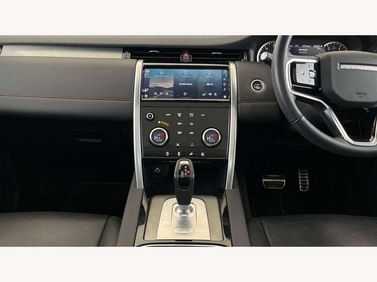 10" touch screen, Adaptive cruise control, Android Auto, Apple CarPlay, Driver condition monitor, eCall emergency call system, Front and rear parking aid, InControl remote premium, Lane keep assist, Locking fuel flap, PAS, Pivi Pro connected navigation system with upgraded Infotainment, Powered tailgate/boot lid, Push button start, Rear collision monitor, Service interval indicator, Traffic sign recognition with adaptive speed limiter, Trip computer, Wade Sensing, All terrain progress control, Coil suspension system, Diesel particulate filter, Dynamic stability control, Terrain Response 2, Bluetooth connectivity including audio streaming, Digital Audio Broadcast radio-DAB, Steering wheel mounted audio controls, 3rd brake light, Automatic headlights, ClearSight interior rear view mirror, Electric front/rear windows, Electric heated/power fold door mirrors with approach lights and auto dimming driver side, Fixed panoramic sunroof with powered sunblind, Front and rear recovery eyes, Heated rear window, Heated windscreen including heated washer jets, No badges, R Dynamic badge, Rain sensing windscreen wipers, Rear fog lights, Rear side wing doors, Rear wing door, Rear wiper, 5 seats, Bright metal pedals, Centre console with armrest, Footwell lights, Front and rear grab handles, Front passenger isofix child seat attachment, Loadspace cover, Loadspace light, Overhead lighting console, Overhead stowage for sunglasses, Rear headrests, Satin chrome gearshift paddles, Sunvisors with illuminated vanity mirrors, Tilt/reach adjustable steering wheel, Black exterior pack - Discovery sport, Online pack with data plan - Discovery, 3 point seatbelts on all seats, ABS, Brake hold function, Child locks on rear doors, Collision mitigation braking system, Cornering brake control (CBC), Driver/Front Passenger airbags, Drivers knee airbag, Electronic brake force distribution, Electronic parking brake, Emergency brake assist, ESP + traction control, Hill descent control, Hill launch assist, Pedestrian airbag system, Rear seat ISOFIX, Roll stability control, Side and curtain airbags for front and 2nd row seats, Trailer stability control, Tyre pressure monitoring system, Battery Back Up System (BBUS) with tilt sensor, Global lock and unlock switch on driver door, Intrusion sensor, Keyless entry, Locking wheel nuts, Centre stack rails in noble chrome,