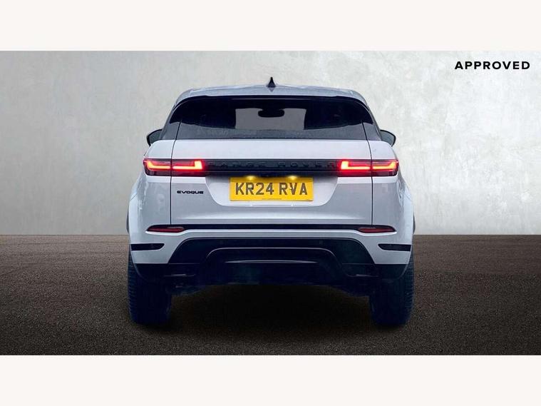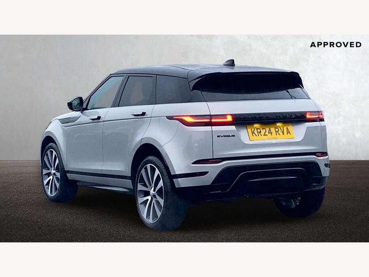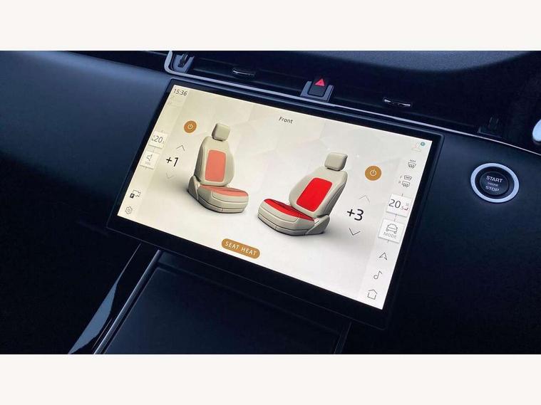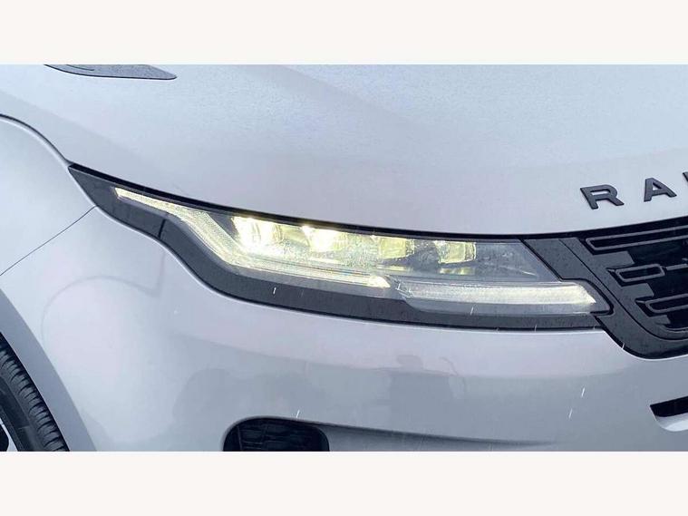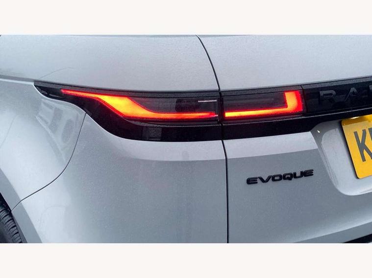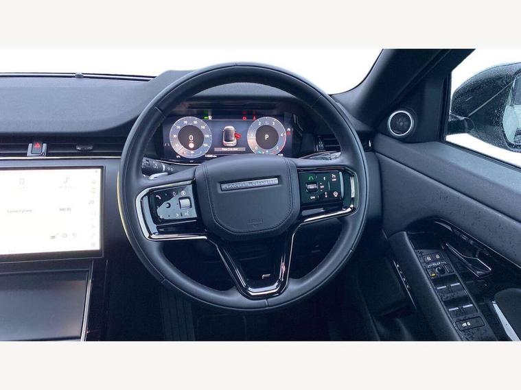 11.4" touch screen, Adaptive cruise control, Android Auto, Apple car play, Blind spot assist, Bluetooth connectivity, Brake pad wear indicator warning light, Driver condition monitor, eCall emergency system, Eco mode, Electronic power assisted steering (EPAS), Front and rear parking aid, InControl remote, Interactive driver display, Land Rover InControl apps, Lane keep assist, Pivi pro connected includes diamond pivi variant, smart settings, connected navigation pro, nuance speech licence, Powered tailgate/boot lid, Rear collision monitor, Rear traffic monitor, Traffic sign recognition with adaptive speed limiter, Voice control system, Wireless device charging, All terrain progress control, Diesel exhaust fluid (DEF) large tank, Efficient Driveline, Large fuel tank, Passive suspension, Terrain Response 2, Digital Audio Broadcast radio-DAB, Steering wheel mounted controls, Acoustic laminated windscreen, Auto headlights, Automatic headlight levelling, Electric windows with one touch open/close and anti trap, Flush deployable exterior door handles, Front and rear recovery eyes, Front fog lights, Heated rear window with timer, Heated washer jets, Heated windscreen, Pixel LED headlights with signature DRL and LED tail Lights, Power fold, auto-dimming, heated door mirrors with approach lights and auto dimming driver side, Rain sensing windscreen wipers, Rear animated directional indicators, Rear fog lights, Rear side wing doors, Rear wiper, Side repeater indicators in mirror, Tailgate spoiler, Third brake light, Winter wiper park position, 14 way driver memory electric front seats with 2 way manual headrests + 4 way lumbar support, bolsters, 40:20:40 split folding rear seats with centre headrest and armrest, Ambient interior lighting, Bright metal pedals, Carpet mats, Chrome tread plates with range rover branding Includes stainless steel loadspace scuff plate with etched graphic, Customer configurable single point entry, Electrically adjustable steering column with memory function and easy entry/exit, Front and rear cupholders, Heated steering wheel, Isofix system on outer rear seats, Overhead lighting console, Overhead stowage for sunglasses, Passive front head restraints, Rear air vents, Rear head restraints, Satin chrome gearshift paddles, Single passenger seat, Sunvisors with illuminated vanity mirrors, Twin sliding front centre armrest, Online pack with data plan - Evoque, Power socket pack 2 - Evoque, 3 rear 3 point seatbelts, Anti-lock braking system (ABS), Brake hold function, Customer configurable autolock, DSC - Dynamic Stability Control, Electronic brake force distribution, Electronic parking brake, Electronic traction control, Emergency braking, Front and rear seatbelt reminder, Hill descent control, Hill launch assist, Low traction launch, Occupant protection assist, Passenger seat occupant detector, Power operated child locks, Roll stability control, Six airbags - Driver and passenger airbags/driver knee airbag/front side airbag and curtain airbags, Torque vectoring brake, Tyre pressure monitoring system, Alarm, Immobiliser, Intrusion sensor, Keyless entry, Locking wheel nuts,