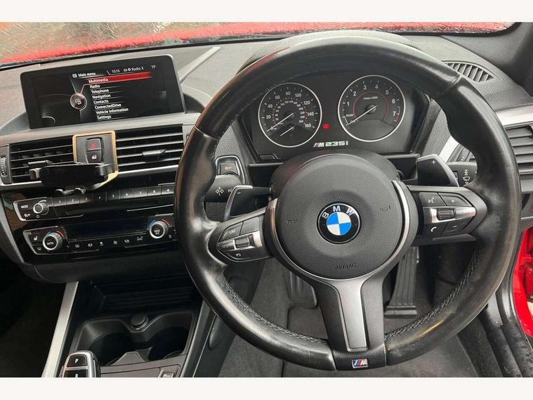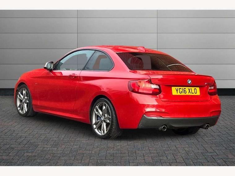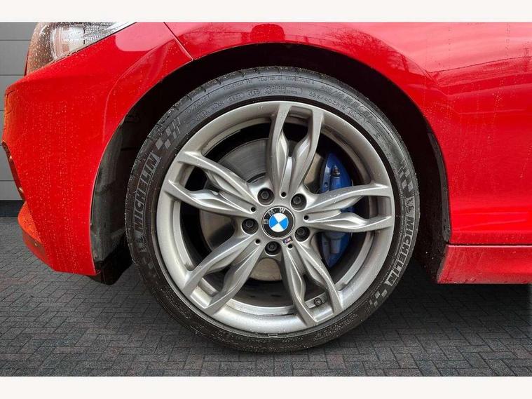 BMW Teleservices, Brake pad wear indicator warning light, Check control system, Door/boot open warning, Lights on warning, Oil temperature gauge, On board computer, Outside temperature display, Service interval indicator, Speed limiter, Stop/start button, Variable sport steering, Drive Performance Control, Sports function on gearbox with steering wheel mounted gearshift paddles, Auxiliary point for auxiliary devices, BMW professional radio/CD/MP3, DAB Digital radio, 2 speed adjustable intermittent wipers with wash/wipe function, Auto dimming rear view mirror, Body colour bumpers, Body colour door handles, Body colour roof mouldings, Chrome kidney grille with black vertical slats, Door sill finishers, Dual dark chrome exhaust tailpipes, Electric adjustable heated door mirrors, Electric front windows/one touch facility, Ferric grey mirror caps, Follow me home headlights, Heat insulating tinted glass, Heated windscreen washer jets, M aerodynamic body styling, M rear spoiler, Rain sensor including auto headlights activation, Shark fin roof aerial, Welcome lighting, 12V sockets in front centre console and passenger footwell, 4 grab handles, Anthracite headlining, Anthracite Velour floor mats, Dakota leather upholstery, Folding storage compartment with glasses holder + coin tray, Front cupholders x 2, Front door storage bins, Front head restraints, Front sliding armrest, Front/rear armrests within door panels, Full black panel display, Glovebox with lid, ISOFIX child seat preparation+airbag deactivation, Lashing eyelets in boot, Leather gearknob, Luggage compartment lighting, M Sport multifunction leather steering wheel, Reach + rake adjustable steering column, Rear centre armrest, Rear coat hooks, Storage compartment in rear centre console, Sunvisors with vanity mirrors, Interior comfort pack - 2 Series/M2, Xenon headlight pack - 2 Series/M2, ABS/EBD, Automatic Stability Control (ASC), BMW emergency call, CBC - (Cornering brake control), Crash Sensor - activates hazard/interior lighting + unlocks doors, Driver seatbelt warning indicator, Driver/Front Passenger airbags, DSC+, Dynamic brake control, Dynamic Traction Control - DTC, Front and rear curtain airbags, Front seatbelt force limiters, Front seatbelt pretensioner, Front side airbags, Hill start assist, M Sport braking system, Tyre pressure monitoring system, Warning triangle and first aid kit, Drive away door locking, Electronic immobiliser, Remote central locking, Remote control Thatcham category 1 alarm, 18" light alloy wheels - M Double spoke style 436M,