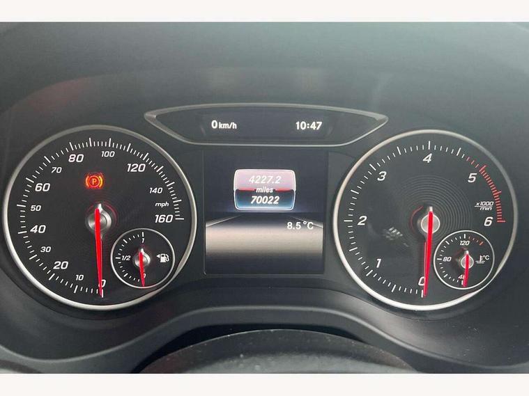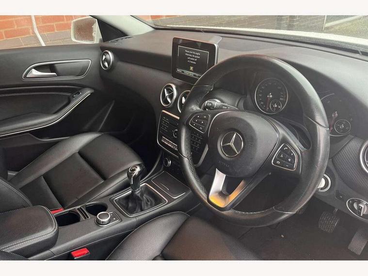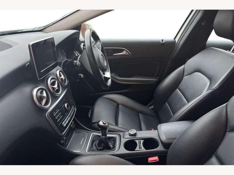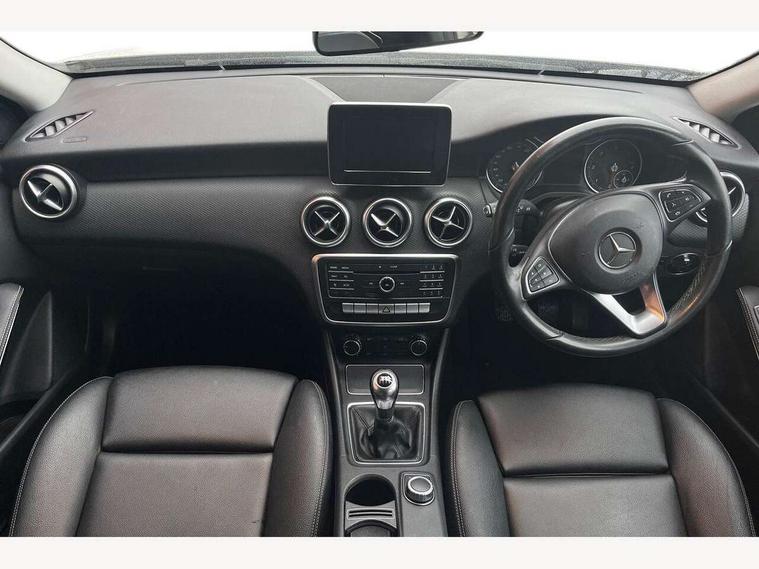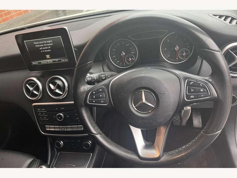 7" tablet style colour display, Attention assist, Bluetooth interface for hands free telephone, Bulb failure indicator, Collision prevention assist plus, External temperature gauge, Low fluid warning light, Reversing camera, Service indicator (ASSYST PLUS), Smartphone integration with Apple CarPlay, Speed sensitive parameter assisted steering, Speedtronic cruise control, Trip computer, Lowered suspension, 6 speakers, Media interface, Mercedes Audio 20 radio/single CD + telephone keypad, SD card slot, USB port, Adaptive brake lights, Body colour bumpers, Body colour door handles, Body colour side skirt, Body coloured door mirrors, Chrome beltline trim, Daytime running lights, Diamond radiator grille in black with one louvre in body color + chrome insert, Electric adjustable heated door mirrors, Electric front windows, Electric rear windows, Headlamp assist, Heated rear window with timer, Rear wiper, 1/3 to 2/3 split folding rear seats, 12V socket, 3 spoke leather multifunction sports steering wheel, Adjustable head restraints, Air conditioning, Artico man-made leather upholstery, Auto Mercedes-Benz child seat recognition sensor, Front centre armrest with storage compartment, Front door sills with Mercedes Benz lettering, Front head restraints, Grey headlining, Height adjustable front seats, Height/reach adjustable steering column, Illuminated glovebox, Isofix rear child seat preparation, Leather gearshift, Load securing rings in luggage compartment, Luggage compartment cover, Luggage net under rear parcel shelf, Parcel net in front passenger footwell, Rear head restraints, Storage compartment under load area floor, Twin front cupholders, Seat comfort pack - A Class, Stowage Pack - A Class, 3 rear 3 point seatbelts, ABS with Brake Assist, Active bonnet, Adaptive brake system, Child proof door locks, Crash responsive emergency lighting, Drivers knee airbag, Dual stage driver/passenger airbags, Electronic parking brake, ESP with ASR, Front and rear seatbelt reminder, Front head airbags, Front passenger seat occupancy sensor, Front side airbags, Hill start assist, Tyre pressure monitoring system, Warning triangle and first aid kit, Window airbags, Alarm system/interior protection/immobiliser, Keyless ignition, Remote central locking, Chrome air vent surrounds, Honeycomb effect trim, 16" 5 twin spoke alloy wheels, Tirefit sealant with electric air pump,
