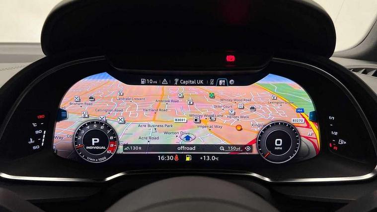 Audi connect, Audi drive select, Audi parking system plus with front and rear sensors, Audi virtual cockpit - 12.3" high-resolution LCD display with fully customisable instrument cluster, Bluetooth connectivity with voice control, Cruise control + speed limiter, Driver's information system, MMI navigation plus with DVD, SD card reader, 10GB music storage, MMI touch panel, Service interval indicator, 83 litre fuel tank, Sports suspension, 2 USB ports, Audi music interface, Auxiliary input socket, DAB Digital radio, Air inlet in Anthracite gloss black, Aluminium fuel cap, Audi Beam uses LEDs to project the Audi Sport logo, Auto dimming rear view mirror with light and rain sensors, Body colour bumpers, Electric front windows, Electrically adjustable and heated door mirrors, Folding door mirrors, Gloss anthracite black air outlets, Green tinted glass, Heat insulating glass, Heated rear window, Laminated windscreen, LED daytime running lights, 3 spoke flat bottomed multifunction performance leather steering wheel with 2 operating satellites, Adjustable steering column, Aluminium gear selector, Ambient lighting, Deluxe climate control, Driver and passenger footwell lighting, Electric front seat height adjustment, Engine Compartment Light, Gearshift paddles, Illuminated door pockets, Illuminated glovebox, Integrated front head restraints, Interior light with delay, Luggage compartment lighting, Reading lights, ABS/EBD, ASR, Driver/front passenger airbag, EDL traction control, ESP, Front passenger airbag deactivation, Front side airbags, Hill hold control, Tyre pressure monitoring system, Warning triangle and first aid kit, Advanced key, Anti theft system, Electronic immobiliser, Locking wheel bolts, Preparation for tracking system, Remote central locking, Valet parking key, Tyre repair kit,