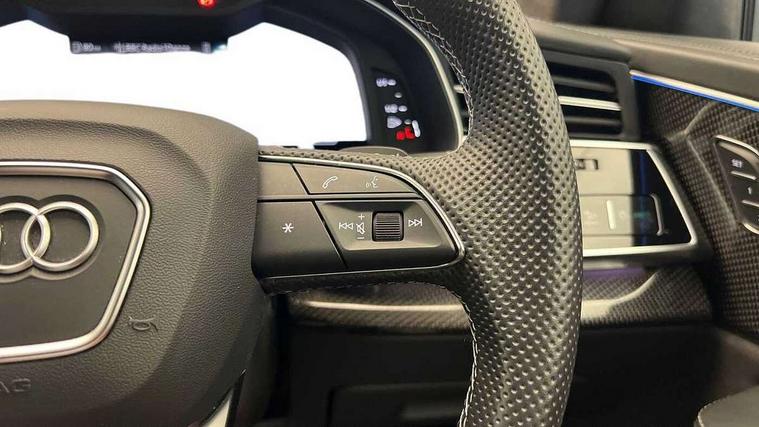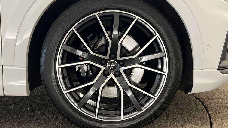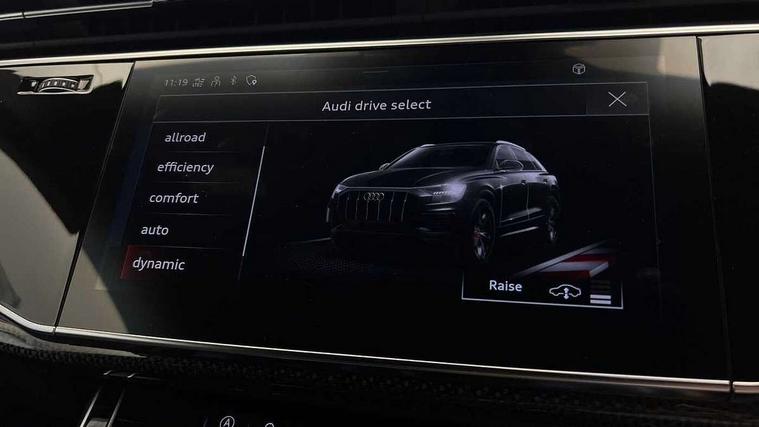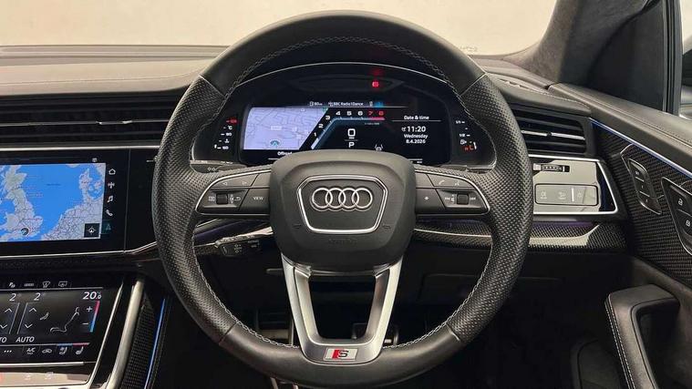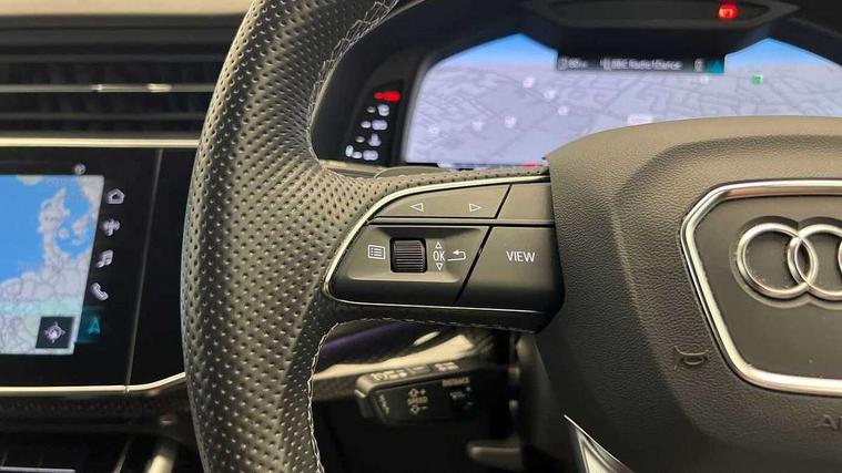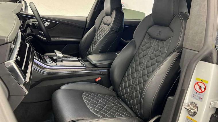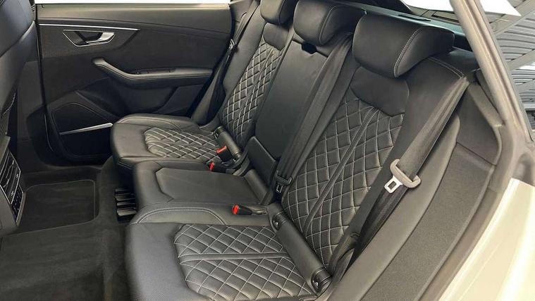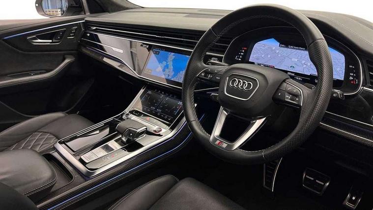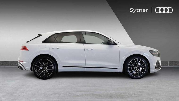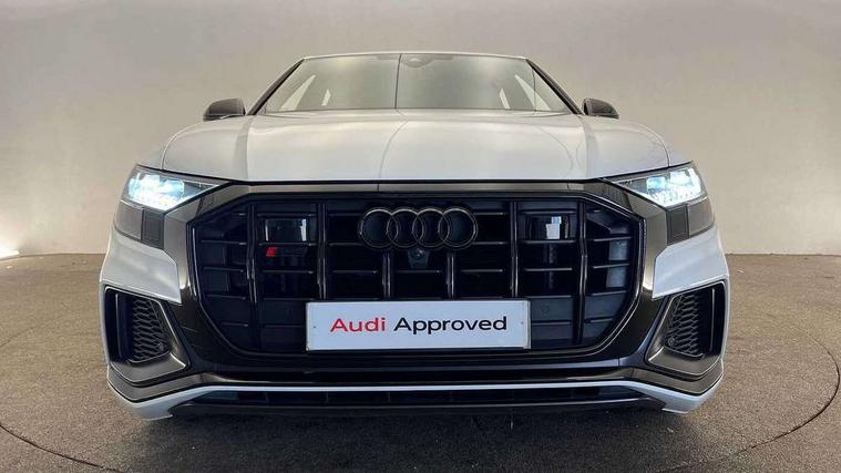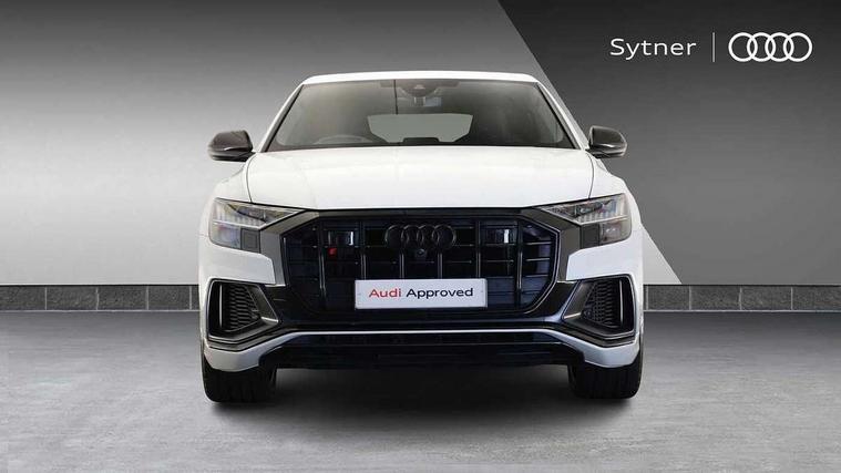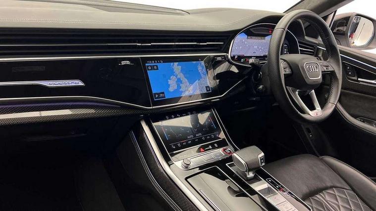 10.1" and 8.6" Dual colour touchscreens, 2 USB ports with charge and data functions in the rear, All wheel steering, Audi connect safety and service (e-call), Audi connect with Amazon Alexa Integration, Audi drive select, Audi virtual cockpit - 12.3" high resolution LCD display with fully customisable instrument cluster, Automatic start/stop system, Electro-mechanical PAS, Head up Display, Low washer fluid indicator, MMI - Multi Media Interface control system, MMI navigation plus with MMI touch, Natural voice recognition, On board computer, Operating buttons in black, glass look with haptic feedback, Power door closure, Power operated tailgate, Service interval indicator, Smartphone interface includes wireless Apple carplay/Android Auto, 48V Mild hybrid technology, 85 litre fuel tank, Electromechanical active roll stabilisation, Quattro sports differential, S specific Adaptive air suspension, Audi music interface with 2 USB ports with charge and data functions, Aux-in socket, DAB Digital radio, 3rd brake light, Acoustic windscreen, Adaptive windscreen wipers with integrated washer jets, Audi Beam uses LEDs to project Vorsprung logo, Audi HD Matrix LED headlights with dynamic front and rear indicators, Auto dimming frameless rear view mirror, Body coloured bumpers, Coming/leaving home lighting function, Electric front+rear windows, Electric panoramic glass sunroof, Electrically folding auto dimming/adjustable/heated door mirrors with memory function, LED side indicators and kerb view function for passenger side, Gloss black finish for exterior Audi rings and SQ8 logo, Headlight washers, Heat insulating glass in windshield, LED signature daytime running lights, Platinum grey front spoiler lip and diffuser insert, Privacy glass - dark tinted rear and rear side windows from B-pillar backwards, Rain and light sensors, Rear side wing doors, Rear wiper, S specific dual brach chrome tailpipes on both the left and right, S specific front and rear bumpers, S specific side skirts in matt selenite silver, Side air inlet grilles in matt titanium black, Trim and underbody protection in matt selenite silver, 3 bench rear seats in 2nd row, 3 spoke heated leather multi-function steering wheel including paddle shift, 4 zone deluxe automatic climate control, 4-way lumbar support for front seats, 40:20:40 split folding rear bench seat, Black dinamica headlining, Comfort front centre armrest, Double sun visor with illuminated vanity mirror on driver and passenger side extendable, Driver and front passenger seat memory function for electrically adjustable front seats, Electric sunblind for the rear side windows and manual sunblind for the rear window, Front head restraints, Front/rear floor mats, Heated front and outer rear seats, Illuminated door sill trims, ISOFIX child seat mounting for front passenger seat and 2 outer rear seats with top tether child seat mounting for all 3 rear seats, Luggage compartment sill protection in stainless steel, Massage and ventilation function for front seats, Rear centre armrest with 2 cupholders, Rear headrests, Single front passenger seat, Stainless steel pedals, Valcona leather upholstery + super sports seats with S embossed logo, City assist pack - Q8, Comfort and sound pack - SQ8, Extended leather pack - Q8, Titanium Black Styling Pack - Q8, Tour pack - Q8, 3 point seatbelts on all seats, Audi pre sense front, Child locks on rear doors, Driver and front passenger, front side and curtain airbags, Electromechanical parking brake, Electronic Stability Control (ESC) including ABS, ASR and EDL, Front passenger airbag deactivation, Hill descent control, Hill hold assist, Predictive pedestrian protection, Seatbelt monitoring, Traction control, Tyre pressure loss indicator, Warning triangle and first aid kit, Anti theft alarm with tow away protection, Anti-theft wheel bolts and wheel loosening detection, Immobiliser, Keyless go with remote central locking, Carbon vector inlays, 22" x 10J 5 V spoke star design alloy wheels in gloss anthracite black, Tool kit, Tyre repair kit,