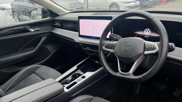 2 x Front USB-C ports, 2 x USB-C charging sockets on the centre console in the rear, charging capacity up to 45W, Adaptive cruise control, Advanced driver attention and drowsiness monitor, Chat GPT function for IDA voice assistant, Digital cockpit pro 10.25" high resolution, Discover media navigation system includes streaming and internet, Dynamic road sign display, E-Sim card for online connectivity, eCall emergency call service, Electronic engine sound, Full electric tailgate operation, Inductive smartphone charging without external antenna connection, Memory feature for park assist, Oncoming vehicle braking when turning including swerve support, Park assist pro with park distance control (Remote park assist), Predictive speed limiter, Preparation for We connect and We connect plus, Wireless app connect, Battery 340 A (58 Ah), Front wheel drive, Petrol Particulate Filter, 8 Speakers, Auto dimming interior rear view mirror, Automatic headlights, Body colour bumpers, Body colour door handles, Electric panoramic sunroof, tilting and sliding panoramic sunroof with rear panoramic sunroof, Heated windscreen washer jets, Laminated safety glass windshield, heat and sound insulating, LED third brake light, Rain sensor, Rear side wing doors, Rear wiper, Welcome light with surround lighting, 3 seat bench in 2nd row, 3 zone air care climatronic with rear air conditioning control panel, 30 colours options interior ambient lighting, Front + rear carpet mats, Front head restraints, Front sports comfort seats, Isofix child seat preparation, easy-fit (for two outer rear seats, and front passenger seat), compatible with I-size, Leather-wrapped, heated and multi-function steering wheel with shift paddles, Luggage compartment cover, power operated, Rear centre armrest, Single front passenger seat, Standard pedal cluster, Sun visors with illuminated vanity mirrors for driver and front passenger, Sunblind for rear side windows, Three rear head restraints, Unsplit rear seat bench, split folding backrest, Acoustics pack - Passat Estate, LED High matrix headlamps pack - Passat, 3x3 point rear seat belts, ABS (Anti locking brake system) includes BAS (Brake assist) and EBD (Electronic brake pressure distribution), Autonomous emergency braking front assist with pedestrian and cyclist monitoring, Disc brakes in front, Driver/Front Passenger airbags, Drivers knee airbag, Electronic parking brake with auto hold, ESC (Electronic stability control) + EDL (Electronic Differential lock) and ASR (Traction control), EDTC (Engine drag torque control), Extended safety system with proactive passenger protection system, Front passenger airbag deactivation switch, Hill hold function, Tyre pressure loss indicator, Warning triangle and first aid kit, Alarm with interior protection, Electronic engine immobiliser, Keyless locking and starting system keyless access with safelock, Aluminium decorative inserts, Tool kit for tyre mobility set, Trims for alloy wheels, Tyre mobility kit including compressor and sealing foam,