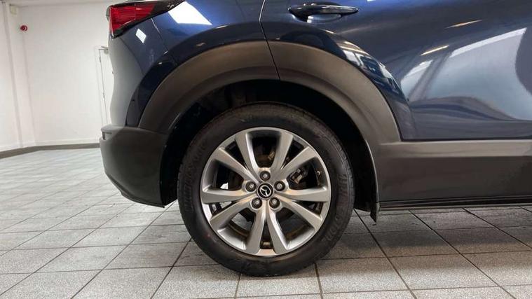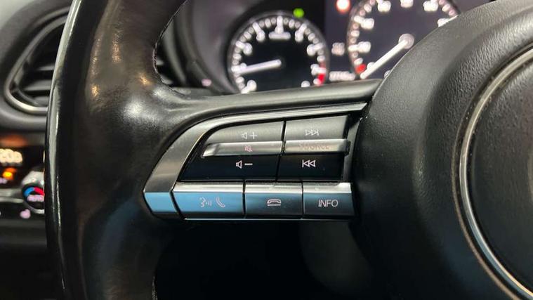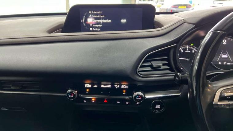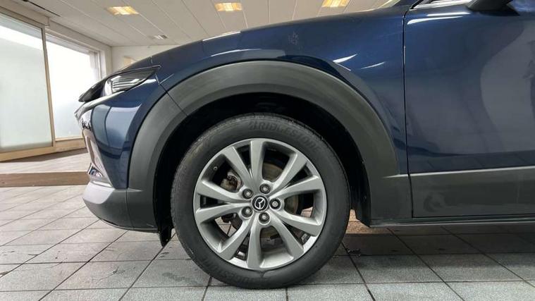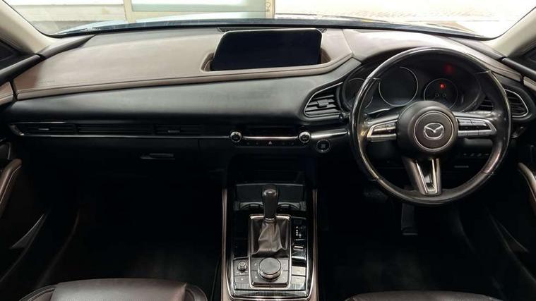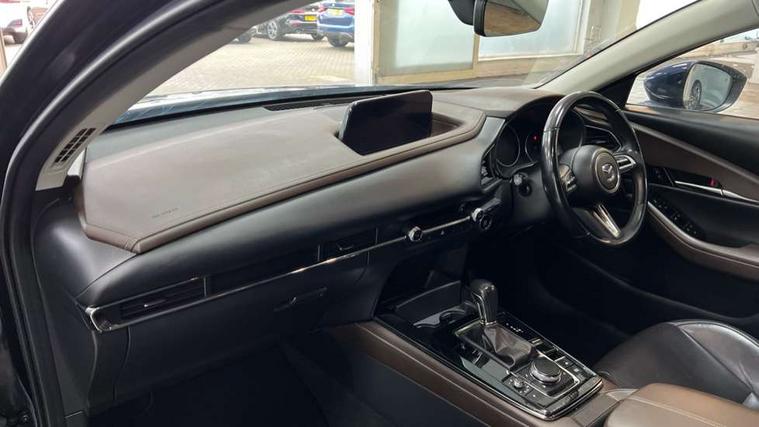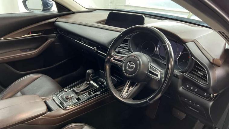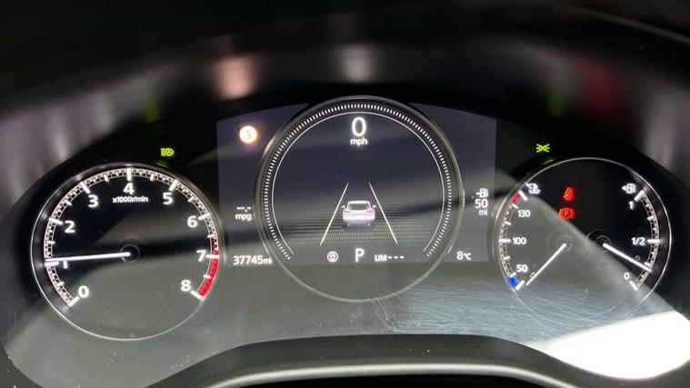 7" TFT Colour driver instrument panel display, 8.8" Colour centre touch screen display with Mazda Connect infotainment, Adaptive cruise control (Mazda radar cruise control) features stop and go, Apple car play/Android Auto, Blind spot monitoring with rear cross traffic alert, Drive mode selector, Driver attention alert system, E-call with GPS, Emergency stop signalling system, Engine start/stop button, Front and rear parking sensors, Integrated bluetooth, Integrated Mazda navigation system, Intelligent speed assist, Lane keep assist system (LAS) with Lane departure warning system (LDWS), Mazda connected services, PAS, Power lift gate, Reversing camera, Service indicator, Tailgate, Traffic sign recognition, Trip computer, Windscreen projected colour active driving display (HUD), Cylinder Deactivation, i-stop, 2 USB charging ports in front inner central armrest, AM/FM and DAB radio, Bose surround sound system with 12 Speaker, Bose center point, Bass match and audio pilot technology, Multimedia Commander including separate volume dial, Steering wheel mounted audio/bluetooth controls, Auto dimming driver's door mirror, Auto headlight levelling, B-pillar and C-pillar garnishes in piano black finish, Body coloured, electrically adjustable, heated auto power folding door mirrors with integrated indicators, Chrome finish signature wing in front grille, Coming/leaving home lighting function, Door mirrors with adjustable memory and tilt-down function when reversing, Dual chrome exhaust, Dusk sensing headlights, Electric front/rear windows with one touch auto up/down, Frameless auto dimming interior rear view mirror, Front kodo turn signal, Gloss black front grille, Gloss black rear roof spoiler, High beam assist, LED Headlights, LED signature daytime running lights, Privacy glass (rear side windows and rear screen), Rain sensing front wipers with adjustable speed and intermittent wipe, Rear fog lights, Rear side wing doors, Rear wiper, Signature LED rear combination lights, Third brake light, 12V power outlet in centre console, 3 seat bench in 2nd row, 60/40 split fold down rear seats, Chrome horn pad ring, Chrome interior trim accents with steering wheel centre bezel, surround of engine start / stop button and glove box handle, Dashboard, door cards and front centre armrest in rich brown leather, Driver and front passenger visors with covered vanity mirror and driver ticket holder, Driver's seat, power tilt, slide, recline, height and lumbar adjustment, Driver, front passenger and two rear door storage, Driver, Front passenger and two rear grab handles with coathooks, Dual zone climate control air conditioning with rear air vents, Folding rear centre armrest with two cup holders, Front and rear (x3) head restraints, Front and rear LED lighting, Front armrest, Front centre storage with two cupholders with lid, Front passenger seatback pockets, Front passengers seat manual slide, recline and height adjustment, Glovebox illumination, Heated front seats with 3 stage setting, Heated steering wheel, ISOFIX child seat anchorage points attached on outer rear seats, Leather upholstery with interior accents, Leather wrapped gear shift knob, Leather wrapped steering wheel with telescopic and tilt adjustment, LED luggage compartment lighting, Light roof headlining and pillars, Paddle shift controls, Rear armrest inner material in cloth, Roof mounted sunglasses holder, Single front passenger seat, 3 point ELR front seat belts x2 with pretensioners, 3 point ELR rear seat belts, Anti-lock braking system (ABS), Drivers knee airbag, DSC - Dynamic Stability Control, Electronic parking brake with auto disengage function and auto hold function, Front and rear curtain airbags, Front dual stage driver and single stage front passenger airbags, Front passenger airbag cut-off switch, Front side airbags, Front smart city brake support, G-Vectoring control plus, Hill launch assist, Manual child lock in rear doors, Mild Hybrid system with regenerative braking, Seatbelt reminder for driver/front passenger and rear seats, Traction control system (TCS), Tyre pressure monitoring system (TPMS), Remote central locking with deadlocking and automatic door lock when driving, Smart keyless entry, Thatcham accredited alarm and immobiliser, Dark vinyl door panel inserts, 18" Silver alloy wheels, Emergency tyre repair kit,