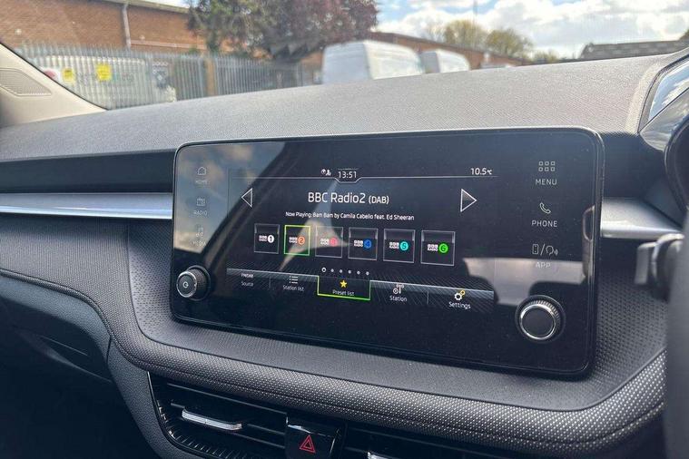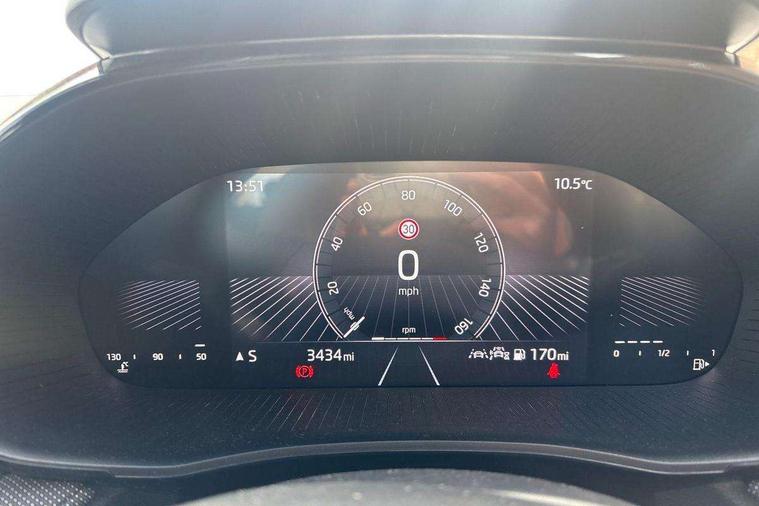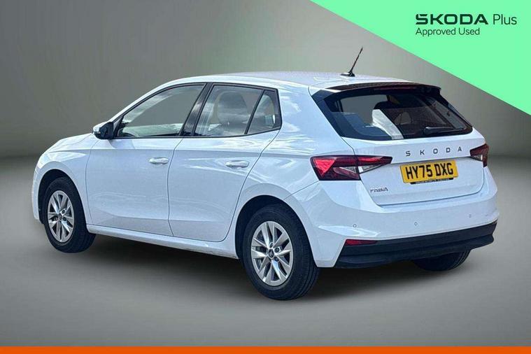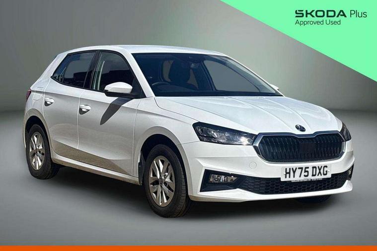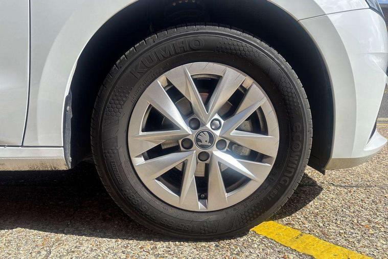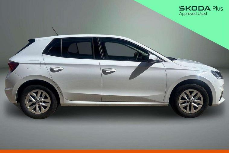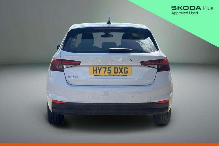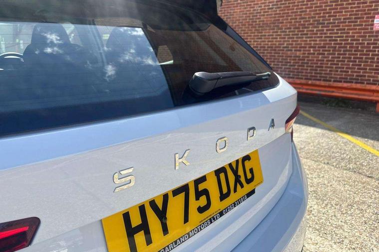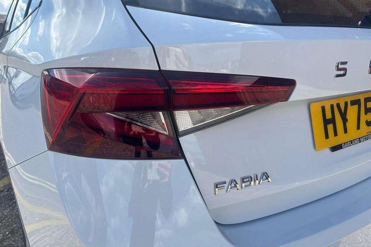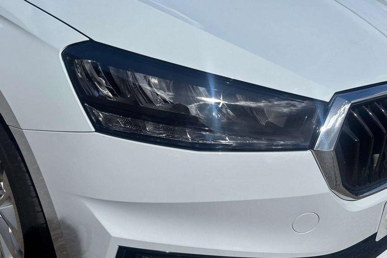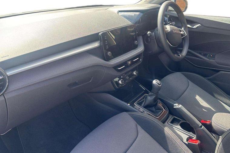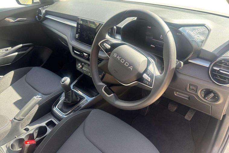 8" Digital instrument display, Advanced driver attention and drowsiness monitor, Bluetooth connection, Driver alert system, Electromechanical power steering, Exterior temperature gauge, Service interval indicator, Traffic sign recognition, Wireless SmartLink for Apple CarPlay and Android Auto, 6 Speakers (4 in front and 2 in rear), 8.25" Skoda infotainment touchscreen display, Auxiliary socket for external MP3 player, DAB digital radio reception, Auto dimming rear view mirror, Body colour door mirrors, Body coloured bumpers, Door mirror integrated indicators, Front and rear electric windows, Front window wiper intermittent control, Headlight range control - Automatic, LED 3rd brake light, LED daytime running lights with coming and leaving home feature, LED rear lights, Rear LED fog light, Rear side wing doors, Rear window wiper with washing nozzles, Roof mounted spoiler, SKODA tailgate lettering in chrome, Unique dark chrome design logo on alloy wheels, 2 reading lights in front and 2 reading lights in rear, 3 rear headrests, Backrest split and folding, Central console with removable cup holder and storage box, Chrome handbrake release button, Dual zone air conditioning with climatronic electronic control, Fabric upholstery, Front centre armrest, Gearshift knob/handle in leather, Grain satin black interior door handles, Hand brake lever handle in leather, Height adjustable front headrests, Height adjustable front seats, Height adjustable steering wheel, ISOFIX and TopTether anchorage points to the outer rear seats, ISOFIX and TopTether on the front passenger seat, Luggage compartment lighting, Manually adjustable lumbar support in front seats, Pollen filter, Rear seat bench unsplit, Single front passenger seat, Skoda lettering on steering wheel, Storm grey headlining, Sun visors with mirror and airbag label on passenger side, Textile floor mats, Ambient lighting pack - Fabia Hatchback, 3-point height adjustable front seats belts with pretensioner and force limiter, Automatic warning lights in case of crash, Driver and passengers airbag with switch off function, e-Call+, ESC including ABS, MSR, ASR, EDS, HBA and XDS, Front and rear seat belt warning, FRONT ASSIST (AEB City and AEB Inter Urban), Front side airbags, Head airbags, One tone horn, Pedestrian protection, Three rear 3-points safety seat belts with pretensioner and force limiter including stop function for outer rear seat belts, Tyre pressure monitoring system, Anti-theft alarm system including immobiliser, interior monitoring, backup horn, and towing protection, Central locking with radio remote control, interior controls, SAFE function and 2 foldable keys, Black painted air vents, Grain satin black central console cover, Metallic grey upper decorative trim, Satin black door and side trim panel in front, Textile Kota grey lower decorative inserts, Anti-theft wheel bolts protection, Super-low rolling resistance tyres,