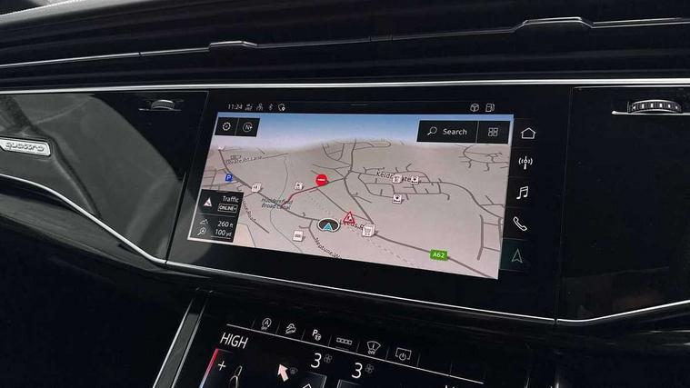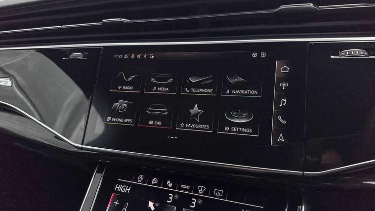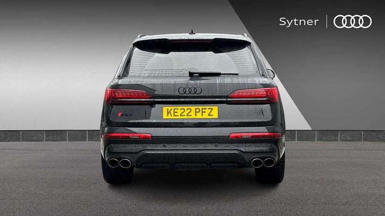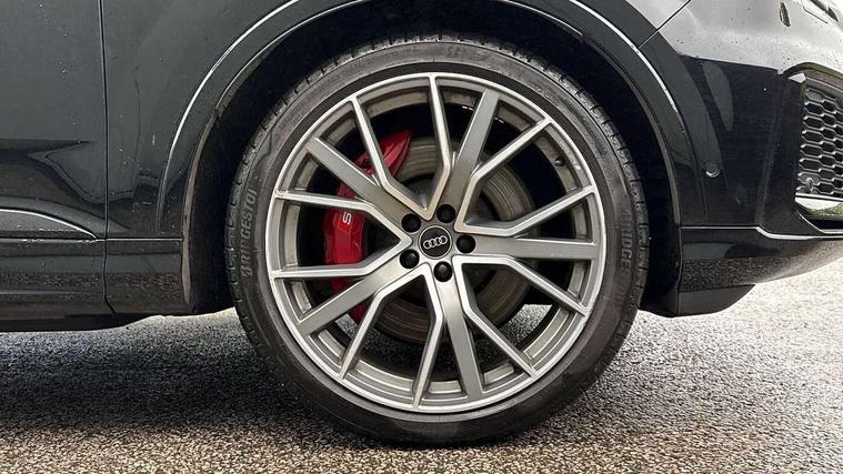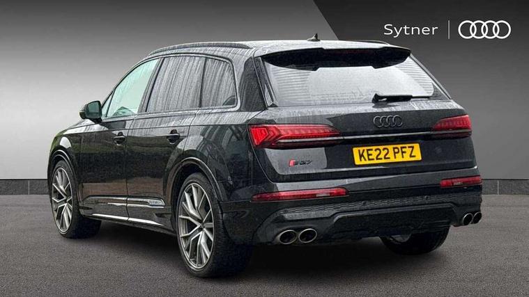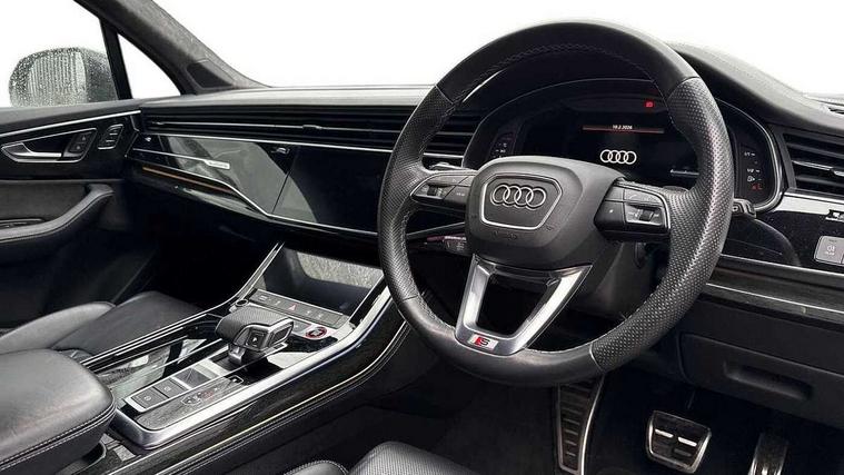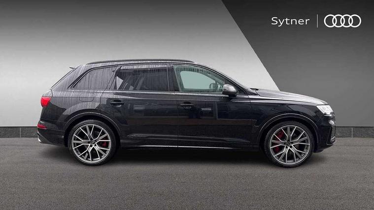 All wheel steering, Audi connect safety and service (e-call), Audi connect with Amazon Alexa Integration, Audi drive select (Auto, Comfort, Dynamic, Efficiency, Individual, Off-road and All road), Audi virtual cockpit - 12.3" high-resolution LCD display with fully customisable instrument cluster, Bluetooth interface, Camera based traffic sign recognition, Head up Display, MMI navigation plus with MMI touch screens includes 10.1" and 8.6" screens with haptic feedback, Natural voice recognition, Power door closure, Power operated tailgate, Smartphone interface includes wireless Apple carplay/Android Auto, Start/stop system, 48V Mild hybrid technology, 85 litre fuel tank, Quattro all wheel drive with self locking centre differential, S specific adaptive air sport suspension, 2 USB-C ports with charging functionality in the rear, Audi music interface - front 2 USB-C ports with charger and data functions, DAB digital radio module, 3rd brake light, Audi Beam uses LEDs to project Audi logo onto the ground as you exit your SQ7, Audi HD matrix LED headlights with Audi laser light + dynamic front and rear indicators, Auto dimming frameless rear view mirror, Black roof rails, Electric panoramic glass sunroof, Electrically adj heated/folding + automatically dimming exterior mirrors with memory + automatic kerb side function for passenger side exterior mirror, Gloss black finish for exterior Audi rings and SQ7 logos, Headlight washers, Heat insulating glass in windshield, Integrated LED indications in door mirrors, LED daytime running lights, LED rear tail lights, Privacy glass - dark tinted rear and rear side windows from B-pillar backwards, Rear side wing doors, Rear wiper, S front and rear bumpers, S specific rear bumper with 4 exhaust pipes, 2 seat bench in 3rd row, 3 seat bench in 2nd row, 3 spoke heated leather multi-function sport steering including paddle shift, 4 zone deluxe automatic climate control, 7 seat layout with ISOFIX points for the front passenger seat and rear passenger seat, Black dinamica headlining, Comfort front centre armrest, Double sun visors with illuminated vanity mirrors, Electric adjustable front seats/backrest bolsters, lumbar support, memory functionality, Folding rear seats, Front head restraints, Front/rear floor mats, Heated front and outer rear seats for second row, Illuminated door sill trims with S logo, Luggage compartment cover, Manual sunblind for the rear side windows and manual sunblind for the rear window, Rear head restraints, Seat ventilation and massage function in the front, Single front passenger seat, Stainless steel pedals, Valcona leather upholstery with front super sport seat S embossed logo, City assist pack - Q7, Comfort and sound pack with Bang + Olufsen premium sound system - Q7, Extended leather pack - SQ7, Titanium black styling pack - Q7/SQ7, Tour pack with Adaptive cruise assist - Q7, 3 point seatbelts on all rear seats, Audi pre sense front, Child locks on rear doors, Driver and front passenger, front side and curtain airbags, Electromechanical parking brake, Electronic Stabilisation Control (ESC) including ABS, ASR and EDL, Extended pedestrian protection measures, Hill hold assist, Seatbelt monitoring, Tyre pressure loss indicator, Warning triangle and first aid kit, Anti theft alarm, Anti-theft wheel bolts and wheel loosening detection, Remote central locking, Polished oak trim with grey finish inlay, Tool kit, Tyre repair kit,