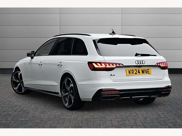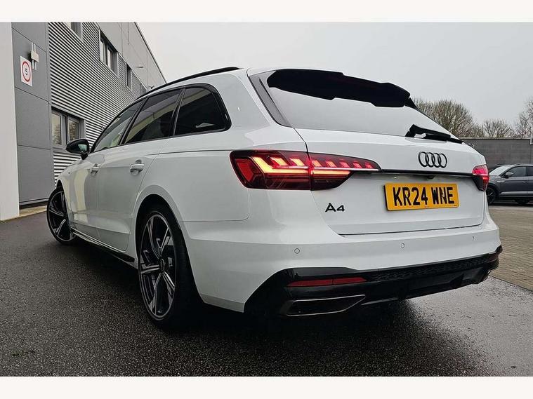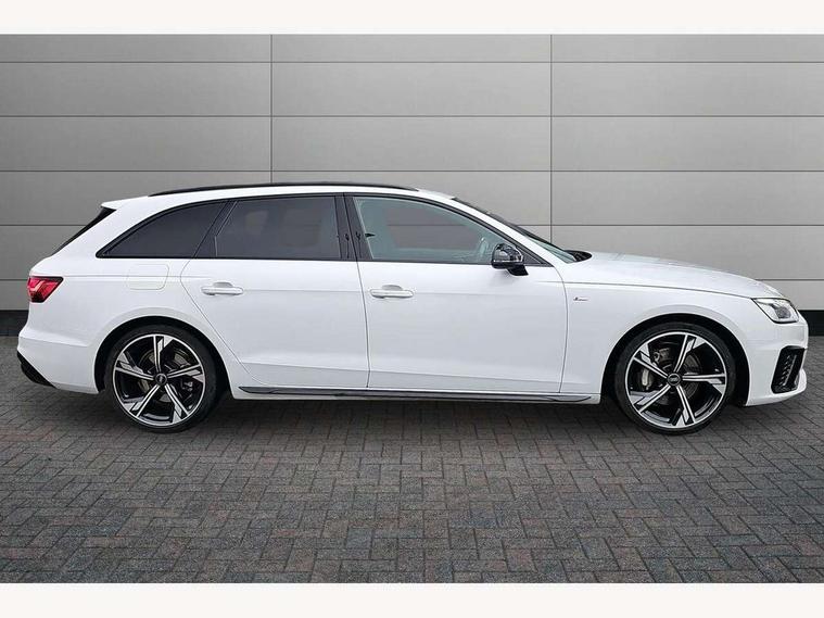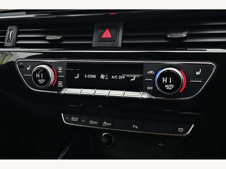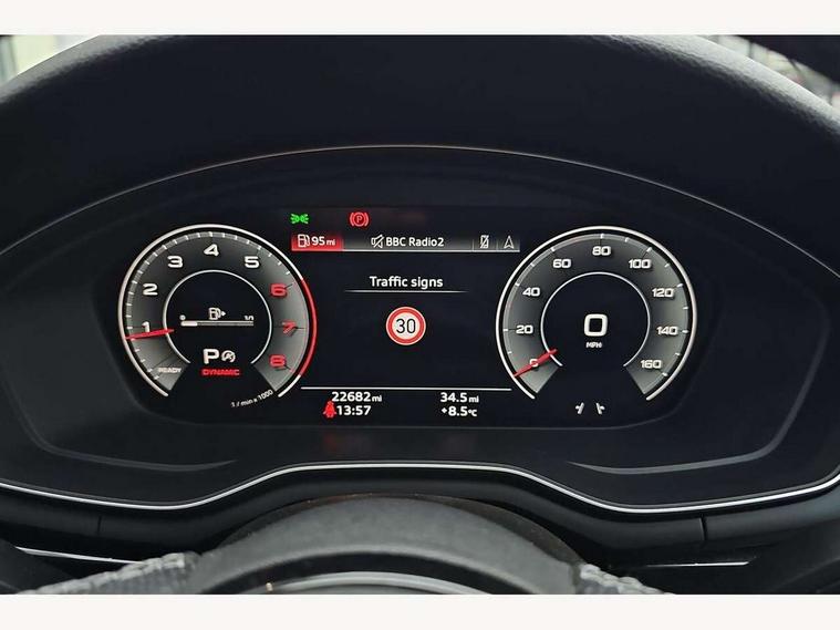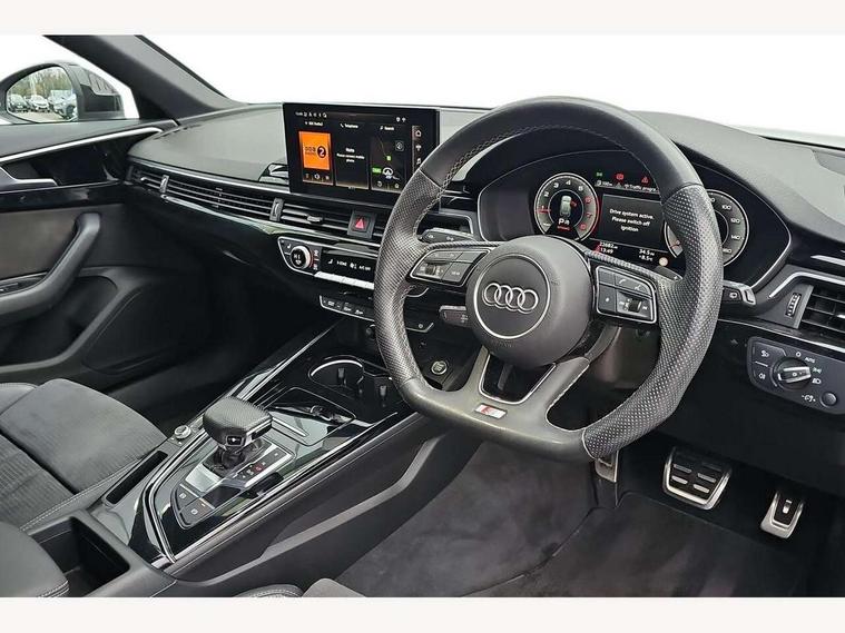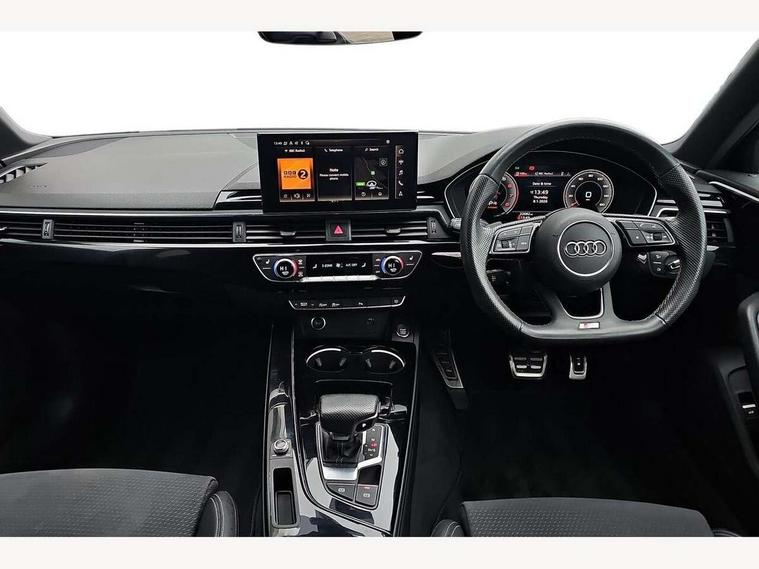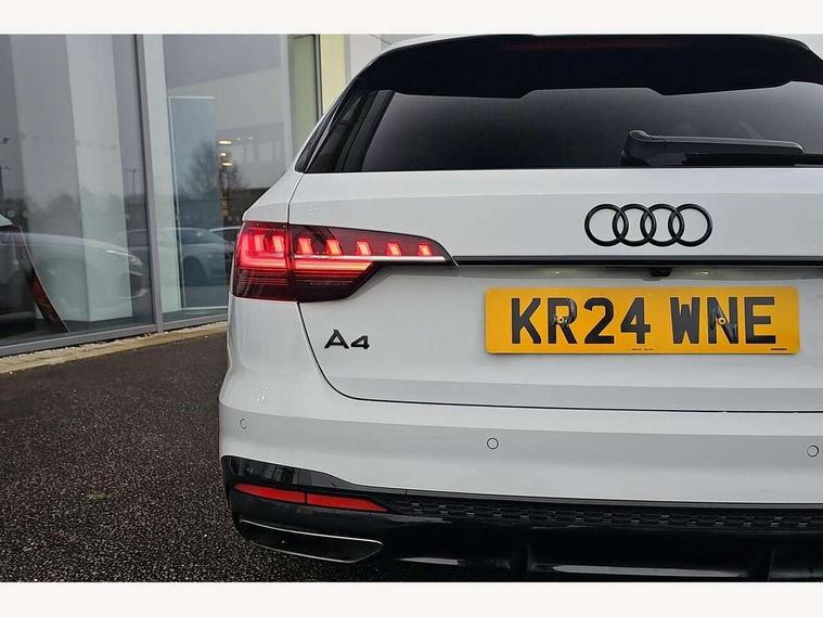 Audi connect safety and service (e-call), Audi drive select, Audi smartphone interface, Audi virtual cockpit, Automatic start-stop system with coasting functionality and efficiency programme, Bluetooth interface, Camera based traffic sign recognition, Electromechanical power steering, Email, calendar and text messages displayed via MMI, Front and rear parking sensors, Lane departure warning, MMI Navigation plus with MMI touch includes 10.1" high resolution colour MMI display, 3D map, Power operated tailgate, Rear view camera, Voice control system, 54 litre fuel tank, Sports suspension lowered by 23mm, 2 USB charging ports, 8 passive loudspeakers, DAB digital radio reception, Audi beam uses LEDs to project the audi logo onto the ground as you exit your A4, Auto dimming rear view mirror, Black Audi rings and black badging (with removed engine badging), Body colour door handles, Body colour front spoiler lip, Body colour side sill trim, Electric adjustable/heated/folding door mirrors with auto dimming, Exhaust tailpipes in dark chrome, Grained matt black side air inlets with matt aluminium silver inlay, High beam assistant, High gloss black B pillar trims and triangular rear door trim, LED headlights with LED rear lights + dynamic rear indicators + headlight adjustment and high beam, turning light + LED daytime running lights, LED third brake light, Privacy glass, Rain and light sensors, Rear diffuser in matt black with trim strip in matt aluminium silver, Rear side wing doors, Rear wiper, RS4 rear spoiler in body colour, S Line roof edge spoiler, Sport front and rear bumpers with side skirts, Variable intermittent front wash/wipe, Windscreen with acoustic glazing, 4 way electric lumbar support for driver and front passenger, 40/20/40 split folding 3 rear seat bench in 3 parts with rear centre armrest, Black carpets, Black cloth headlining, Black perforated leather gearknob, Contrast stitching on seats, steering wheel and gear lever gaiter, Deluxe 3 zone electronic climate control, Electric load area cover, Front and rear head restraints, Front centre armrest, Heated front seats, Illuminated door sill trims with S logo, ISOFIX child seat mounting and top tether, Manual seat adjustment, Single front passenger seat, Stainless steel pedals and foot rest, Black styling pack - A4 Avant, LED Interior light pack - A4/S4, 3 rear seatbelts, 6 airbags - Driver, front passenger, curtain and side windows, Attention and drowsiness assist, Electronic Stabilisation Control (ESC) including ABS, ASR and EDL, Hill hold assist, Multi collision brake assist, Pop-up bonnet for pedestrian protection, Pre sense city, Rear door child safety locks, Seatbelt monitoring, Warning triangle and first aid kit, Anti theft alarm, Anti theft wheel bolts, Central locking, Keyless Go, Piano black finish inlay, Tool kit, Tyre repair kit,