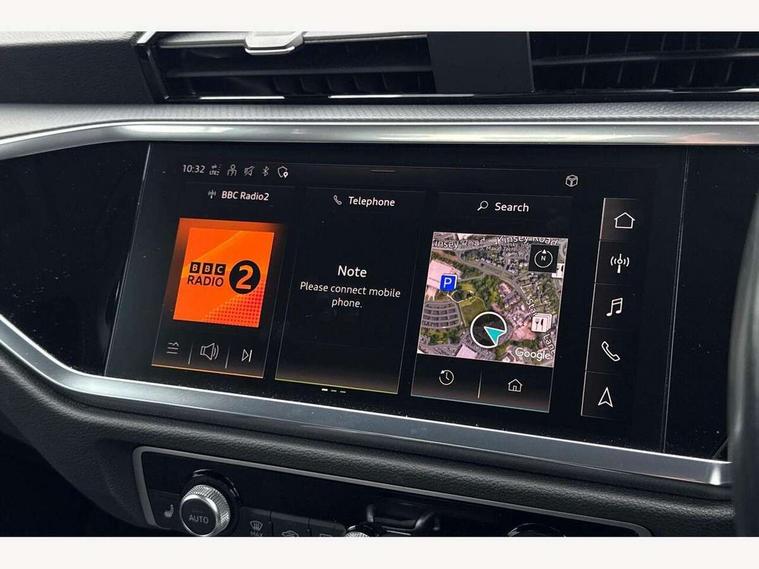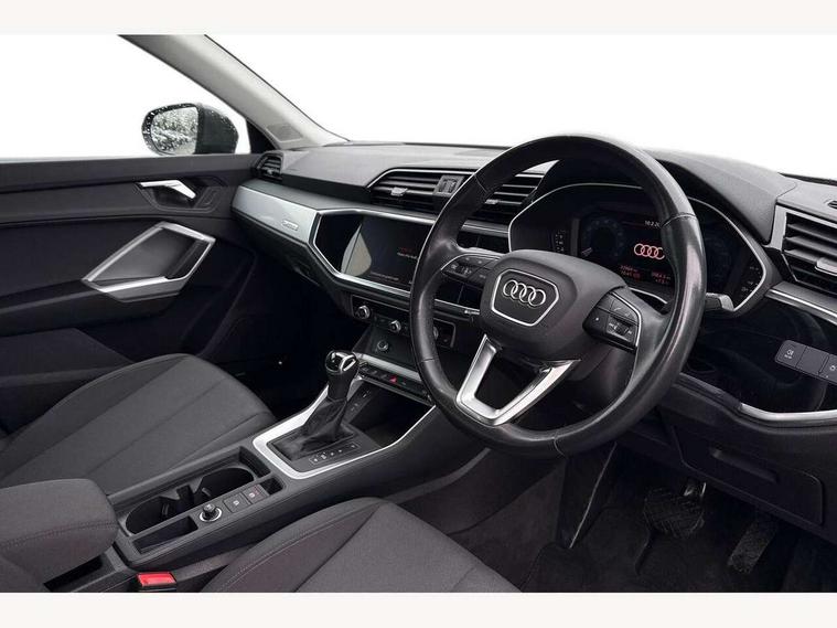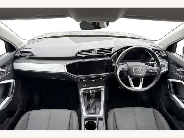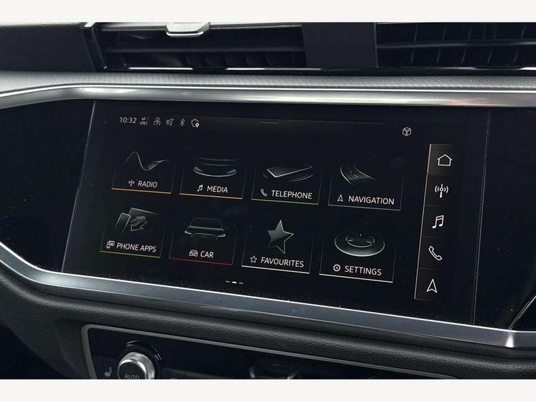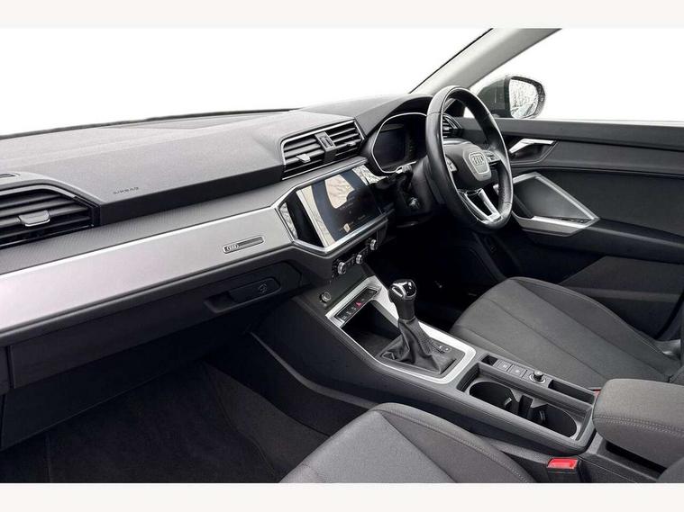 Amazon alexa Integration, Audi drive select, Audi lane departure warning, Audi Virtual Cockpit - 10.25" display, Bluetooth interface, Camera based traffic sign recognition, Legal emergency call, MMI Navigation Plus with high resolution 10.1 inch touchscreen colour display, Power operated tailgate, Progressive steering, Service interval indicator, Smartphone interface includes wireless Apple carplay/Android Auto, Start stop system with recuperation, Voice control system with natural language interaction, Standard suspension, 2 USB-C ports with charge and data functions, 6 passive loudspeakers, DAB digital radio module, Acoustic windscreen, Auto dimming frameless rear view mirror, Black roof rails, Body colour door mirrors, Diffuser in grained anthracite, Electrically folding, adjustable and heated door mirrors with integrated LED side indicators and kerb view function for passenger side, Exterior bumper with wheel arch trims and side sill trims in grained black matt, Front and rear electric windows, Grained radiator protective grille, Halogen rear lights, LED headlights with LED daytime running lights, Rain and light sensors, Rear side wing doors, Rear wiper, Third brake light, Variable front intermittent wipers, 12V socket in rear centre console, 3 seat bench in 2nd row, 3 spoke multi-function leather steering wheel, 40:20:40 folding with manual adjustment for 60:40 forwards/backwards position and backrest angle, Dual zone electronic climate control, Front and rear floor mats, Front and rear headrests, Front and rear roof module including reading lights, Front centre armrest, Glove compartment lighting, Height and reach adjustable steering wheel, ISOFIX child seat mounting for front passenger with airbag deactivation and outer rear seat including top tether attachment point for outer rear seats, Luggage compartment light, Lunar silver cloth headlining, Manual front seats with height adjustment, Single front passenger seat, Stainless steel luggage compartment sill finisher, Non smoking pack - Q3, 3x3 point rear seatbelts, 6 airbags - Driver, front passenger, curtain and side windows, Audi pre-sense front with pedestrain and cyclist recognition, Electrically operated child locks on rear doors, Electromechanical parking brake, Electronic stabilisation control including ABS, ASR and EDL, Front seatbelt reminder, Hill descent control, Hill hold assist, Pre sense basic, Seatbelt monitoring, Tyre pressure warning, Warning triangle and first aid kit, Anti theft alarm, Anti theft wheel bolts, Immobiliser, Remote central locking, Detail dashboard around MMI touch colour display in glass look, black with surround in aluminium look, Micrometallic silver inlay, 17" 5 twin spoke design alloy wheels,