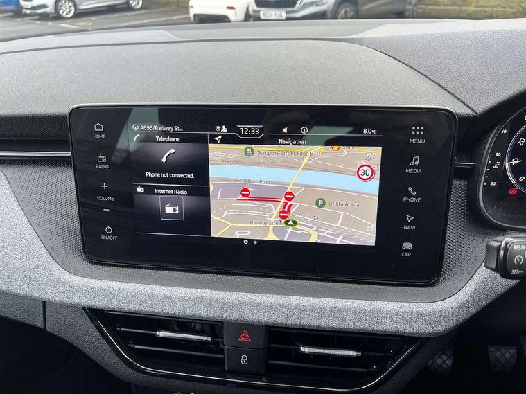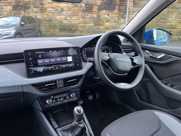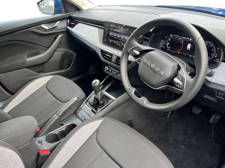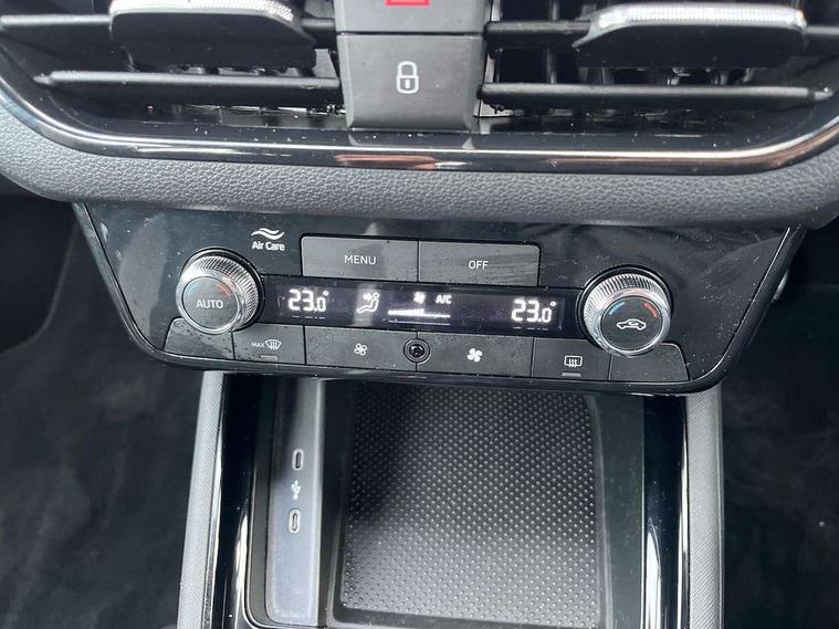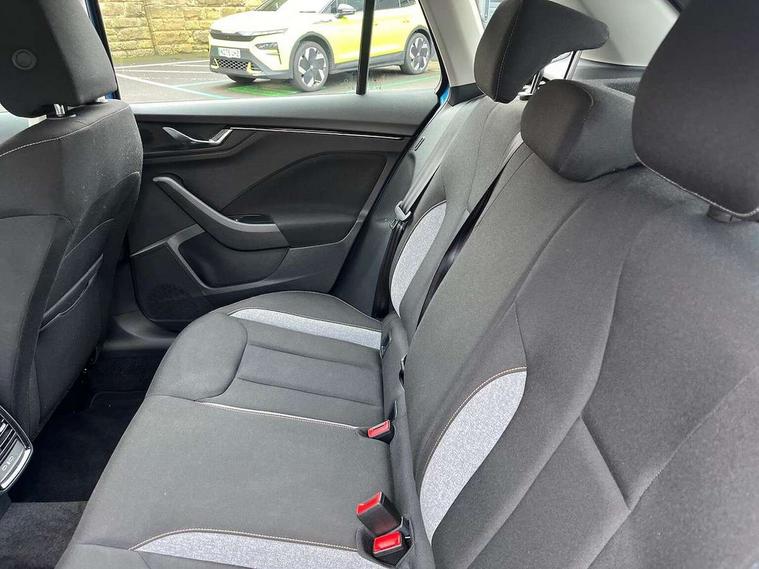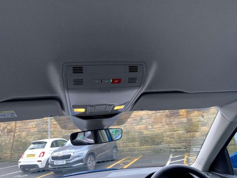 Advanced driver attention and drowsiness monitor, Bluetooth system, E-call, Front assist system, PAS, Rear parking sensors, Rear view camera, Service indicator, Speed limiter, Traffic sign recognition, Virtual cockpit with 10.25" display, Wireless smartlink, 4 USB C ports, 8 Speakers, 9.2" Skoda navigation display, DAB Digital radio, Auto dimming rear view mirror, Automatic headlight control with coming home and leaving home feature, Black roof rails, Body colour bumpers, Body colour door mirrors and handles, Chrome grille surround, Front and rear electric windows, Full LED headlights, Heated rear window, LED brake lights, LED daytime running lights, LED front turning lights, LED high beam, LED low beam, LED third brake light, Rear LED fog light, Rear side wing doors, Rear wiper, Ticket holder inside windscreen, 12V socket in luggage compartment, 3 seat bench in 2nd row, Black hotstamping, Cargo elements, Chrome inner door handles, Driver and passenger sun visors with vanity mirror, Dual zone climate control, Front and rear roof lights, Front centre armrest, Front head restraints, Glove compartment with illumination, Height adjustable driver seat, Height adjustable front passenger seat, Ice scraper, Inner circulation control with pollen filter, ISOFIX on front passenger seat, Isofix preparation for back seats, Krepp recycled decor inserts, Leather gearknob and handbrake lever, Loft cloth upholstery, Manual lumbar support for front seats, Net package and top tether hooks in boot space, Net under rear shelf, Overhead glasses storage compartment, Pocket on the back of both front seats include mobile phone pockets, Rake/reach adjustable steering wheel, Reading lights, Satin black door inserts, Single front passenger seat, Textile floor mats, Third rear headrest, Top tether for front passenger seat, Umbrella in driver's door, 3x3 point rear seatbelts, Airbags - driver and front passenger, Disc brakes, ESP, Extended and predictive pedestrian/cyclist protection, Front passenger airbag deactivation switch, Front side airbags with curtain airbags, Hill hold control, Manual leather parking brake, Manual rear child locks, One tone horn, Seatbelt reminder for driver an co-driver, Traction control, Tyre pressure monitor, Anti-theft alarm system with interior monitoring, backup horn, towing protection and remote central locking with SAFE system, Anti-theft wheel bolts, Electronic engine immobilizer,