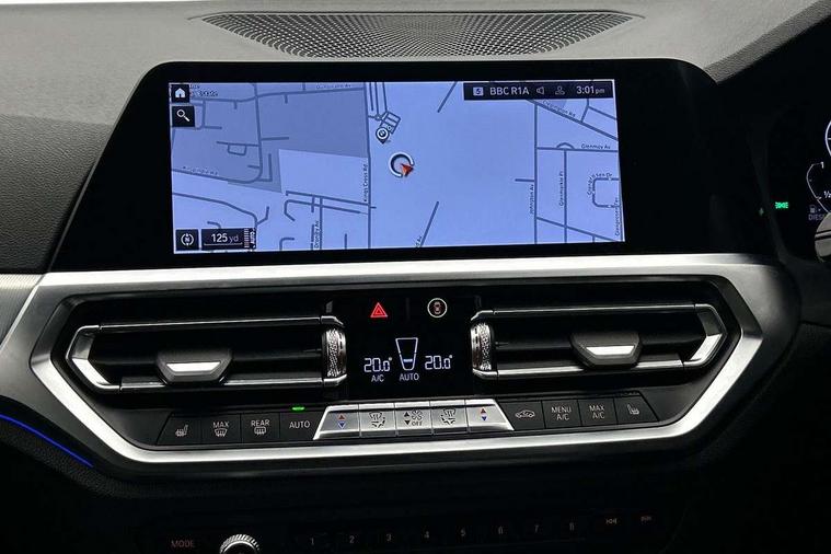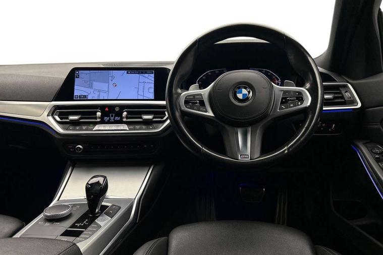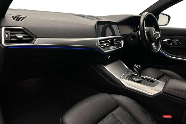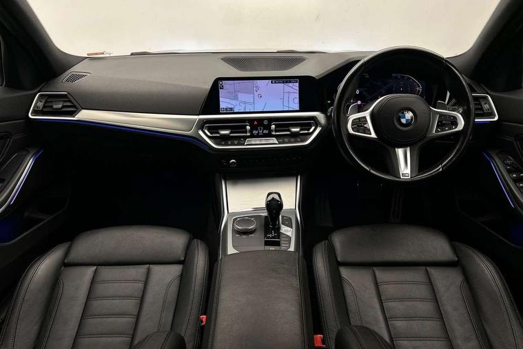 Active guard plus, Attentiveness assist, Bluetooth hands free facility with USB audio interface with audio streaming, BMW iDrive controller on centre console, BMW Live Cockpit Professional Nav with 12.3" instrument display + 10.25" display, Intelligent Voice Assist, BMW OS 7, HDD, 2USB, 4G LTE connect, BMW service history, BMW Teleservices, Brake pad wear indicator in front and rear, Check Control warning system for monitoring of lights and door/luggage compartment open warning, Condition based service, Cruise control with brake function + speed limiter, Electric power steering with Servotronic steering optimised at all speed ranges, Instrument cluster with speedometer with mph readout, tachometer, fuel gauge and oil temperature gauge, Integrated owners handbook, Oil sensor for level and grade, warning by check control system, On board computer - average speed+fuel consumption, service interval, clock/date, odometer/trip meter, outside temperature display and ice warning, Optimum shift indicator, Personal Profile - automatic lock when driving away selectable, Variable sport steering, 48V Mild hybrid technology, Balanced 50/50 weight distribution, Battery cut-out switch, Diesel particulate filter, Drive performance control - ECO PRO, comfort and sport modes, Electronic differential lock control (EDLC), Incorrect fuelling protection, Larger capacity fuel tank, M sport suspension, Stroke dependent dampers, DAB tuner, Electronic service booklet, Stereo speaker system with 2 mid range speakers in the front door trims and rear parcel shelf + 2 central bass speakers underneath the front seats, Acoustic glazing, Active airstream chrome frame kidney grille with 8 high gloss black vertical slats, Automatic headlight beam throw control with load dependent regulating reaction, dynamic compensation of braking dive and acceleration squat, Black roof mouldings, Body colour door handles, Body colour front and rear bumpers, Body colour fuel filler flap, Body colour mirror caps with bottom segment in matt black, Dynamic brake lights, Electric windows - front and rear, with open/close fingertip control, anti-trap facility and comfort closing, Exhaust tailpipe - split left and right, Exterior mirrors - electrically folding with anti-dazzle, Fading support, Front and rear bumper system with replaceable deformation elements, Front black door sill finishers with BMW designation, Green tinted heat protection glazing, High gloss shadow line exterior trim, Interior rear view electrochromatic mirror with automatic anti dazzle function, LED daytime running lights, LED front fog lights, Lightweight engineering, M designation on front side panels, left and right, Matt black exterior B pillar, Model designation on right side of tailgate, Rain sensor with automatic headlight activation, Shark fin antenna, Two part LED tailights in L-shape with components in smoked glass, brake light, LED turn indicator and rear fog light, Visible VIN plate, Welcome lights in interior and door handle area, Windscreen wipers with integrated washing jets, 12V power socket in front storage compartment, 2 front cupholder in centre console with clamping elements and matt black inlay, 3 rear seats with non folding headrests with 3 point seat belts, 3 zone automatic air conditioning, 4 pieces lashing eyelets in luggage compartment, 40:20:40 split folding rear seat with loading system, Ambient lighting with welcome carpet light, Anthracite headlining, Armrest integrated in front and rear door trim + front centre console armrest, Backrest width adjustment, Centred top Luggage compartment lights, Four grab handles integrated in roof lining, Front and rear door exit lighting (left / right), Front and rear door pockets, Front and rear reading lights, Front and rear velour floor mats, Front head restraints, Front sport seats, Heated front seats, Height adjustable mechanically and infinitely variable steering column, Illuminated armrest storage compartment, Illuminated glove compartment with separate small compartment, Interior lighting - front centre over interior mirror with soft light, rear centre and front and rear footwell lighting, M sport leather steering wheel, Make-up mirror lights, Rear centre armrest with 2 cupholders, Rear centre console with storage compartment and ventilation grille, Sunvisors with vanity mirrors and ticket pocket, Toolkit located in luggage compartment, Connected pack professional - 3 Series Saloon/Touring, M sport exterior styling pack - 3 Series Saloon/Touring, 2 tone horn, BMW emergency call, Brake energy regeneration, Braking pre-tensioning, Child proof locking system in rear door, Child seat ISOFIX attachment rear outer seats, Coasting in idle in ECO PRO mode, Crash sensor activating of airbags, Unlocking doors, hazard warning lights, interior light, safety battery terminal, Driver and front passenger side airbags, integrated in the door side seat backrest bolsters for all seat variants, Driver/Front Passenger airbags, Dry braking, Dynamic brake control, Dynamic stability control + (DSC+) - Anti-lock Braking System (ABS) with brake assist and cornering brake control + Automatic Stability Control (ASC), Dynamic Traction Control - DTC, Electric parking brake including automatic hold function and automatic release of the parking brake when driving off, Front passenger manual airbag deactivation, Head airbags for all 4 outer seats, Hill start assist, Seat belt security check for driver and front passenger, Side impact protection, Three 3 point seat belts on all seats including front belt stopper, pyrotechnic belt tensioners and belt force limiters, Tyre pressure monitoring with three level warning strategy, Ventilated front and rear disc brakes, Warning triangle and first aid kit, Alarm system (Thatcham 1) with remote control and electronic engine immobiliser, Central locking switch for all doors, fuel filler cap and luggage compartment, Remote control with integrated key one button open/close vehicle and windows, sol