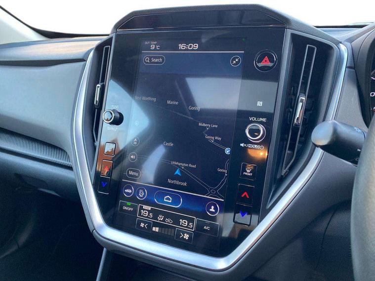 Android Auto, Bluetooth, Driver monitoring system, eCall emergency call system, PAS, Rear view camera, Satellite Navigation, SI-Drive (Subaru Intelligent Drive) intelligent mode & sport mode, Voice recognition, Wireless Apple car play, X-Mode (2 modes) and hill descent control, 6 speakers, DAB radio, Subaru 11.6" infotainment system, Auto dimming rear view mirror, Automatic headlights, Automatic rain sensing windscreen wipers, Automatic rain sensing wipers, Electric front windows with one touch auto up/down, Electric rear windows, Front LED fog lamps, Gloss black mirror caps, Headlight washers, High beam assist, LED DRL, LED Headlights, Lower body cladding, Power folding door mirrors with built-in LED indicators, Power sliding and tilt adjustable sunroof, Raised roof rails in black finish, Rear fog light, Rear privacy glass, Rear side wing doors, Rear wiper, Roof spoiler, Shark fin antenna, Steering responsive headlights, Third brake light, Wheel arch cladding, Windscreen wiper de-icer, 10-way power adjustable driver's seat with lumbar support, 12V power outlet, 2 cupholders in front centre console, 3 seat bench in 2nd row, 60/40 split folding rear seat, 8-way power adjustable passenger's seat, Door pockets with bottle holder, Driver and passenger illuminated vanity mirror, Dual zone automatic air conditioning system with anti-dust filter, Front head restraints, Heated front seats, Illuminated front row dual USB-A and USB-C ports with auxiliary audio input jack, Illuminated second row dual USB-A and USB-C ports, ISOFIX adapted child seat anchors with tether anchors, Leather 3-spoke steering wheel, Leather gearshift knob, Map lights, Paddle shifts, Rear seat headrests for 3 seating positions, Retractable and removeable parcel shelf, Single front passenger seat, Synthetic leather upholstery, Tilt/telescopic adjustable steering wheel, Eyesight version 4.0 pack - Subaru, Rear vehicle detection pack - Subaru, 3x3 point rear seatbelts, ABS, Auto hold function, Child proof rear door locking, Drivers knee airbag, Electric parking brake, ESP, Front and rear curtain airbags, Front passenger seat cushion airbag, Front side airbags, Subaru advanced front airbag system, Tyre pressure monitoring system, Vehicle Dynamics Control System (VDC), Keyless entry with start/stop button, Remote control central locking, Thatcham category 1 alarm + immobiliser, 18" diamond turned alloy wheels, Tyre repair kit,