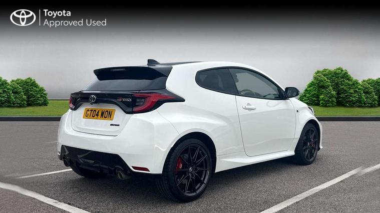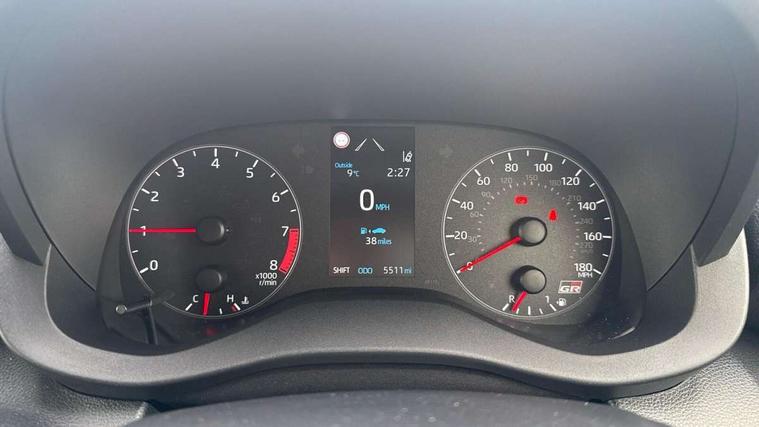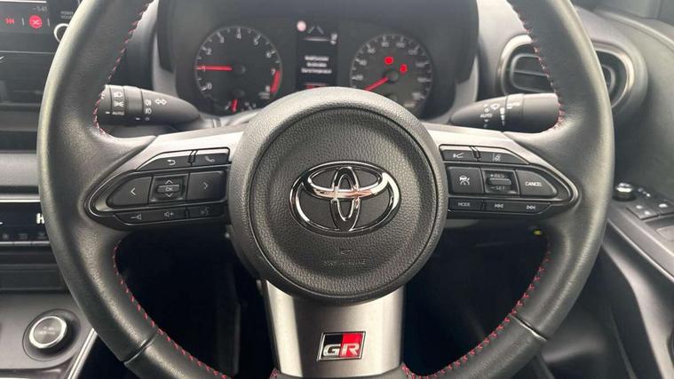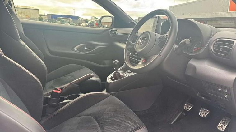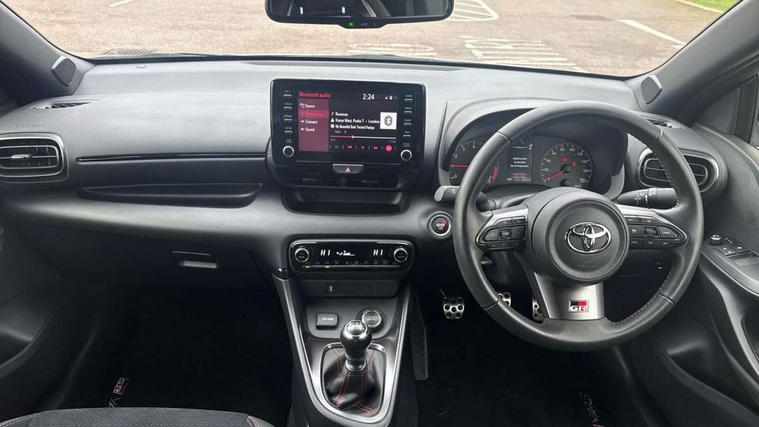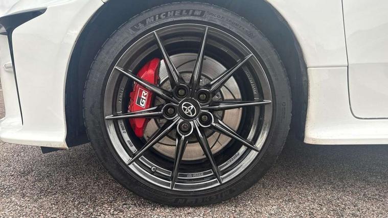 Apple car play/Android Auto, Coloured TFT multi informational display, eCall emergency system, Emergency steering assist, Intelligent adaptive cruise control, Lane Departure Alert (LDA) switch on steering wheel, Lane trace assist, Power Steering, Pre-collision system (PCS), Reversing camera, Road sign assist - RSA, Circuit tuned GR suspension, Double wishbone rear suspension, GR-Four AWD switch, MacPherson front suspension, Vehicle Stability Control (VSC), 6 speakers, 8" Multimedia display touch screen, DAB Digital radio, Toyota touch 2 multimedia system, USB connection, Adaptive high beam assist, Adaptive LED Headlights, Air intakes for brake cooling, Auto dimming eletrochromatic rear view mirror, Auto windscreen wipers, Automatic headlights, Automatic headlights cut-off, Automatically retractable door mirrors, Black contrasting colour door mirrors, Black rear spoiler, Body coloured door handles, Body coloured rear bumper, Carbon fibre roof wrap, Door scuff plates, Dual exhaust pipes, Electric adjustable heated door mirrors, Follow me home headlights, Front auto power windows with anti jam protection, Gloss black GR front bumper, GR badges 1 front, 1 rear and 2 sides, GR lower front grille, Integrated LED indicators in door mirrors, LED daytime running lights, LED fog lights, LED High mounted stop lamp, LED rear combination lights, Piano black side air vents, Privacy glass on rear and back windows, Rear auto power windows with anti jam protection, Rear window defogger, Shark fin antenna, 12V socket in front, 2 rear head restraints, 3 spoke leather sports steering wheel, 60/40 split folding rear seat, Aluminium pedals, Clean air filter, Driver and passenger headrests, Driver's sun visor with vanity mirror, Dual zone automatic air conditioning, Front bottle holders, Front cup holders, Front map light, Front sports seats, GR floor mats, GR logo on steering wheel, GR Ultrasuede leather upholstery, Height adjustable driver's seat, Isofix child rear seat restraints, Leather gearshift, Leather handbrake, Manual slide adjustable on driver's and passenger seats, Microphone on front personal light, Multimedia switch on steering wheel, Pollen filter, Red stitching on gearshift, Red stitching on handbrake lever, Satin chrome interior door handles, Soft tonneau cover, Ticket holder on driver's sun visor, Tilt/telescopic steering column, ABS with Brake Assist, Airbags - driver and front passenger, Driver and passenger side airbags, Emergency brake light system (EBS), Front passenger airbag on/off switch, Front seatbelt reminder, Hill start assist control (HAC), Rear passenger airbag, Rear seat belt reminder, Red brake callipers, Red sport front and rear brake pads, Start holding control, Torsen limited slip differentials x2, Tyre pressure warning system, Alarm/immobiliser, Keyless smart entry with push button start, 18" 10 spoke forged alloy wheels with Michelin pilot sport, Tyre repair kit,
