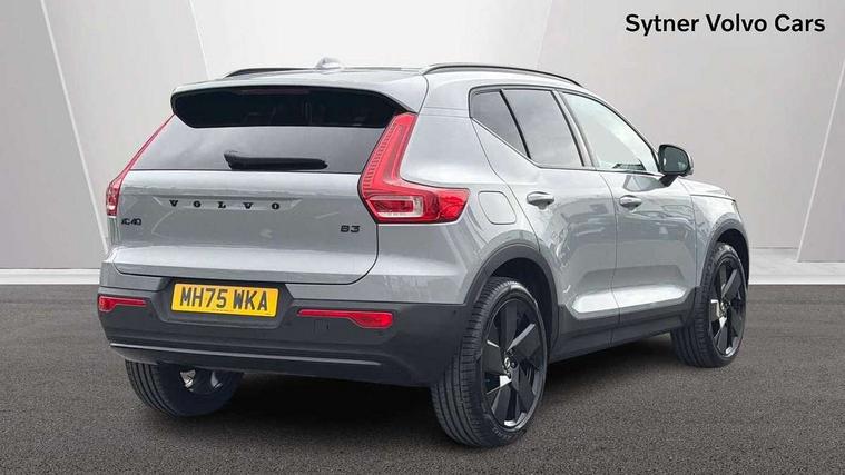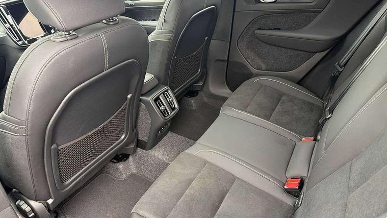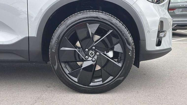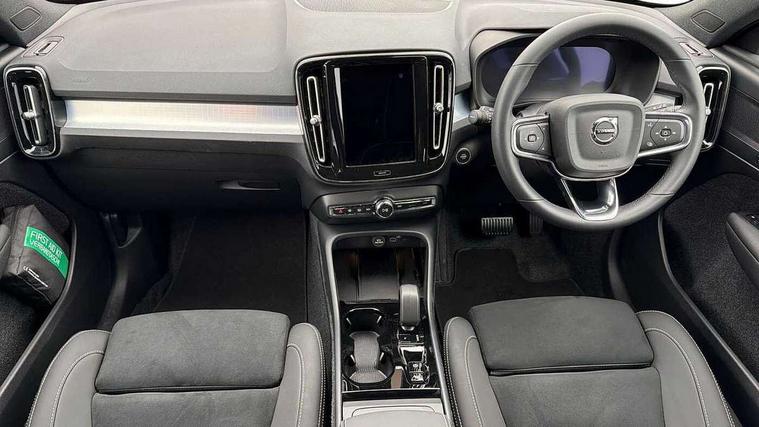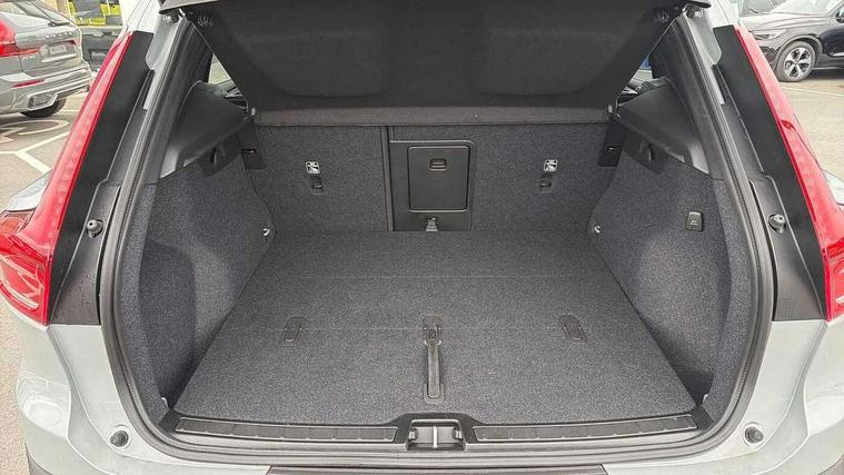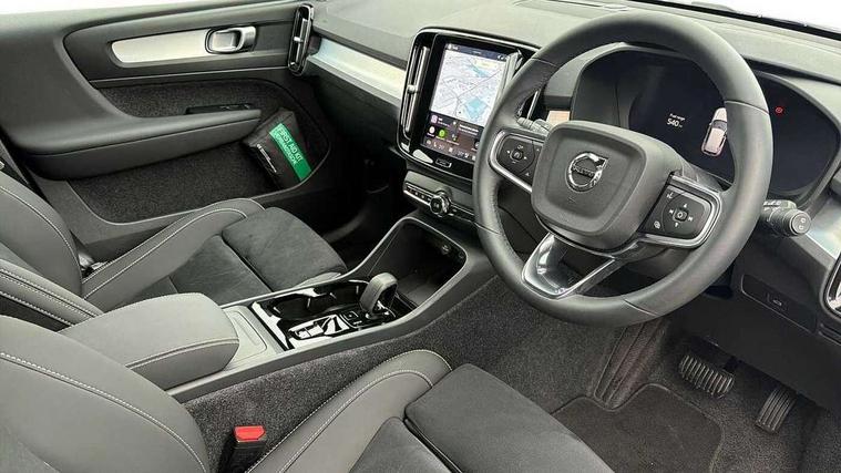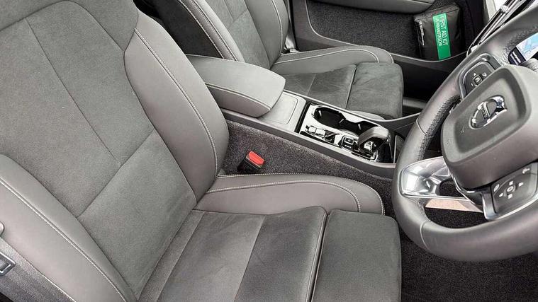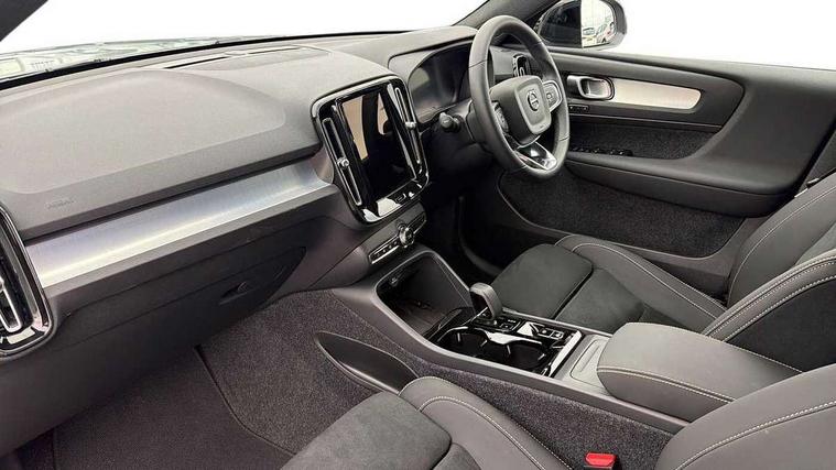 12.3" Progressive Driver Display, 360 degree surround view parking camera with side proximity sensors, 9" centre console portrait touch screen, Adjustable steering wheel force, Android auto (Wired), Apple carplay (wired), Bluetooth handsfree system, Driver alert control, Driver assistance (pilot assist and adaptive cruise control), Driver awareness - Blind spot information system with steer assist, cross traffic alert with autobrake and rear collision warning and mitigation, E-call, Front and rear parking sensors, Front park assist, Google automotive services - Enabled entertainment apps, navigation with google maps, voice recognition with google assistant, Hands free power tailgate, Intelligent speed assistance, Lane keeping aid, Oncoming Lane Mitigation, Speed sensitive steering, Volvo cars services with app - Driving journal, emergency and breakdown call, engine remote start, remote door locking/unlocking and vehicle dashboard, Wireless/Inductive Mobile Phone Charging, Automatic transmission with start/stop and manual change functions, Dynamic chassis, DAB Digital radio, Steering wheel mounted remote controls, Active bending pixel LED headlights with adaptive shadow technology, Active high beam incorporating daytime running lights, Adaptive brake lights with high level LED brake lights, Auto dimming feature for exterior door mirrors, Auto dimming interior mirror, Auto folding and heated power door mirrors, Automatic headlamp levelling, Dark tinted windows - rear side windows and rear screen, Front aluminium tread plates, Front and rear electric windows, Headlight cleaning system, High gloss black front and rear skid plate, High gloss black front bumper deco, High gloss black front grille strikethrough and ironmark, High gloss black rear model, engine and volvo logo badges, High gloss black window trim, Home safe and approach lighting, Integrated roof rails in high gloss black, LED front fog lights with cornering function, Puddle lights, Rain sensor with automatic windscreen wiper activation, Rear side wing doors, Rear wiper, Roof antenna, Roof spoiler, Visible VIN plate, 12V socket in front tunnel console and luggage compartment, 2-Zone electronic climate control with CleanZone air quality system and pollen filter, 3 seat bench in 2nd row, 3 Spoke tailored steering wheel with chrome trim, 60/40 versatile split folding rear seat, Centre console cupholders and storage, Charcoal carpet and floor mats, Charcoal headlining, Connect suede textile/microtech upholstery, Flexible load floor and grocery bag holder, Front headrests, Front seat cushion extensions, Glovebox bag hook, Heated front seats, Height adjustable passenger seat, Height/reach adjustable steering column, High gloss centre tunnel deco, High level illumination - Front door pocket, front side step (under door), tailgate, instrument panel, front door inlay, rear courtesy&reading lights, Integrated waste bin, Isofix attachments on outer rear seats, Load cover, Load protection net, Mid level illumination - Front footwell, luggage & glovebox compartment, front cabin courtesy & reading lights, illuminated vanity mirrors+ticket holder, Multi directional lumbar support for driver and passenger seat, Power driver seat with memory + exterior mirrors memory, Rear armrest with cupholders, Rear headrests, Single front passenger seat, Underfloor luggage compartment storage, Climate pack without heated front seats - XC40, 3x3 point rear seatbelts, City safety with steering support with Pedestrian + cyclist + front collision warning with full auto brake and rear auto brake, Driver and passenger airbags, Drivers knee airbag, Electronic parking brake with auto hold, First aid kit, Front and outer rear seatbelt reminder and pretensioners, Front seats SIPS airbags, Hill descent control - Off-road drive mode, Hill start assist, IC (Inflatable Curtains) - Full Length, Passenger airbag cut-off device, Power child locks on rear doors, Road sign information display, Run off Road Protection, SIPS (Side Impact Protection System), Slippery road and hazard light alert, Stability and Traction Control with Spin control, Engine Drag Control and Corner Traction Control, Tyre pressure monitoring system, Vehicle deceleration control with Anti-lock Brake System, Electronic Brake Distribution and Emergency Brake Assist, Warning triangle, WHIPS whiplash protection system - front, 2 x Key integrated remote control central locking including with deadlocking system and auto open/close windows, Anti-theft alarm including immobiliser/volume sensor + level sensor, Keyless drive includes keyless entry and keyless start, Locking wheel nuts, 20" 5 spoke high gloss black alloy wheels,