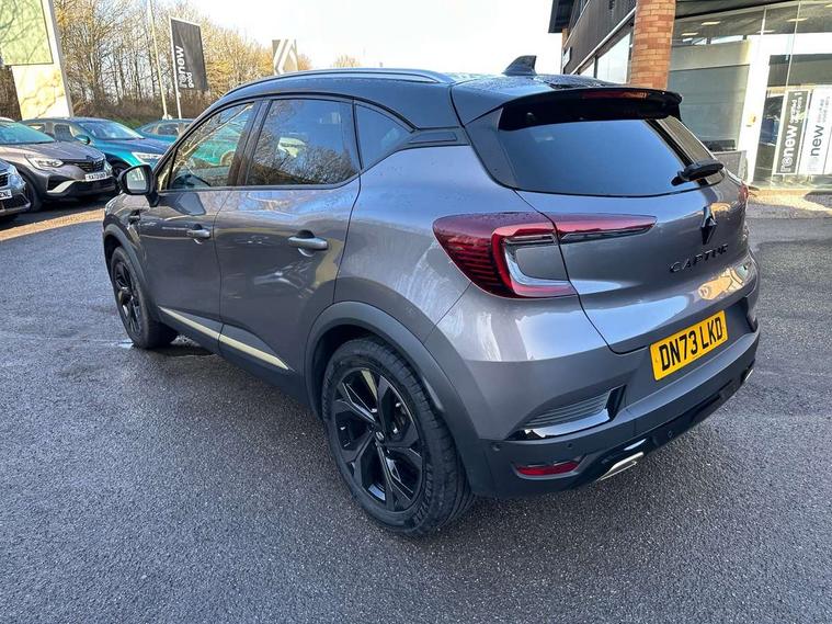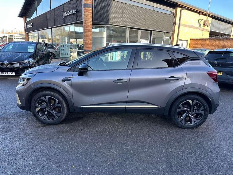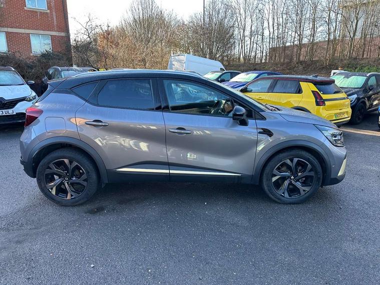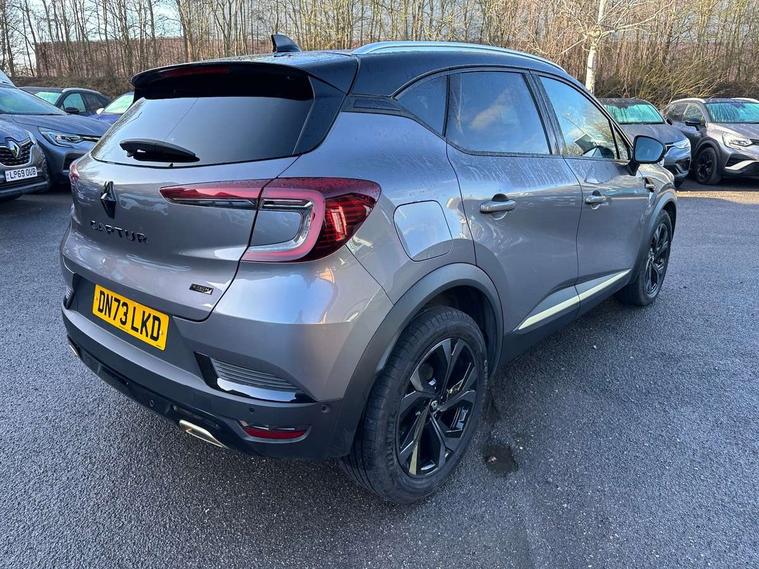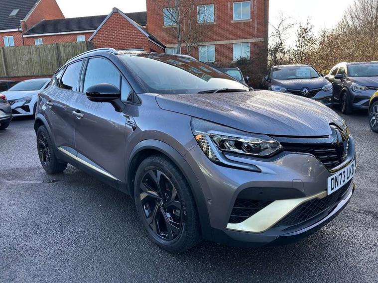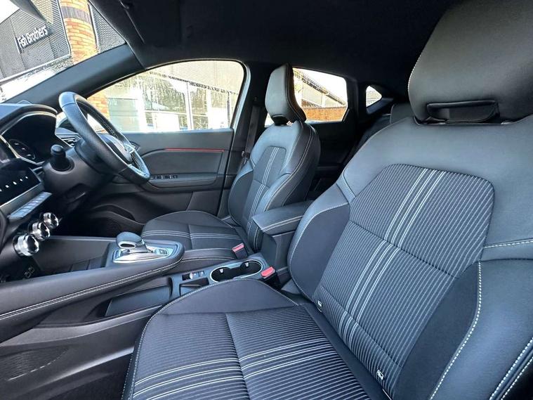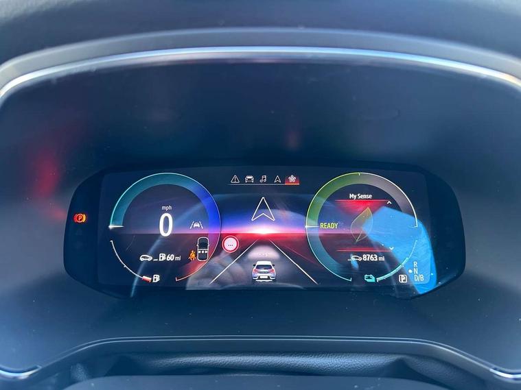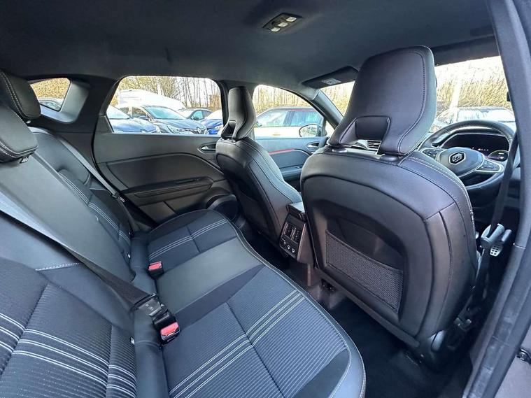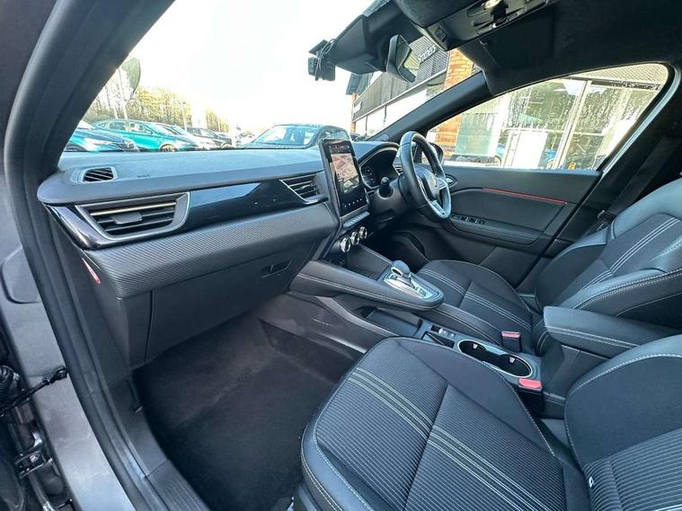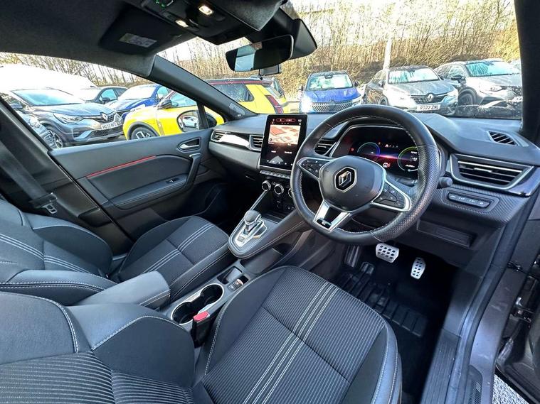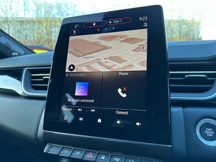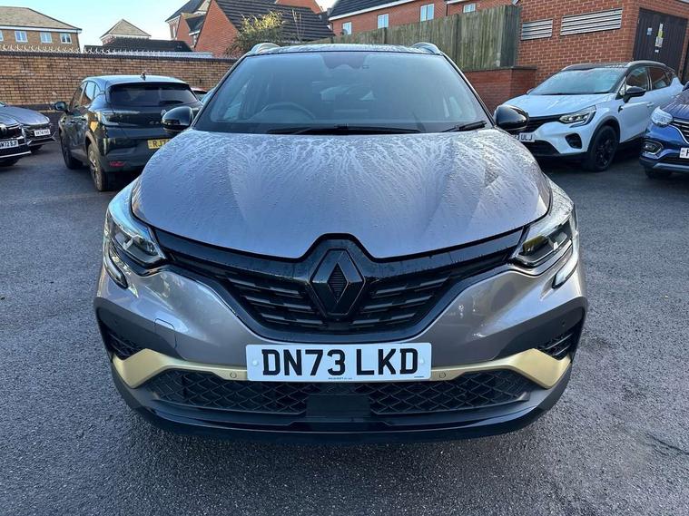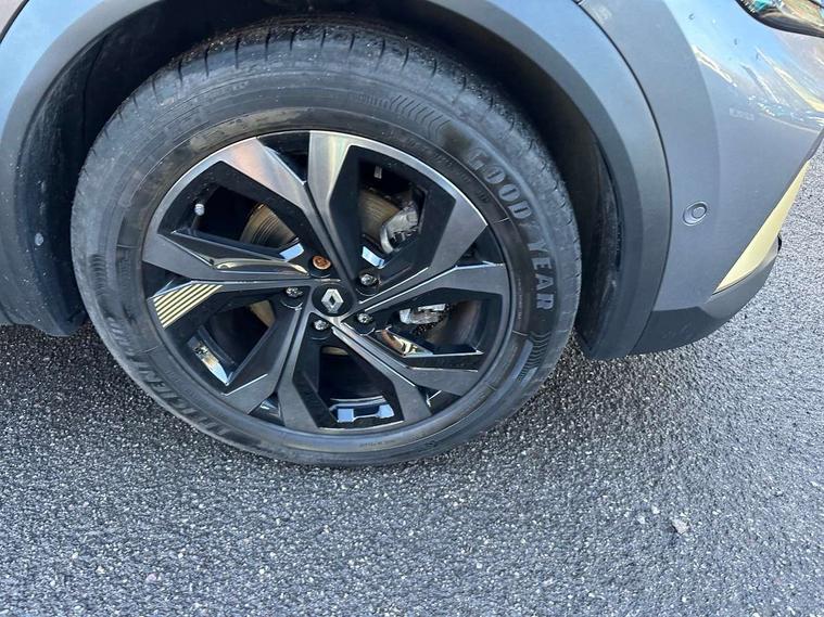 360 surround camera, Blind spot warning, EasyLink 9.3" portrait touchscreen with navigation, google search and traffic information, Eco mode, EV button to activate pure mode, Full digital virtual cockpit - 10" TFT colour display, Gear change indicator, Hands-free parking, Lane departure warning system, Lane keep assist, Multisense with 3 driving modes + 8 ambient lighting colours, Renault automatic emergency assist, Renault Easy Drive - Adaptive cruise control with Stop and Go and Lane centering, Smartphone integration compatible with Apple CarPlay and Android Auto, Traffic sign recognition with over speed prevention, Trip computer, Variable assistance power steering, BOSE sound system with 9 speakers, DAB Radio with Bluetooth and USB, 2 reverse gear LED lamps and 1 rear LED fog lamp in the bumper, Aluminium Renault sport door sills, Auto dimming rear view mirror, Automatic front wipers with rain sensors, Automatic headlights, Automatic high/low beam, Black 'Renault' logo at the front and rear, Black side door protection with warm titanium effect, Body coloured door mirrors, C Shaped LED front and rear lighting signatures with 3D effect on the rear lights, Day time running light, Double chromed exhaust tailpipes element, Drivers one touch window with anti-pinch feature, E-TECH Badging, E-Tech engineered front bumper with gold F1 blade, Extra tinted glass in rear windows and tailgate, Frameless rear view mirror, Front and rear electric windows, Front fenders decopart with shinny black insert, Front grille with shiny black upper trim, Full LED headlights with LED rear lights, Gold E-Tech badge on hatch door, LED high level brake lights, LED rear fog lights, LED turn indicators on door mirrors, Longitudinal roof bars, Rear side wing doors, Rear wiper, Shark fin antenna, Shiny black front and rear skid plate, 60/40 split and fixed base rear seat bench, Aluminium pedals, Automatic climate control with one touch demist function and air quality regulator, Central rear LED rooflight with 3 reading lights, Centre console storage tray, Dark grey interior roof lining, E-TECH Engineered leather steering wheel with gold E-Tech badge, E-Tech engineered leather/suede upholstery, Flying console with e-shifter, Front head restraints, Gold detailing on the dash and steering wheel, Gold stitching on the door panel, Heated steering wheel, Heating system with pollen filter, Height adjustable driver's seat, Height adjustable passenger seat, Height/reach adjust steering wheel, ISOFIX child seat fixing points on rear outermost seats, LED front roof lights, Modular boot floor, Rear head restraints, Single front passenger seat, Sliding rear bench, 3 rear seatbelts, ABS+EBA, AEBS - active emergency braking system, B Brake Mode - One pedal driving with increased regenerative braking, Distance warning alert, Driver and front passenger and 3 rear passengers seatbelt reminder, Driver and front passenger, side, head and curtain airbags, Driver height adjustable seat belt, Electric parking brake with auto hold function, Electronic stability control, Front dash warning indicator in case of heavy braking, Front driver and passenger side airbag deactivation, Hill start assist, Manual passenger airbag deactivation function, Rear door and window child locking function for rear door, Tyre pressure warning light, Anti drill door locks and locking fuel cap, Central door locking, Deadlocking system, Hands free keycard with push button and start/stop function, RAID (Renault Anti-Intruder Device) automatic door locking, Black soft touch dashboard, 18" E-Tech engineered le castellet diamond cut alloy wheels with gold inserts, Tyre inflation kit,
