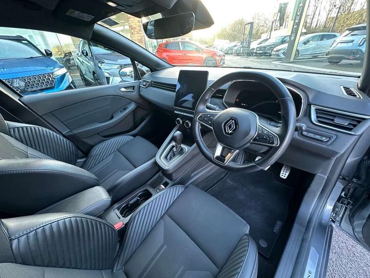 10" customisable digital driver display, Active cruise control with stop and go + speed limiter, Apple car play/Android Auto, Blind spot warning, Driver attention warning, Easy link 9.3" touchscreen with built in navigation + Wifi smartphone integration plus, Eco mode driving function, Emergency call system, Front park assist, Front parking sensors, Lane departure prevention, Lane departure warning system, Lane keep assist, Multisense 3 driving modes including ambient lighting, Over speed prevention, PAS, Rear cross traffic alert, Rear park assist, Rear parking sensors, Rear view camera, Saftey shield [button for personalisation configuration of key ADAS features], Start/stop system, Traffic sign recognition, Wireless phone charger, 2 USB ports, Arkamys speakers - x6 inc. 2 boomer, 2 tweeter and 2 bicone, Bluetooth, 1x jack, 1x aux socket, DAB/FM Radio, Automatic headlights, Automatic high / low beam, Automatic windscreen wipers, Black auto folding wing mirrors with defrosting and temperature gauge and LED indicator, Body colour bumpers, Body colour door handles, Electric rear windows, Electrically adjustable door mirrors, Electrochromatic frameless rear view mirror with light and rain sensor, Exhaust pipe, Exterior rear hidden door handles, Front and rear LED roof light x 2, Front fog lights, Full LED front and rear headlamps integrating daytime running lights at the front and rear, Heated rear windscreen, LED rear signature lighting, LED third brake light, Matte shadow grey F1 blade, One touch electric front windows, Rear brake light, Rear side wing doors, Rear wiper, Shadow grey insert on lower side doors, Shadow grey side window surrounds, Shadow grey upper grille, Shark fin antenna, Tinted rear windows, 3 rear height adjustable headrests, 3 seat bench in 2nd row, 60/40 split and fixed base rear seat bench, Aluminium pedals, Automatic air conditioning, Black armrests in door panel, Centre console armrest, Fabric seat with synthetic leather detailing upholstery, Floating console with storage, Heated front seats, Heated steering wheel, Height adjustable front headrests, Isofix system on outer rear seats, Mechanical height adjustable front seats, Power supply jack, Single front passenger seat, Sun visor without light, Top grain synthetic leather steering wheel with blue stitching, 3 point seatbelts on all rear seats, ABS, Automatic emergency braking system with emergency brake assist, Child locks on rear doors, Curtain airbags, Distance warning alert, Driver and passenger airbags, Electronic brake force distribution, Electronic parking brake with auto hold, ESC (Electronic Stability Control), Front passenger airbag deactivation, Front side airbags, Height adjustable passenger seatbelt, Hill start assist, Seatbelt reminder, Tyre pressure monitor, 2x Black keys, Hands free key card with push button, start and stop function, RAID (Renault Anti-Intruder Device) automatic door locking, Superlocking, Dark interior roof trim, 17" Esprit alpine diamond cut alloy wheels,