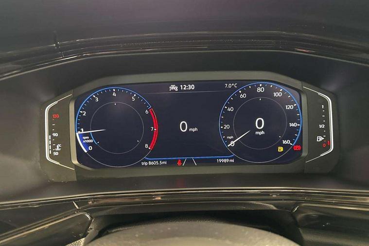 'Lights On' Reminder warning buzzer, Adaptive cruise control including front assist, forward collision warning, autonomous emergency braking, speed limiter, Blind spot monitoring, Bluetooth telephone and audio connection for compatible devices, Car information display, Digital cockpit, Driver alert system, eCall emergency call system, Lane assist, Low washer fluid warning light, Multifunction computer with visual gear change recommendation for fuel consumption, Operating permit alteration, Power assisted speed sensitive steering, Speedo, rev counter, electronic odometer, trip, service interval display, exterior temperature and fuel gauge, Stop/start system, Warning sound and light for doors and tailgate open, Warning sound and light for front seatbelts unfastened, We Connect Go Dongle, Wireless Car net app connect with Apple CarPlay, combined functionality of Apple CarPlay/Android Auto and MirrorLink, Battery regeneration during braking, Misfuel prevention device, 2x USB connection with USB charging sockets and in rear centre console, DAB Digital radio receiver, Diversity antenna for FM reception, Multi device interface (MDI) with USB connection, Music playback - MP3, WMA and AAC files, Premium USB cable for Apple or Android smartphone compatibility, Simultaneous pairing of 2 compatible mobile devices, Title and cover art display, Automatic hazard lights activation under emergency braking, Black door mirrors, Black roof rails, Body colour door handles, Body coloured bumpers, Dusk sensor + automatic driving lights, Electrically foldable, adjustable and heated door mirrors with reverse activated kerb view adjustment on passenger's side, Front and rear electric windows, Front fog lights with static cornering function, Galvanised body, Heated rear window, LED third brake light, Lower door sills and door pillars in black, Radiator grille with high gloss surface and chrome strip, Rear fog light on one side, reversing light on both sides, Rear lights incorporating LED technology, Rear side wing doors, Rear tinted glass 65% approx light absorbing from B pillar backwards, Rear window aerial, Rear windscreen washer and wiper with interval delay, Reflectors in all doors, Tailgate with integrated roof spoiler, Windscreen wipers/ intermittent wipe + 4 position delay, 12V Accessory socket in centre console, 3 rear head restraints and 3 rear three point seat belts with ECE label, 3 seat bench in 2nd row, 60/40 split folding rear seat backrest, Comfort front sport seats, Diag cloth upholstery, Drawer under drivers seat, Driver and front passenger sunvisor with vanity mirror, Driver's sunvisor with ticket holder, Dust and pollen filter, Front + rear carpet mats, Front and rear reading lights X 2, Front centre armrest with storage compartment, Front seat back storage pockets, Front seats with adjustable lumbar support, Glovebox, Heating and fresh air system with 4 stage blower, Height/reach adjust steering wheel, Instrument lighting white adjustable panel illumination, Interior light with delay, Isofix child seat preparation for 2 rear child seats, Luggage compartment cover, Luggage compartment lighting, Manual air conditioning, Moveable and foldable Rear bench seat, Storage compartment in drivers and front passengers door, Three spoke multi-function leather trimmed steering wheel and gearknob, Variable boot floor, Anti-lock Braking System (ABS) with Hydraulic Brake Assist (HBA), Automatic post collision braking system, Driver and front passenger safety-optimised head restraints, Drivers and Front Passengers airbags with front passengers airbag deactivation switch, ESC with EDL, ASR, EDTC and trailer stabilisation function, Front and rear curtain airbags, Front seat side impact airbags, Height-adjustable front three-point seat belts with tensioners, Hill start assist, Pre crash preventive occupant protection, Rear door child safety locks, Rigid safety cell with front and rear crumple zones, Single torn horn, Tyre pressure loss indicator, Volkswagen roadside assistance, Alarm with interior protection and deactivation via infotainment system, Child security locks in rear doors, Electronic engine immobiliser, Remote tailgate unlocking using key fob, Decorative inserts transition high gloss black/platnium grey, 17" Manila black diamond turned surface alloy wheels + anti theft wheel bolts, Breakdown kit,