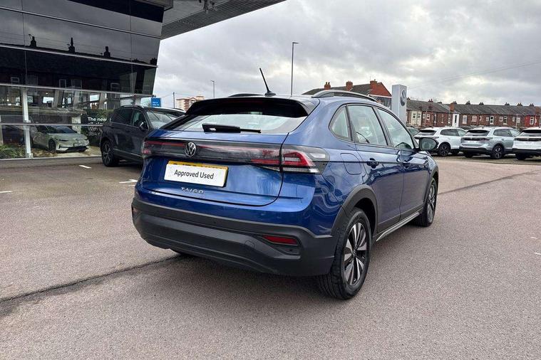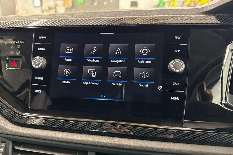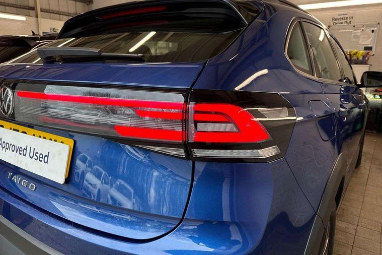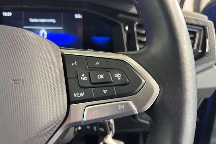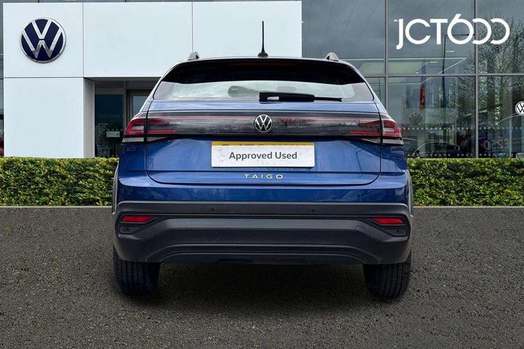 App-Connect including App-Connect Wireless, Driver alert system, e-Call (emergency call), Power Steering, Travel assist including emergency assist, Washer fluid level indicator, Wireless Charging including Bluetooth, Start-stop system with battery regeneration (recuperation - energy recovery during braking), Digital radio reception (DAB+), Diversity antenna for FM reception, WeConnect plus, Ambient lighting with logo projection, Aspherical driver's exterior mirror, Auto headlights, Body coloured bumpers, Body coloured exterior mirror housings and door handles, Electric windows, External USB type C socket and charging sockets, Front fog lamps with cornering function, Headlight range control, Heat insulating glass windscreen, LED headlamps, LED rear combination lamp, LED third brake light, Left convex exterior mirror, Power folding adjustable/heated exterior mirrors and front passenger exterior mirror lowering function, Rear fog light on one side, reversing light on both sides, Rear side wing doors, Rear wash/wipe with intermittent wipe setting, 'Slash/ Austin' Cloth upholstery, 12V socket in centre console, 2 front reading lights, 3 rear head restraints, 3 seat bench in 2nd row, Black carpets, Child seat anchor for child seat system i-Size, 2x top tether and child seat anchor in front on front passenger side, Door and side trim panels in titan black, Driver and front passenger seat height adjustment, Front centre armrest, Handbrake lever handle in leather, Height and reach adjustable steering wheel, Leather trimmed gear knob, Leather wrapped multifunction steering wheel, Luggage compartment floor, Luggage compartment light, Lumbar support for driver's and front passengers seat, Seat covers in titanium black, Single front passenger seat, Split folding backrest with centre armrest and unsplit rear seat bench, Storage compartment under front seats, Sun visors with illuminated vanity mirrors, Chrome Package - Taigo, Drivers assistance pack - Taigo, Light and Sight pack including High beam assist - Taigo, 2 x 3-point seatbelts/outer rear seats with ECE label, 3-point seat belts in front with pretensioner and height adjustment, 3-point seatbelt for centre rear seat, Driver and front passenger airbags with front passenger airbag de-activation, front side and curtain airbags, Driver and front passenger safety-optimised head restraints, Electronic stability control, Extended and predictive pedestrian/ cyclist protection, Front and rear disc brakes, Front curtain and side airbags with center airbag, Hill start assist, Manual rear child locks, Single tone horn, Tyre pressure loss indicator, Anti-theft alarm system with interior monitoring, backup horn, and towing protection, Anti-theft wheel bolts, Lava stone black gloss/matt decorative inserts in dash and front door panels, Low rolling resistance tyres,