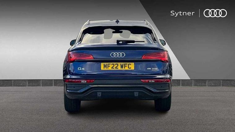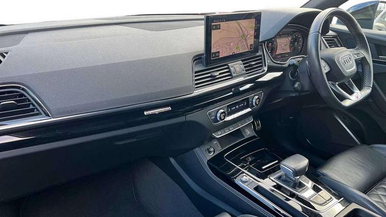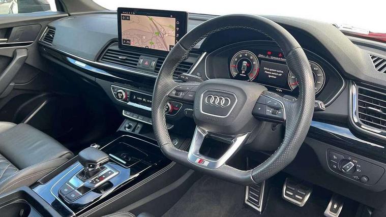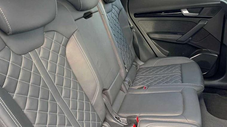 Audi connect safety and service (e-call), Audi connect with Amazon Alexa Integration, Audi drive select, Audi virtual cockpit plus with 12.3" screen and three different layout designs, Audi wireless smartphone interface, Automatic start-stop system with coasting functionality and efficiency programme, Bluetooth interface, Electro - mechanical power assisted steering, MMI navigation plus with 10.1" touch screen, Power tailgate, Reversing camera, Service interval indicator, Voice control system with Audi hotword activation "Hey Audi", 70 litre fuel tank, Quattro on demand, S line sports suspension, DAB Digital radio, Acoustic windscreen, Audi beam with Audi rings logo, Audi matrix LED headlights with dynamic front and rear indicators, Audi rings at front and rear in black, Audi rings decal on rear doors, Auto dimming door mirrors, Auto dimming rear view mirror, Automatic headlights and windscreen wipers, Black door mirrors, Black roof rails, Body colour underbody protection, Chrome plated exhaust trims, Daytime running lights, Door sills in Selenite silver, Electric adjustable/heated/folding door mirrors, Front air inlet surrounds in aluminium, Front and rear electric windows, Headlight washers, High gloss black B pillar trims and triangular rear door trim, High level LED brake light, Rear chrome trim strip below lights, Rear privacy glass and rear side windows, Rear side wing doors, Rear spoiler, Rear wiper, Roof bars, Without model and engine badging at rear, 2 x USB charging port with aux input socket, 3 rear headrests, 4 way electric lumbar support for driver and front passenger, 40:20:40 split folding 3 rear bench seat in 2nd row with rear centre armrest, Black cloth headlining, Comfort front centre armrest, Contrast stitching on seats, steering wheel and gear lever gaiter, Deluxe 3 zone electronic climate control, Electrically adjustable front seats, Fine Nappa leather upholstery with diamond pattern contrast stitching + front sport seats with S embossed logo, Front head restraints, Front/rear floor mats, Gear lever in black leather, Heated front seats, Height/reach adjustable steering column, Illuminated door sill trims with S logo, ISOFIX child seat mounting and top tether, Rear seat bench plus, Removable luggage compartment floor, Single front passenger seat, Stainless steel pedals, Sunvisors with vanity mirrors, Trunk roller cover, Artificial leather pack - Q5, Black styling package - Q5 Edition 1, Extended LED Interior multi coloured Lighting Pack - Q5, 3 point seatbelts on all seats, 6 airbags - Driver, front passenger, curtain and side airbags, Electrically operated child locks on rear doors, Electromechanical parking brake, Electronic stabilisation control including ABS, ASR and EDL, Front and rear brake calipers painted in red, Front passenger airbag deactivation, Hill descent control, Hill hold assist, Multi collision brake assist, Pop-up bonnet for pedestrian protection, Pre sense city, Seat belt force limiter, Seatbelt monitoring, Tyre pressure warning, Warning triangle and first aid kit, Anti theft alarm, Anti-theft wheel bolts, Keyless Go access/ignition system, Remote central locking, Piano black finish inlay,