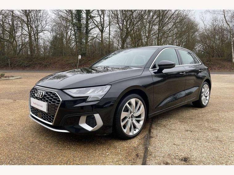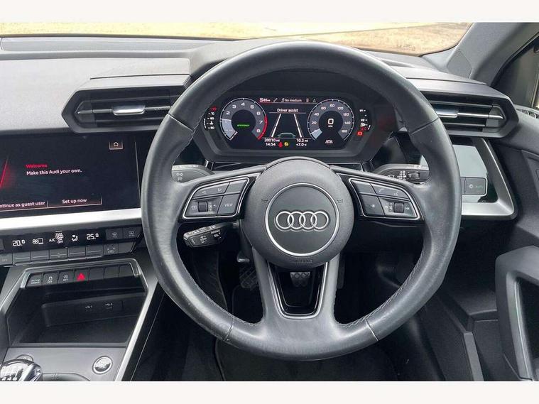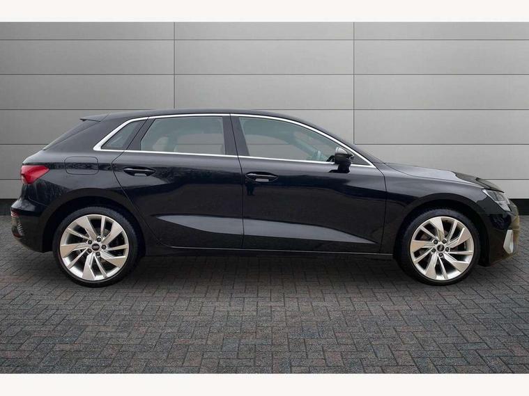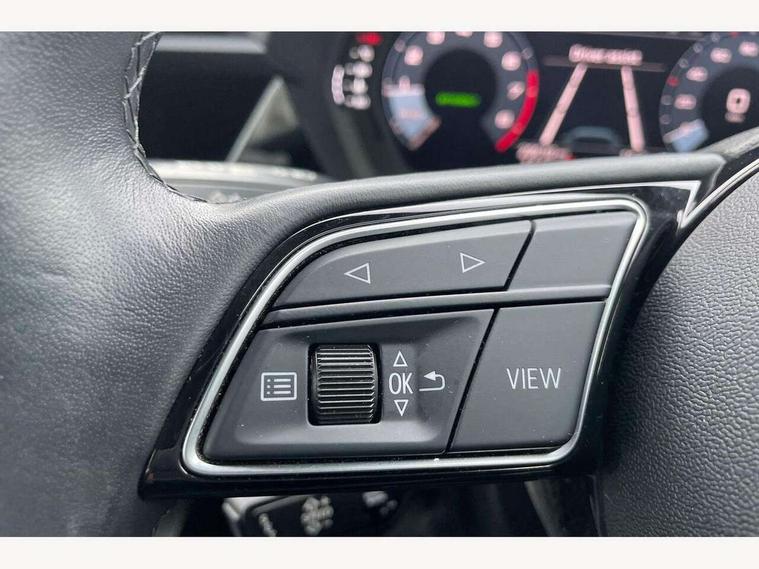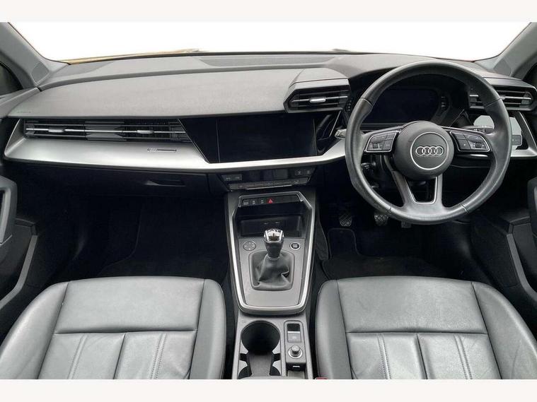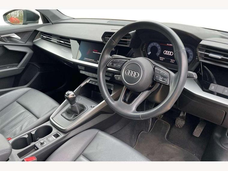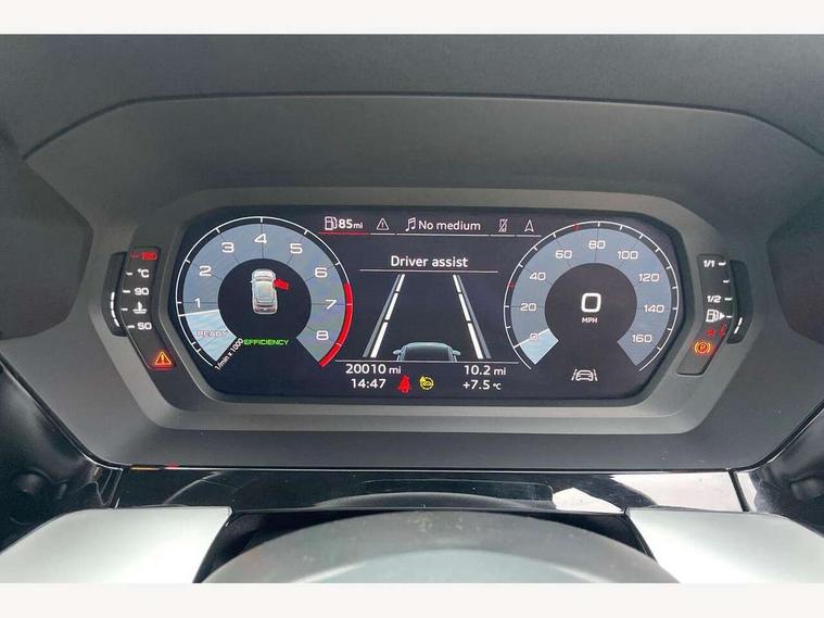 Audi drive select (Auto, Comfort, Dynamic, Efficiency and Individual), Audi smartphone interface, Audi Virtual Cockpit - 10.25" digital and colour instrument cluster, Automatic start/stop system with recuperation, Bluetooth interface, Collision avoidance assistant, Cruise control, e-Call (emergency call), Electromechanical power speed sensitive steering, Lane departure warning system, MMI Navigation Plus with high resolution 10.1" colour touch screen display, Rear parking sensors, Service indicator, Trip computer, Voice control system with natural language interaction, Standard suspension, 2xUSB-C connection with data and charging functions, 6 passive loudspeakers, DAB Digital radio, 3rd brake light, Acoustic glass windscreen, Aluminium window trim, Auto dimming frameless rear view mirror, Body colour exterior mirrors, Body colour roof spoiler, Electrically adjustable/heated/folding/auto dimming door mirrors with integrated LED indications + kerb view function for passenger side, Front electric windows, LED daytime running lights, LED headlights and halogen rear lights, Light and rain sensors, Rear electric windows, Rear side wing doors, Rear window, rear door windows and rear side windows in clear glass, Rear wiper, 12V socket and storage compartment in front centre console, 3 seat bench in 2nd row, 40/20/40 split folding rear seat bench with cupholder, Dual zone electronic climate control, Front and rear centre armrest, Front and rear headrests, Front door sill trims with aluminium inlay, Front/rear floor mats, Height and reach adjustable steering wheel, Interior lighting - Front and rear roof module including reading lights, glove compartment light and right hand side, Luggage compartment floor covering, Manual boot compartment lid, Manually adjustable front seats, Seat side bolsters, Single front passenger seat, Steel grey cloth headlining, Twin leather upholstery, Aluminium interior elements pack - A3 Sportback, Sport styling pack - A3 Sportback, 3x3 point rear seat belts, Audi pre sense front, Driver and front passenger airbag with passenger airbag deactivation, Electronic Stabilisation Control (ESC) including ABS, ASR and EDL, First aid kit with warning triangle and 2 safety vests, Front side airbags with head airbags and interaction airbag, Pre-sense front with pedestrian and cyclist detection, Seatbelt monitoring, Tyre pressure loss indicator, Anti theft alarm, Anti-theft wheel bolts, Electronically operated child lock, Immobiliser, Remote control central locking, Inlays with silk effect paint in platinum grey,