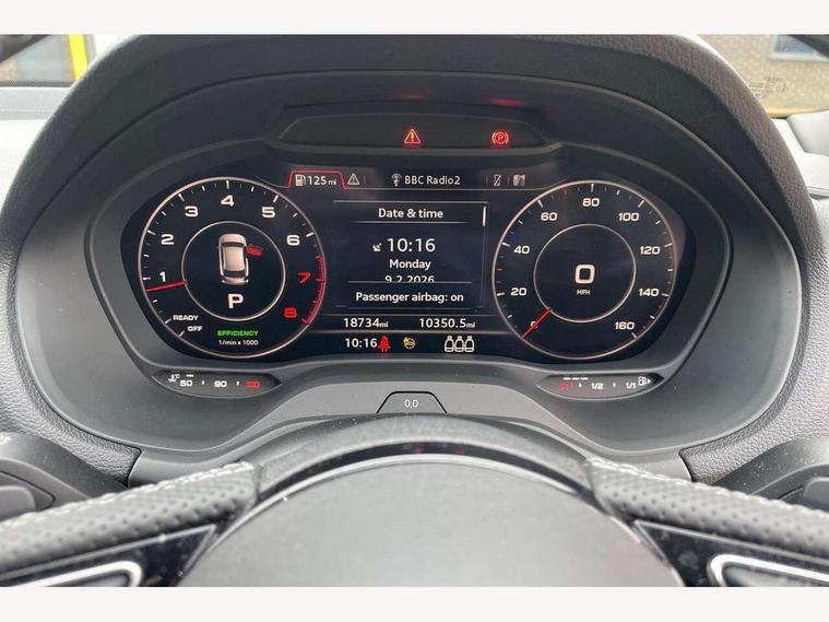 Audi connect navigation and infotainment includes innovative services, Audi connect remote and control connects your vehicle to your smartphone, Audi drive select - Power steering assistance + engine + gearshift, Audi drive select with efficiency, Audi smartphone interface, Audi virtual cockpit, Automatic start/stop system with recuperation, Bluetooth interface includes bluetooth audio streaming, Cruise control, E-call, MMI navigation plus with MMI touch, Power operated tailgate, Progressive steering, Rear parking sensors, 2 x SDXC card reader, 6 passive loudspeakers, DAB Digital radio, Auto dimming rear view mirror, Black window trims, Bumper in full body colour paint finish, Electrically adjustable, folding, auto dimming and heated door mirrors with integrated LED side indicators, Front windscreen with grey tinted sunband, LED daytime running lights, LED headlights with LED rear lights, LED third brake light, Privacy glass - dark tinted rear and rear side windows from B-pillar backwards, Rear side wing doors, Rear wiper, Variable front intermittent wipers, Wheel arch trims in manhattan grey, 12v socket in front, 3 seat bench in 2nd row, 3 spoke flat bottomed multi-function leather sport steering wheel with gear shift paddles, 4-way electric lumbar support for front seats including seat height adjustment for both front seat, 60/40 split folding rear seat bench, Black cloth headlining, Front and rear head restraints, Front centre armrest, Front/rear floor mats, Height/reach adjust steering wheel, Illuminated door sill trims with S logo, ISOFIX child seat mounting in front passenger and rear outer seats, Manual air conditioning, Single front passenger seat, Stainless steel pedals, Tool kit, Black styling pack - Q2, 3x3 point rear seatbelts, 6 airbags - Front, curtain and front side airbags, Electromechanical parking brake, Electronic stabilisation control including ABS, ASR and EDL, Front passenger airbag deactivation, Hill hold assist, Pre-sense front with pedestrian recognition, Seatbelt monitoring, Tyre pressure warning light, Warning triangle and first aid kit, Anti theft alarm, Anti theft wheel bolts, Electronically operated child locks, Remote central door locking, Aluminium interior element, Matt brushed aluminium trim inlays,