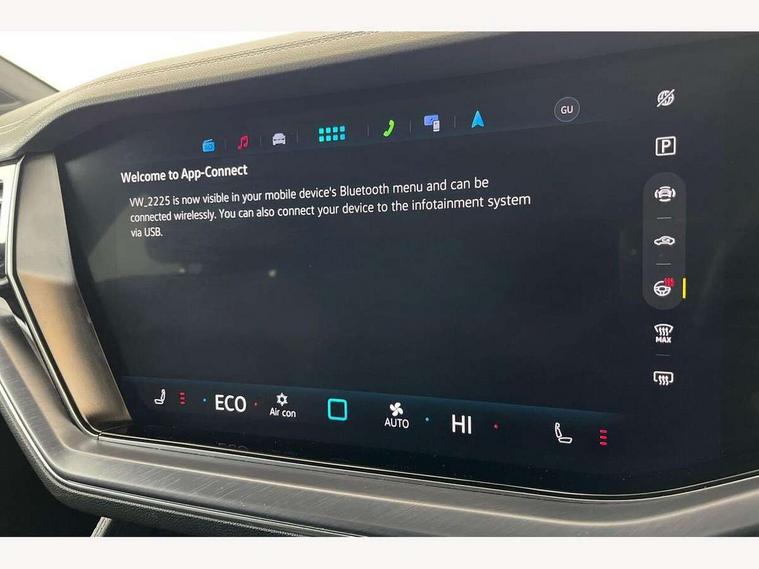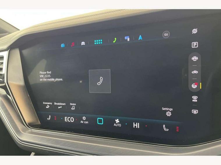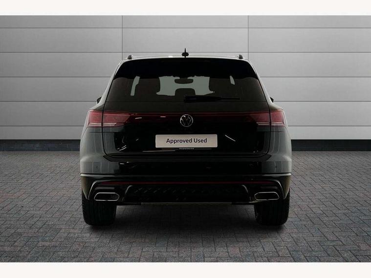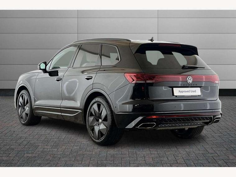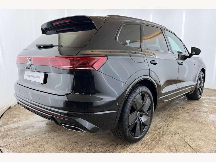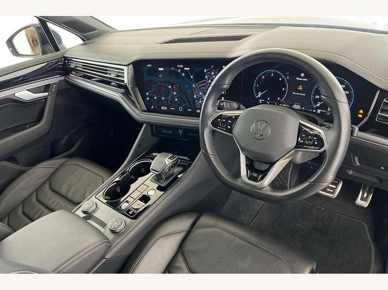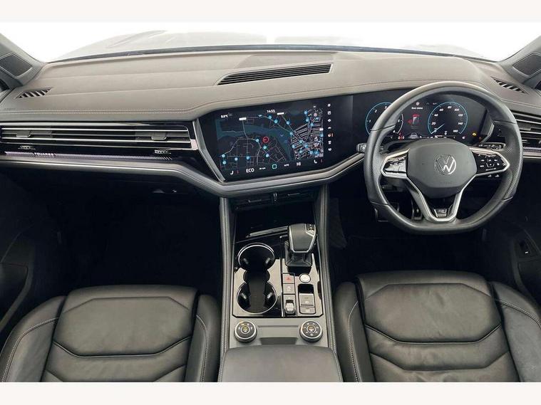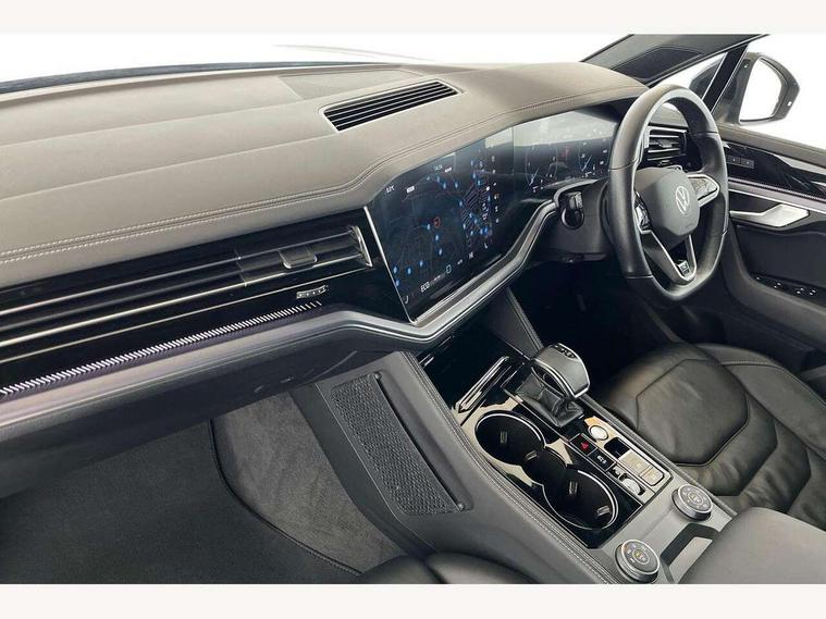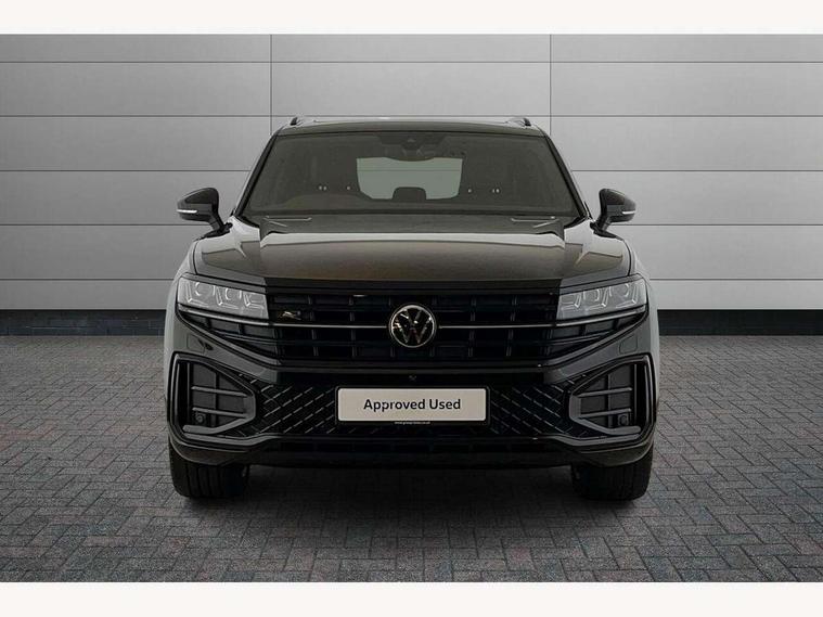 15" Screen Top infotainment system Premium (MIB3), Adaptive cruise control, Advanced driver attention and drowsiness monitor, Driver profile selection, Dynamic road sign display, E-Sim card for online connectivity, eCall emergency system, Innovision cockpit, Intelligent park assist, Mobile phone interface with inductive charging, Multi-colour Active Info display, Park Assist - Sensor controlled steering aid to assist parallel or bay parking, PAS, Warning signal and warning light for front and rear seatbelts not fastened, Wireless app connect, Adaptive chassis control, DAB Digital radio, Diversity antenna for AM/ FM reception, We Connect and We Connect Plus functionality, Automatic coming/leaving home lighting function, Automatic headlights, Black door mirrors, Black style comfort bumpers, Dynamic headlight range control with dynamic cornering light, Electric front tilt/slide panoramic sunroof and fixed rear sunroof, Electrically power adjustable, heated, folding, auto dimming, front passenger exterior door mirror lowering function, External USB type C socket and charging sockets, Gloss black roof rails, HD LED Matrix beam plus digital headlight projection with variable light distribution, Headlight washers, Heat insulating darkened glass in side and rear windows, Heated windscreen washer jets, Highway light, LED 3rd brake light, LED daytime running lights, LED rear combination lamp with variable lighting functions and special styling, Poor weather light, Rain sensor, Rear exhaust tailpipe, Rear fog light with back up light on both sides, Rear light bar and illuminated logo, Rear side wing doors, Rear wiper, Stainless steel door sill protection, 12V socket in centre console, 3 rear headrests, 3 seat bench in 2nd row, 4 zone climate control, Airbag label on sun visor and B-pillar, Brushed stainless steel pedals, Double sun visors with illuminated vanity mirrors, Front + rear carpet mats, Front centre armrest, Leather wrapped multifunction sports steering wheel, heated, with touch control and shift paddles, Mechanical rear seat release, Power adjustable lumbar support in front, Power seats in front, right side with memory features and seat cushion depth adjustment, Rear seat backrest and split folding with center armrest, Single front passenger seat, Tool kit, Memory pack plus - Touareg, 3 point seatbelts, outer rear with ECE lable, ABS, Child locks on rear doors, Curtain airbags, Driver and front passenger safety-optimised head restraints, Driver/Front Passenger airbags, Extended pedestrian protection measures, Front assist, Front seat side impact airbags, Generative braking with start and stop system, Height adjustable 3 point front seatbelts with pre tensioners, Passenger airbag deactivate switch, Three 3 point rear seatbelts, Two tone horn, Tyre pressure loss indicator, Warning triangle and first aid kit, Alarm system with interior protection, Easy open and close sensor controlled luggage compartment opening and closing with remote unlocking, Keyless Access Keyless locking and starting system with SAFELOCK, Aluminium decorative inserts, Black decorative trims, Gloss black decorative inserts in centre console,